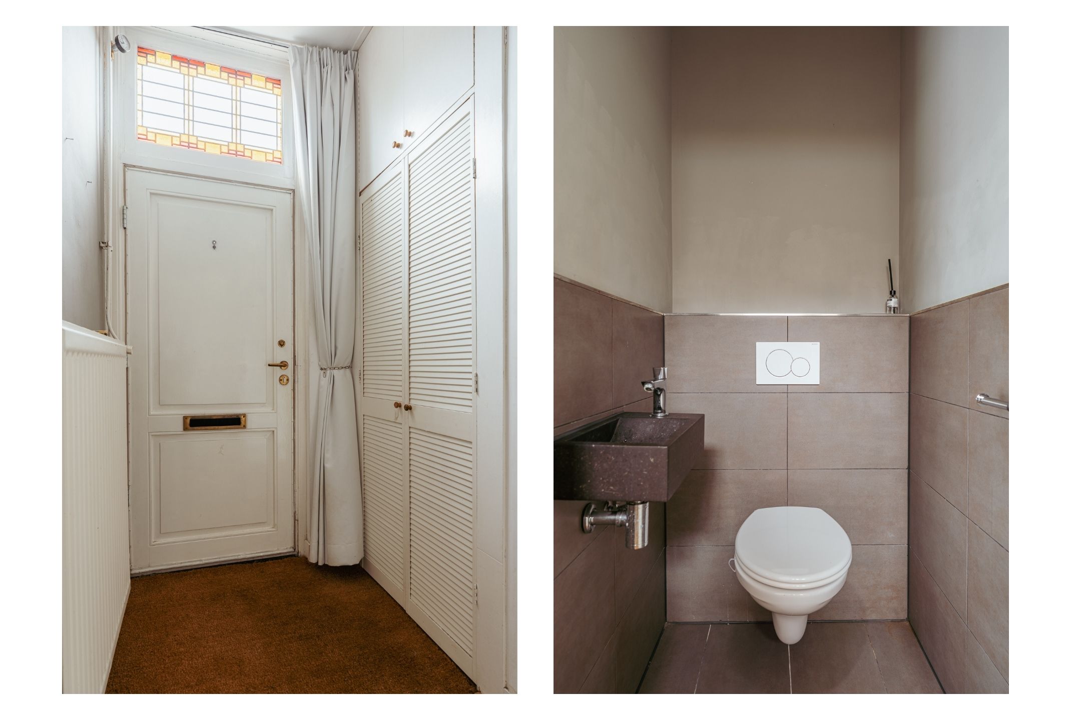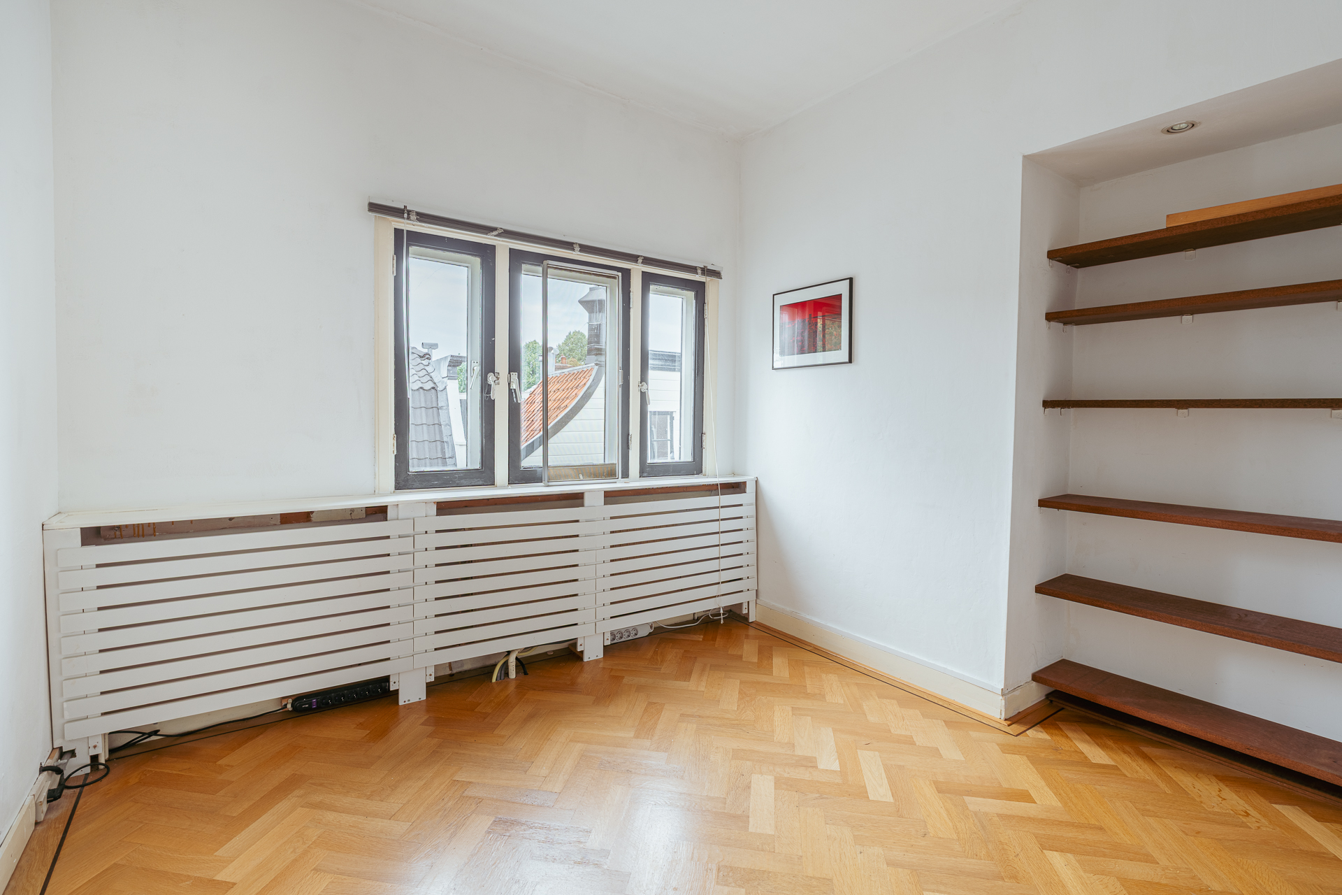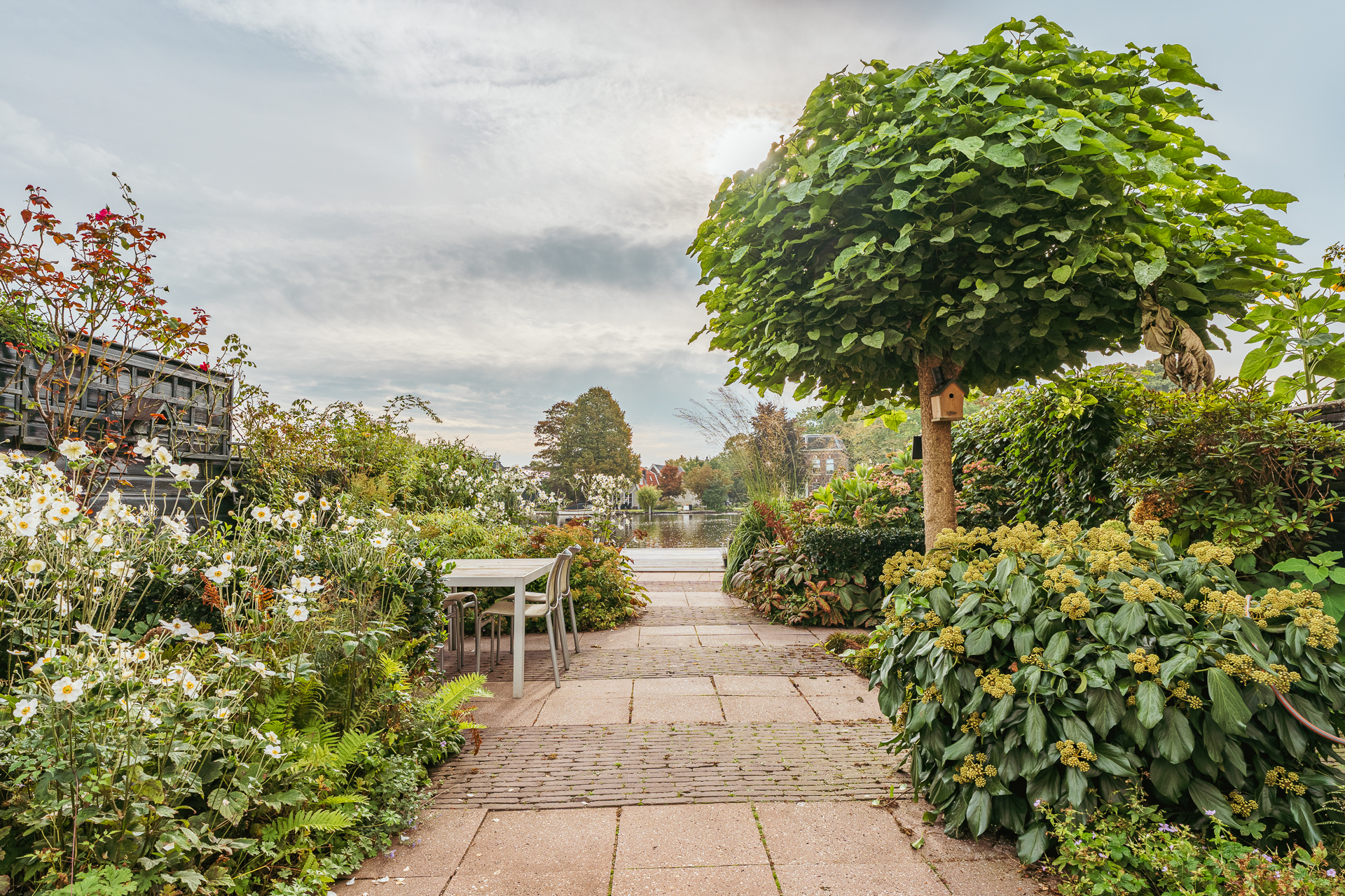 تستقبلكم المدخل عبر شارع هادئ وتاريخي إلى ردهة مزودة بمساحات تخزين وافرة ووسائل راحة للضيوف. في الواجهة، توجد غرفة متعددة الاستخدامات يغمرها الضوء الطبيعي مع نوافذ عالية ومدخل خاص، مثالية كمكتب أو جناح للضيوف. تتوزع غرفة المعيشة الواسعة على عرض المنزل بأكمله، وتزدان بأرضية خشبية بنمط السمك، ونوافذ طويلة، وأبواب فرنسية تطل على الحديقة المصممة بعناية ومشاهد خلابة لنهر أمستل.
