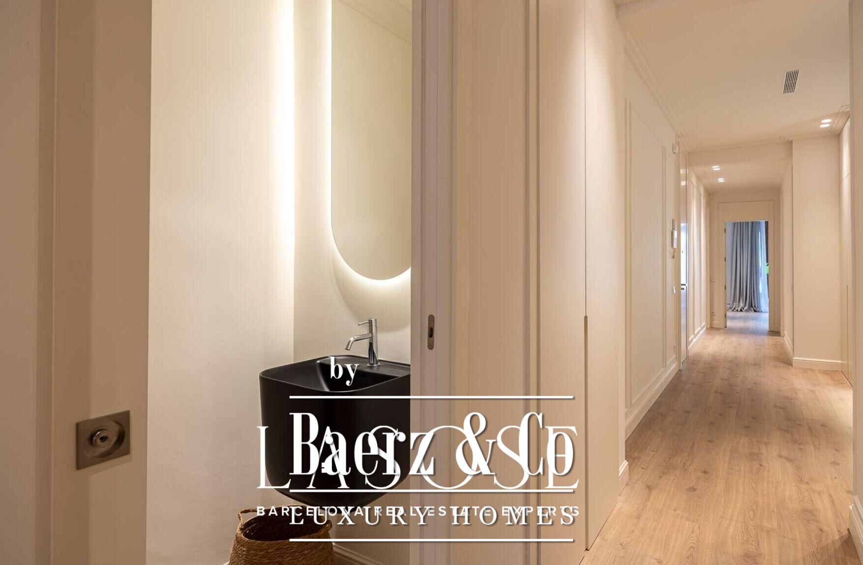 تقع الشقة في الطابق الثالث ويمكن الوصول إليها بالمصعد؛ تضيء مساحاتها الرحبة بانسياب الضوء الطبيعي. تضفي الغاليري المواجهة للجنوب الغربي والأسقف الكتالونية الأصلية المقببة أجواءً من الخصوصية والرقي. يراعي كل عنصر في التجديد الفاخر الحديث الهندسة الأصلية بينما يتم دمج أحدث وسائل الراحة. أرضيات باركيه من خشب البلوط بدرجة Parador AC 5، خزائن مخصصة من ARMONY، أجهزة MIELE، نظام ذكي للتحكم في المناخ، وجناح رئيسي مع غرفة ملابس منفصلة ترفع من مستوى العيش اليومي.