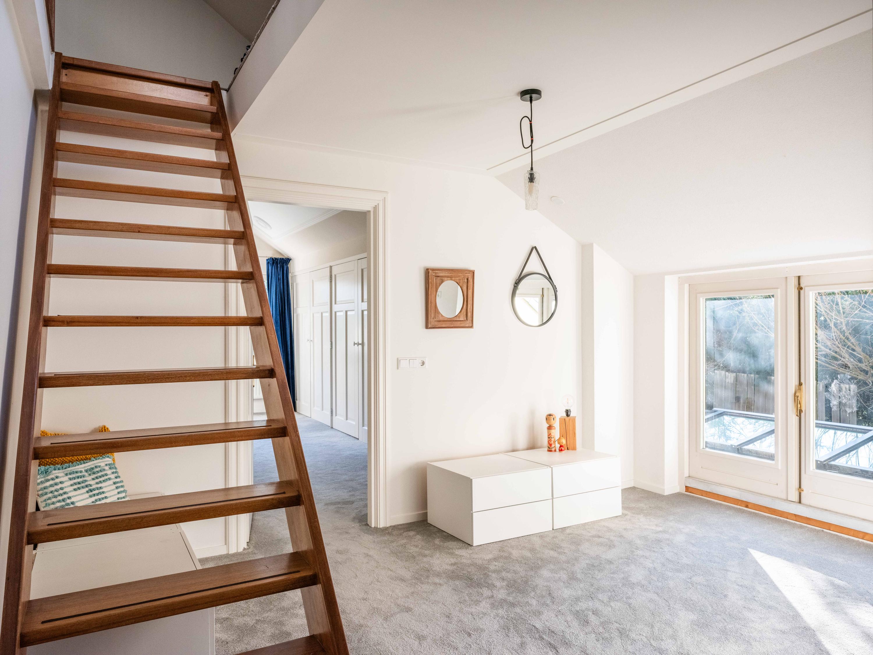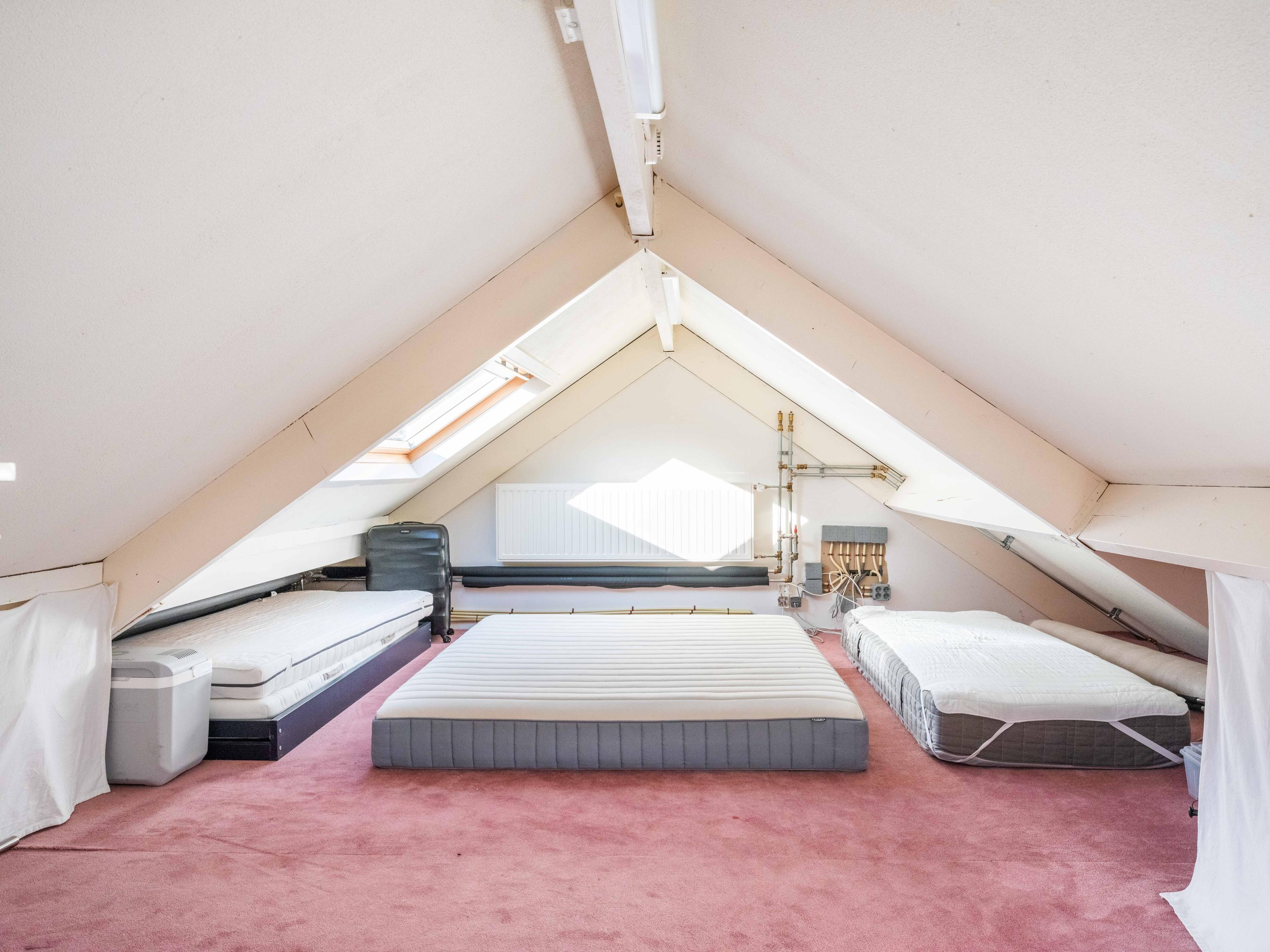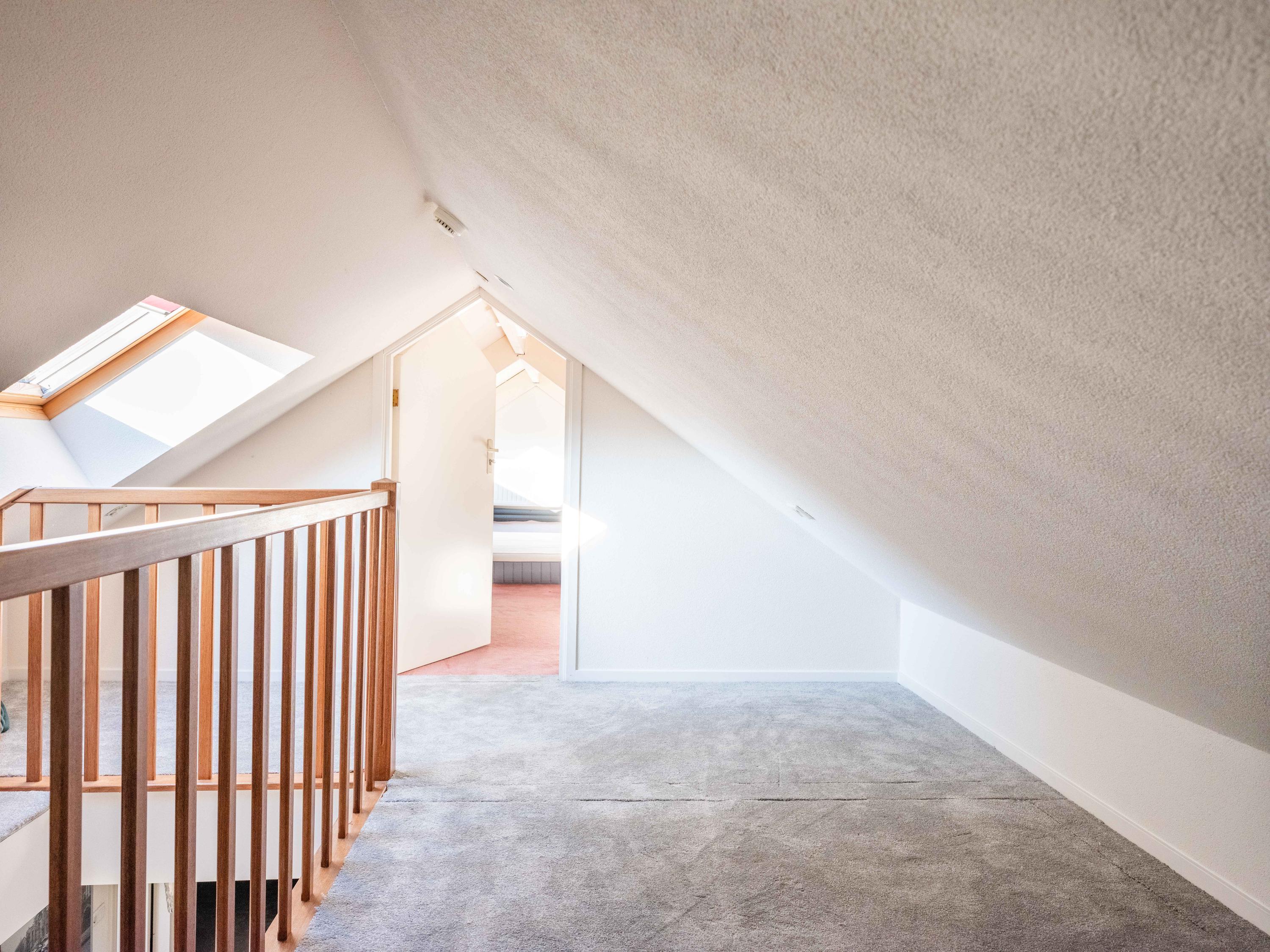 في الطابق العلوي، تنتظرك أربع غرف نوم وحمام عائلي واسع، بينما تتمتع الغرفة الرئيسية بتخزين وافٍ وحمام خاص. يوفر طابق العلية مساحة إضافية للنوم والتخزين لمزيد من المرونة للضيوف أو العائلة.