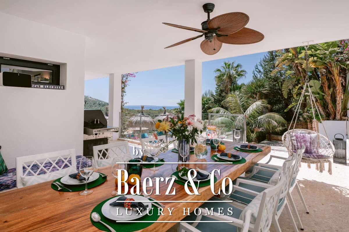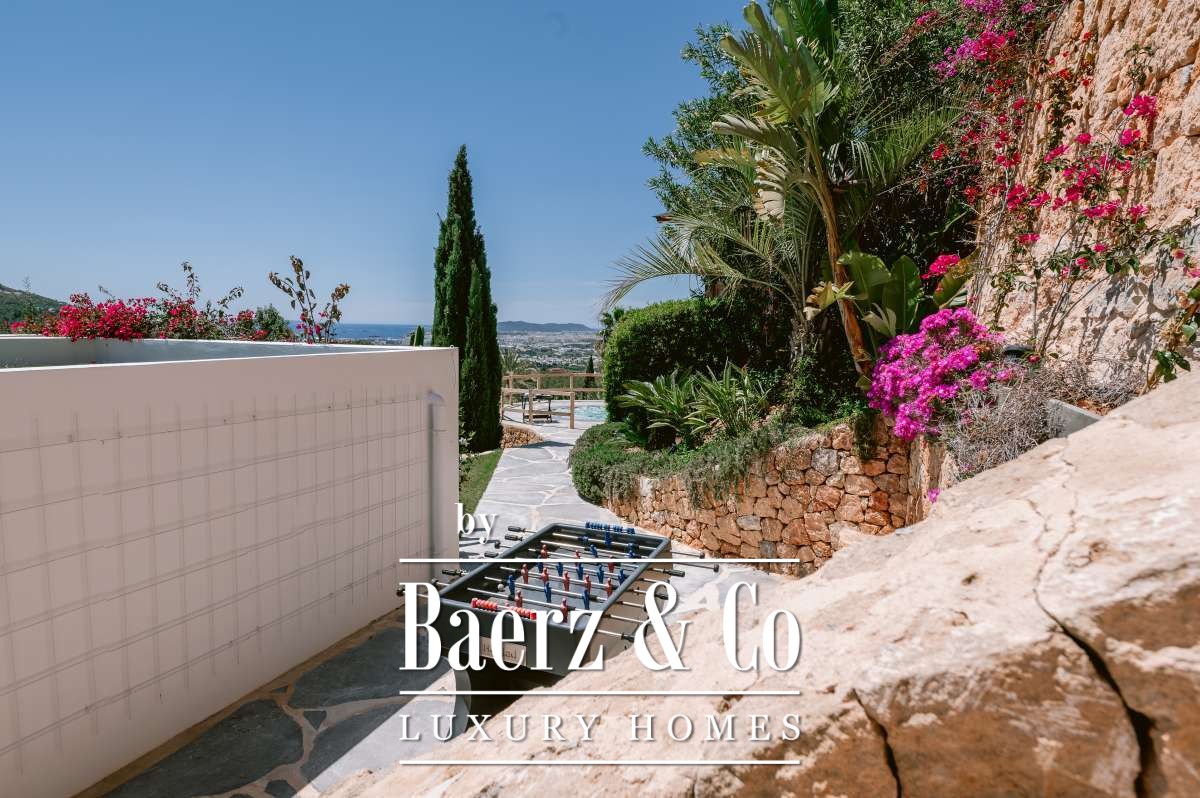فيلا كان فورنيت ذات الإطلالات البانورامية على البحر تقدم منظورًا متفردًا لحياة إيبيزا، حيث تجمع بين الخصوصية والقرب الفوري من قلب مدينة إيبيزا. تقع في واحدة من أكثر المجتمعات السكنية خصوصية على الجزيرة، تبلغ مساحة هذه الفيلا 471 مترًا مربعًا فوق أرض بمساحة 2,313 متر مربع، ما يضمن أجواء هادئة على بُعد 10 دقائق فقط من مرسى بوتافوش وأفق دالت فيلا التاريخي.