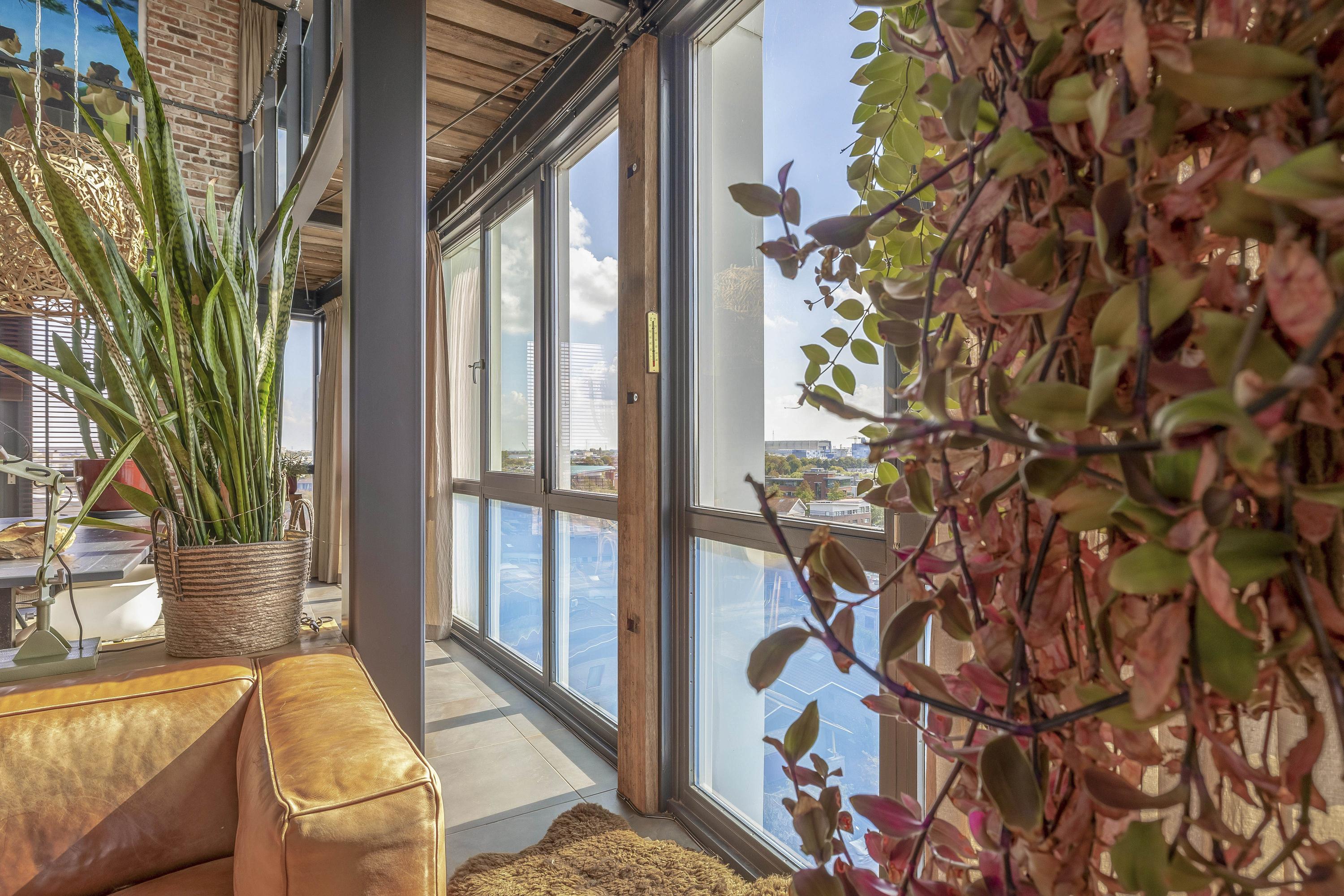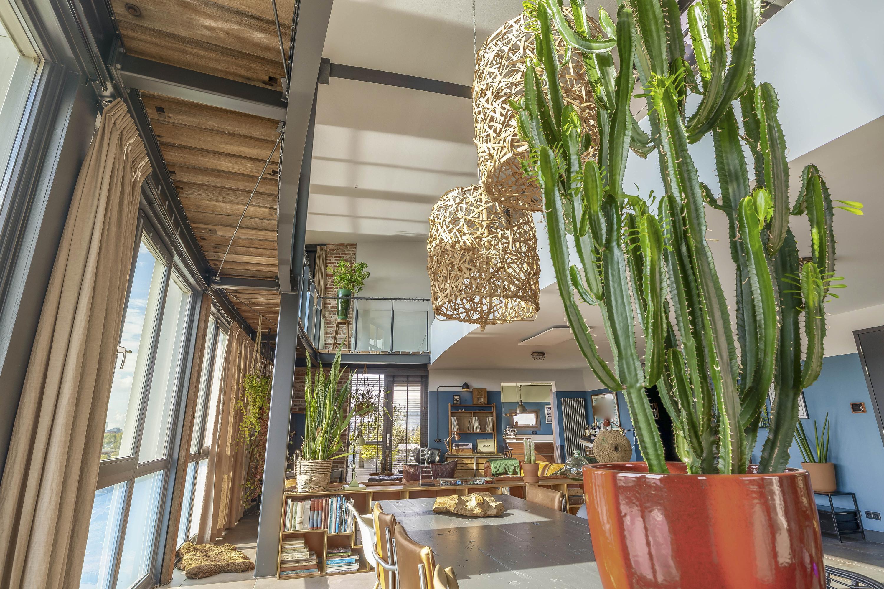 تتسم المساحة الداخلية بأسقف شاهقة، وأرضيات حجرية إيطالية مدفأة تعمل بالتدفئة تحت الأرضية، وغرفة معيشة فسيحة تحت نافذة بارتفاع سبعة أمتار. المطبخ شبه المفتوح بمساحة 14 مترًا مربعًا مجهز بأجهزة Miele الفاخرة وتصميم على شكل حرف U، ملائم للأوقات الهادئة أو اللقاءات الاجتماعية. يضم البنتهاوس غرفتي نوم أساسيتين مع حمامات داخلية ومكتبًا واسعًا يوفر مرونة للعمل واستقبال الضيوف مع إمكانية إضافة غرف جديدة في طابق الميزانين. كل غرفة يجذب إليها الضوء وإطلالات على المدينة مع الحفاظ على خصوصية الأجواء.