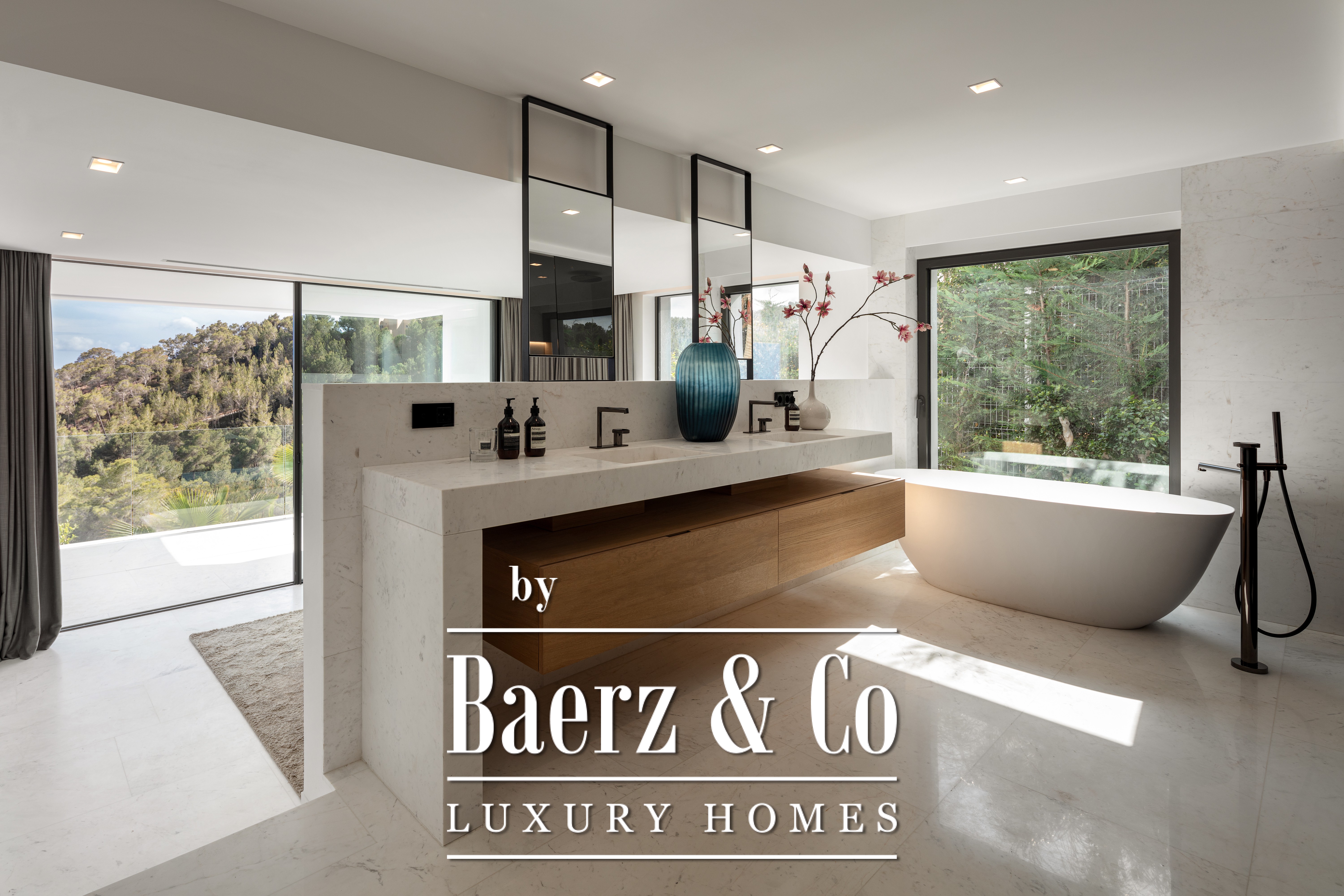 تجسد فيلا كاس موت الفاخرة منظورًا راقيًا للحياة الساحلية المعاصرة في إسبانيا. تقع هذه الفيلا الجديدة والمفروشة بالكامل بمساحة 685 م² على بعد خمس دقائق فقط من وسط مدينة إيبيزا ومينائها النابض بالحياة، وتوفر من كل غرفة إطلالات بحرية مفتوحة ومناظر بانورامية شهيرة لجزيرة فورمينتيرا. يحتفي التصميم بخطوطه العصرية، حيث تبرز النوافذ الواسعة الإضاءة المتوسطية، وتضفي الأرضيات والكسوات الجدارية من الرخام الأبيض إحساسًا بالأناقة الهادئة، وتمنح الأبواب الخشبية الطبيعية دفئًا عضويًا في جميع أنحاء المنزل.