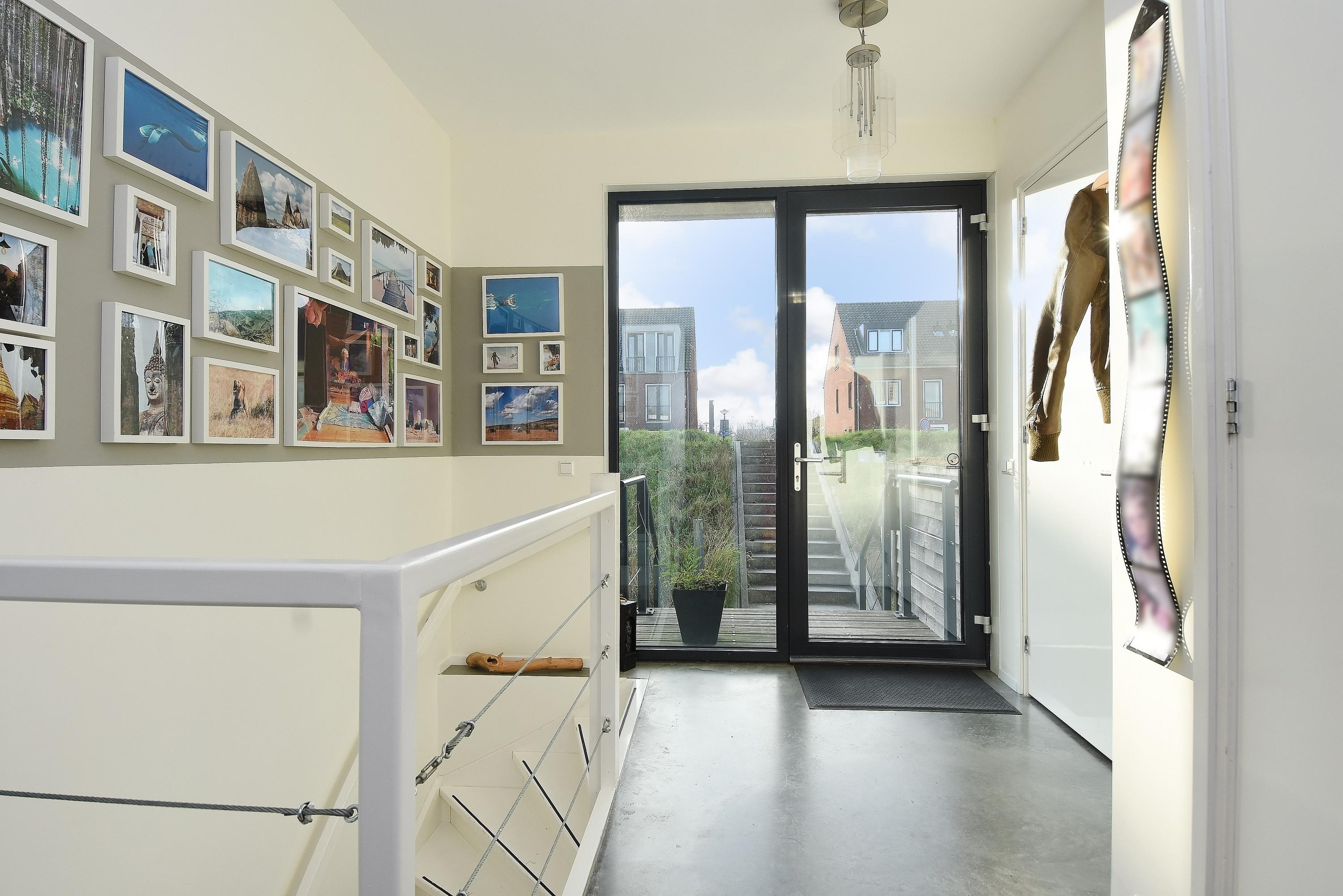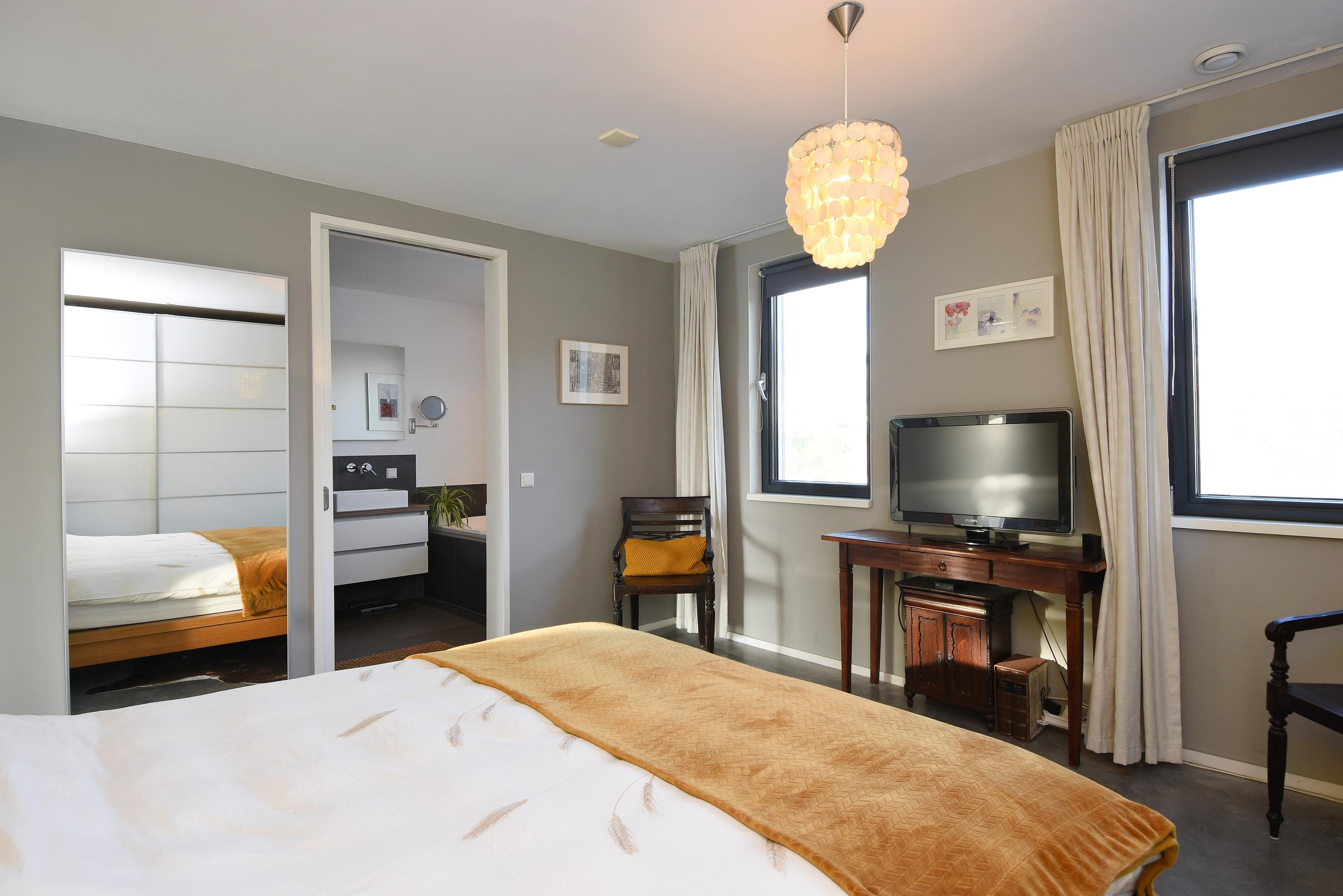 التصميم الداخلي متعدد الاستخدامات بشكل متعمد. عند الوصول، يفضي مكان مخصص لتخزين الدراجات عبر درج ثابت إلى المدخل الرئيسي. يكشف البهو عن مساحة خدمات فعالة وجناح رئيسي مزود بحمام داخلي، ودش منفصل، وحوضي غسيل مزدوجين. ينفتح الطابق الأرضي من مطبخ مجهز بالكامل مع جزيرة واسعة إلى غرفة الجلوس، حيث تتأطر المياه بنافذة تمتد من الأرض حتى السقف. توفر الشرفات المواجهة للمياه وعلى السطح ملاذات خاصة للاسترخاء في الهواء الطلق. تم تصميم الميزانين كمنطقة مرنة تناسب العمل أو الترفيه أو التأمل تحت سماء هولندا.