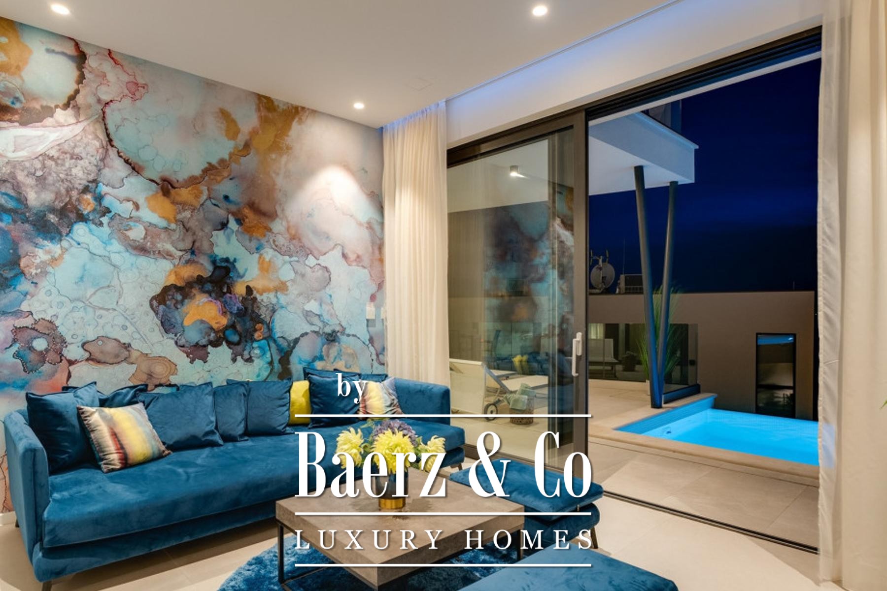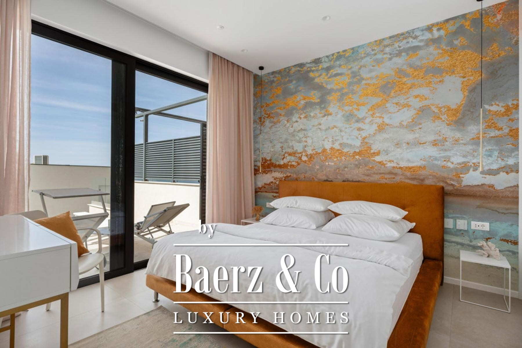 Jesenice, modern semi-detached villa with swimming pool. Spread over three floors, net usable area 245 m2. Consists of a living room, open-concept kitchen and dining room, 3 bedrooms, 2 bathrooms and one toilet, as well as a beautiful terrace with a swimming pool and a sunbathing area.Thanks to the stunning architecture, the upper floor has impressive ceiling heights combined with a beautiful sea view from the living room.It has 2 parking spaces.The villa was built to the highest technical standards, including smart home technology, underfloor heating, air conditioning and electrically operated roller shutters.Completed in 2023, it is fully furnished and equipped and is being sold as such.The advertised price refers to the purchase of the villa with the company that owns it.Further information on request.