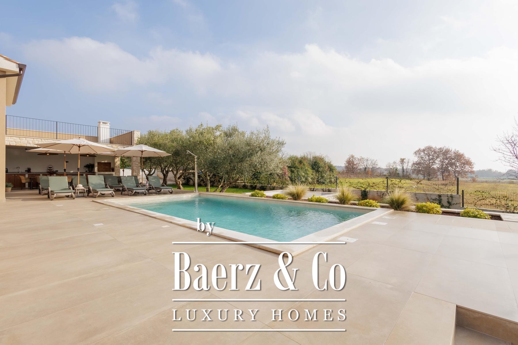 ترسخ فيلا Kaštelir-Labinci التصميم العصري بعمق ضمن التقاليد الأصيلة لإستريا. تقدم هذه الفيلا في Kaštelir-Labinci مزيجًا متقنًا بين الطابع الإقليمي والوسائل العصرية، وتقع في واحدة من أكثر المواقع المرغوبة في غرب إستريا. تحتل مساحة داخلية سخية تبلغ 221 م² موزعة على مستويين، وتضم المنزل أربع غرف نوم، لكل واحدة منها حمام داخلي خاص. توجد ثلاث غرف نوم في الطابق الأرضي، مما يسهل حركة الانسيابية الداخلية، بينما تنفرد غرفة النوم الرئيسية بالطابق العلوي مع حمام خاص، وغرفة ملابس منفصلة، وتراس واسع يكشف إطلالات بانورامية على البحر والمناظر الطبيعية الخضراء.