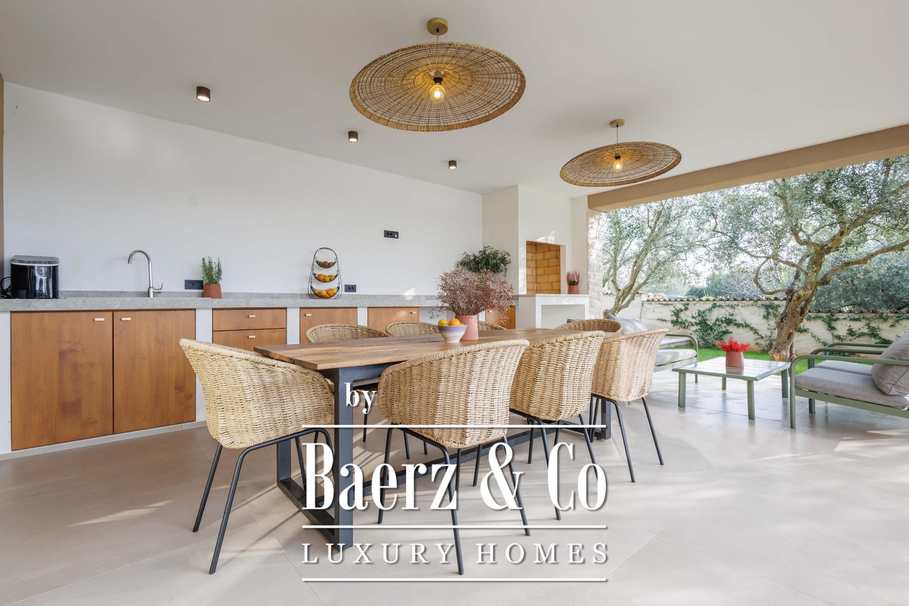 تتميّز هذه الفيلا عالية المواصفات وذات الكفاءة المنخفضة في استهلاك الطاقة بتجهيزها بتدفئة أرضية تعمل بمضخة حرارية وتكييف موزع بسلاسة في جميع الأنحاء. ويمتد التصميم العملي إلى الخارج حيث تستمر التدفئة الأرضية في المطبخ الصيفي. ويشتمل المخطط أيضًا على مرحاضين منفصلين للضيوف من أجل زيادة الراحة. وتوفر قطعة الأرض البالغة مساحتها 1,000 م² خصوصية مترفة مع عشب أخضر وست أشجار زيتون ونظام ري أوتوماتيكي يُسهل أعمال الصيانة.