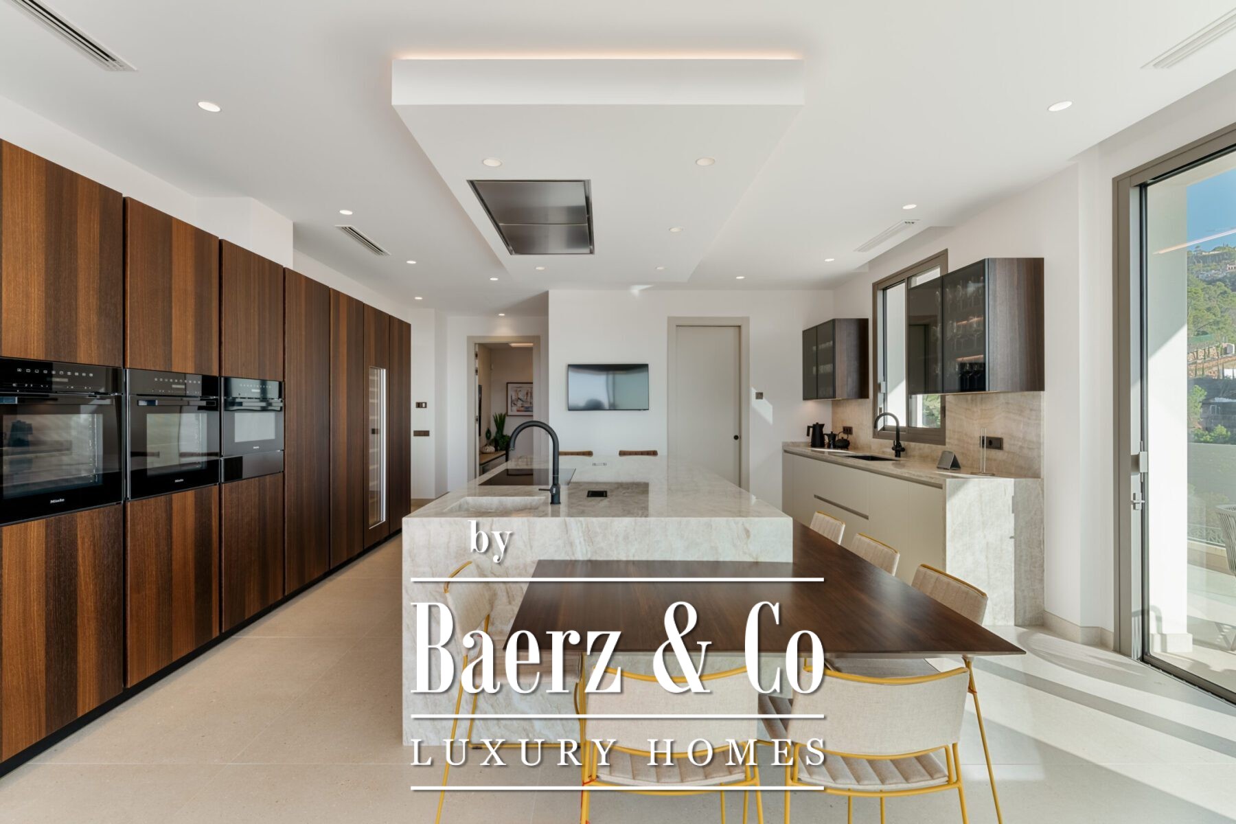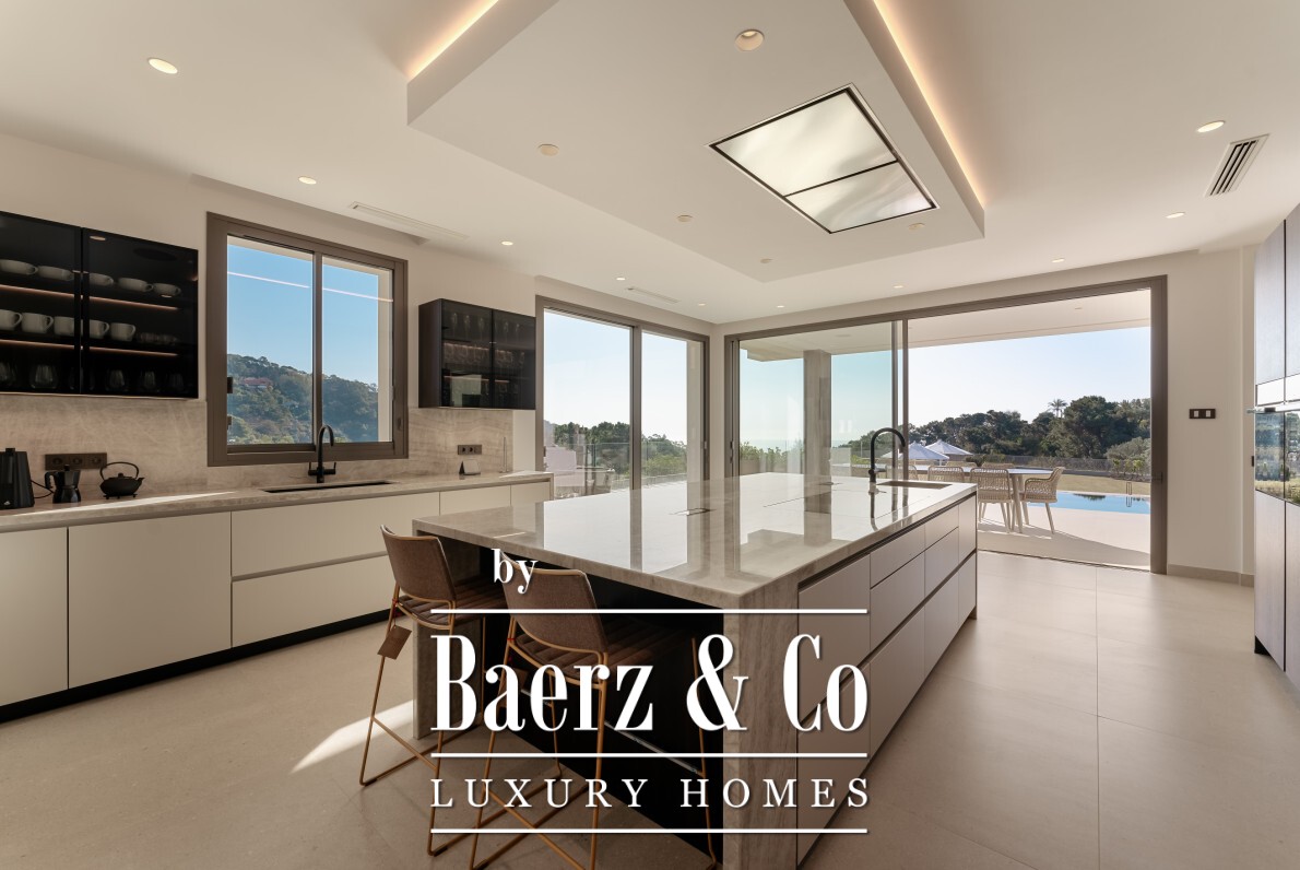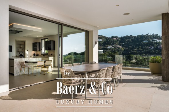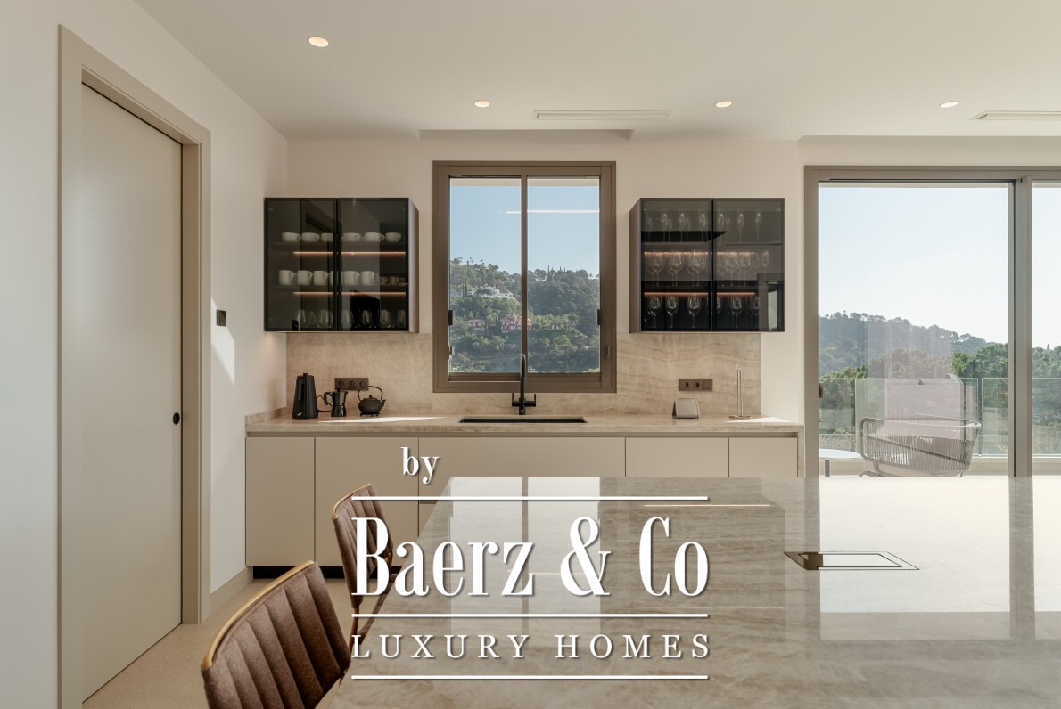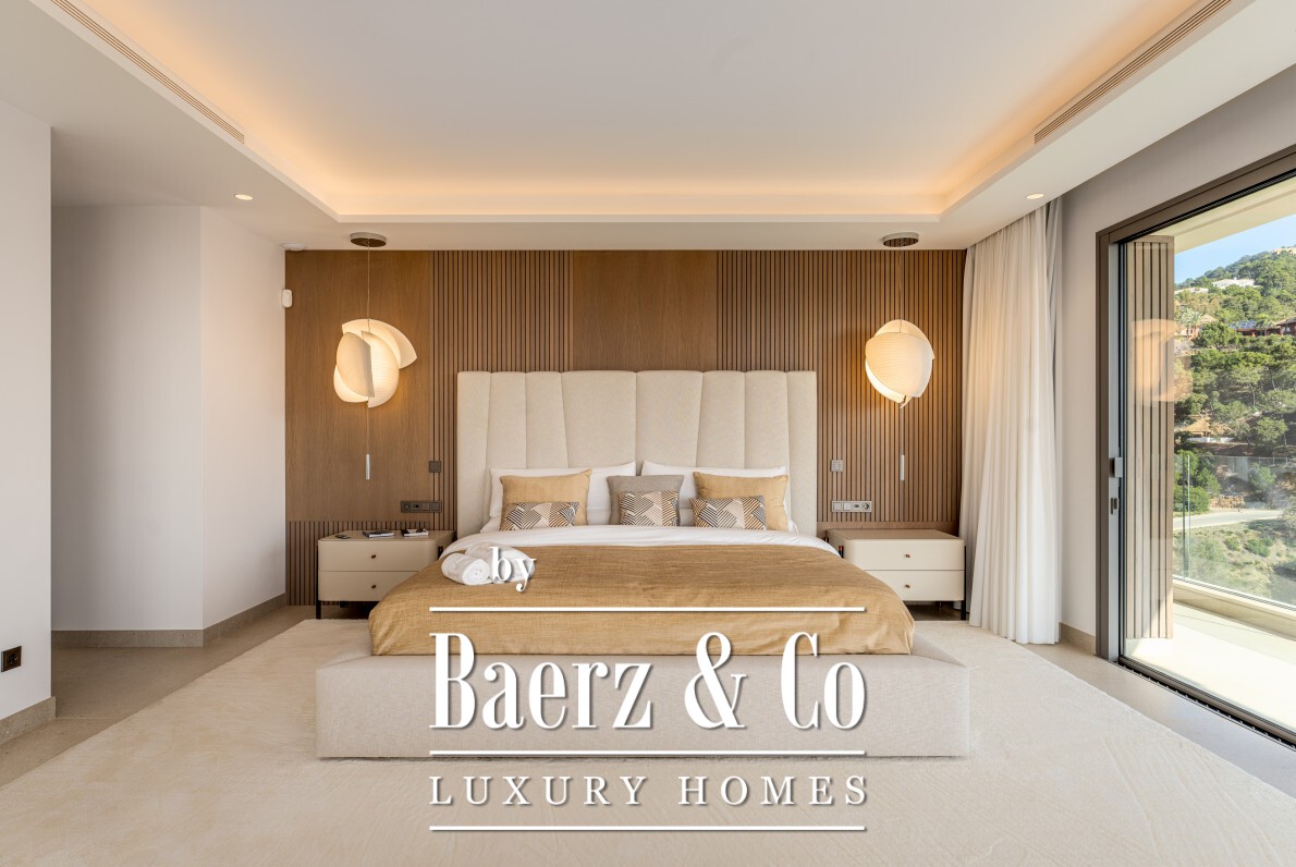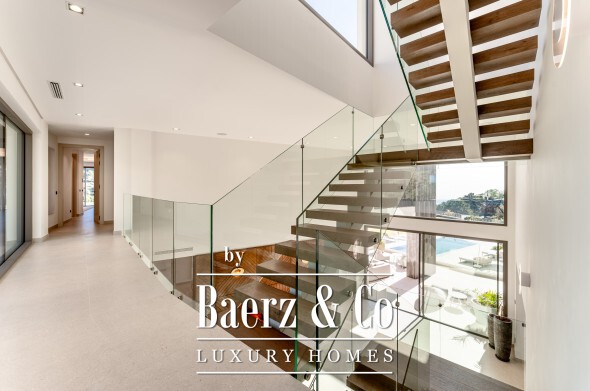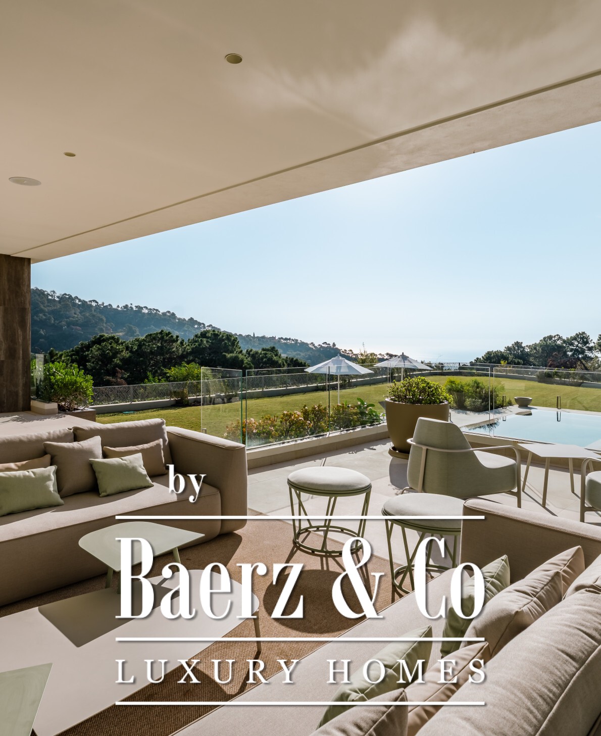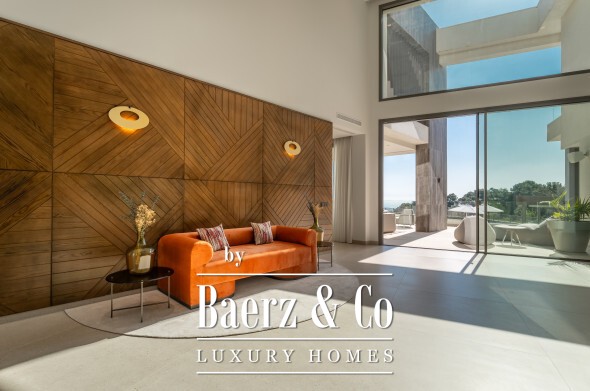 فيلا لا زاجالييتا بنهامافيس تحدد معياراً معاصراً للعيش الفاخر في ماربيا، حيث تتوزع هندستها المعمارية الراقية على مساحة 958 م² فوق قطعة أرض مستوية نادرة تبلغ 5,394 م². تبرز هذه الملكية بهدوء عبر إطلالاتها البانورامية على البحر والوادي والجبال من كل المستويات، ما يمنح شعوراً عميقاً بالاتساع والانتماء. عند الدخول من طريق خاص، يمنح الواجهة الزجاجية والردهة ذات الارتفاع المضاعف إحساساً بصفاء صالة العرض، يرسخه سلم معلق يؤدي إلى الشرفة العلوية.