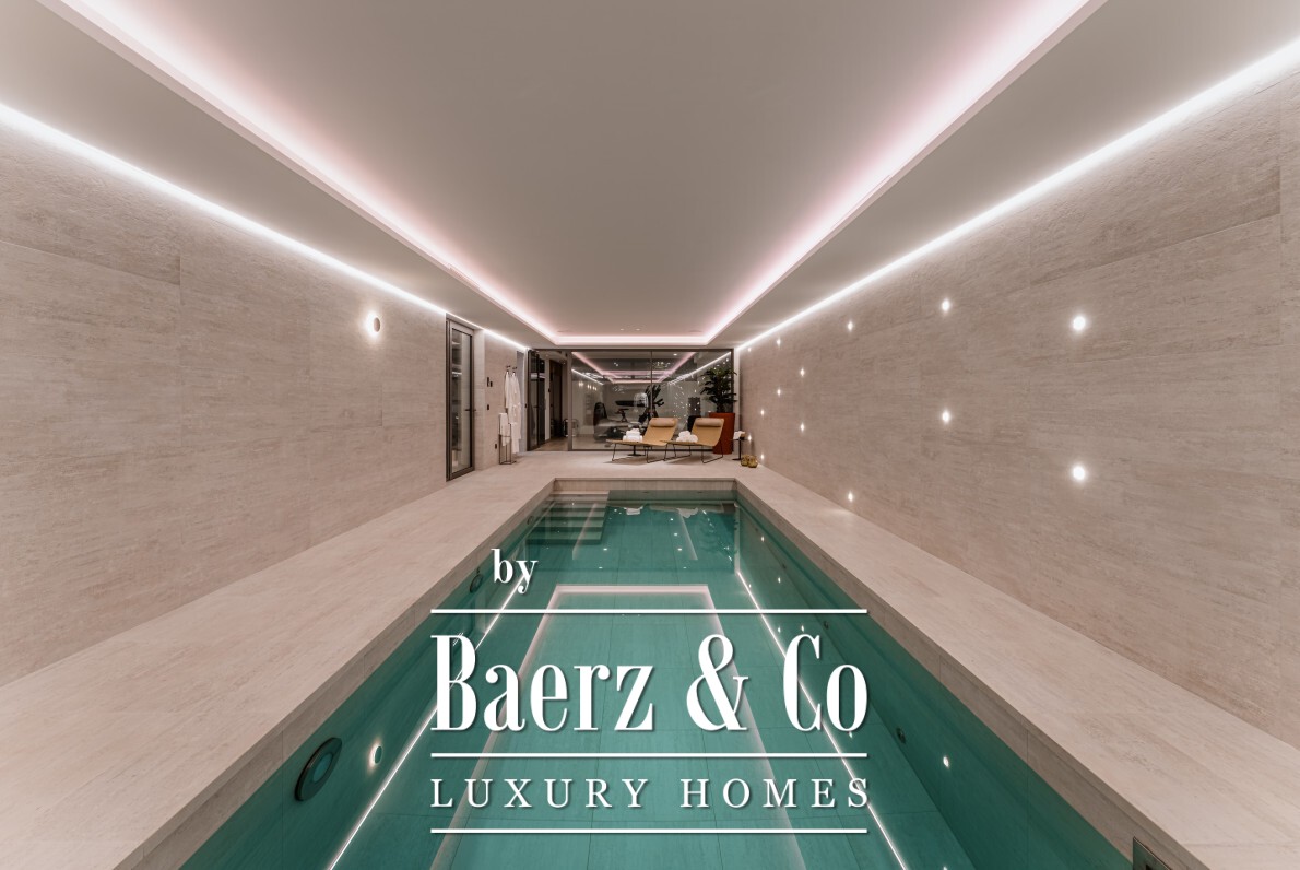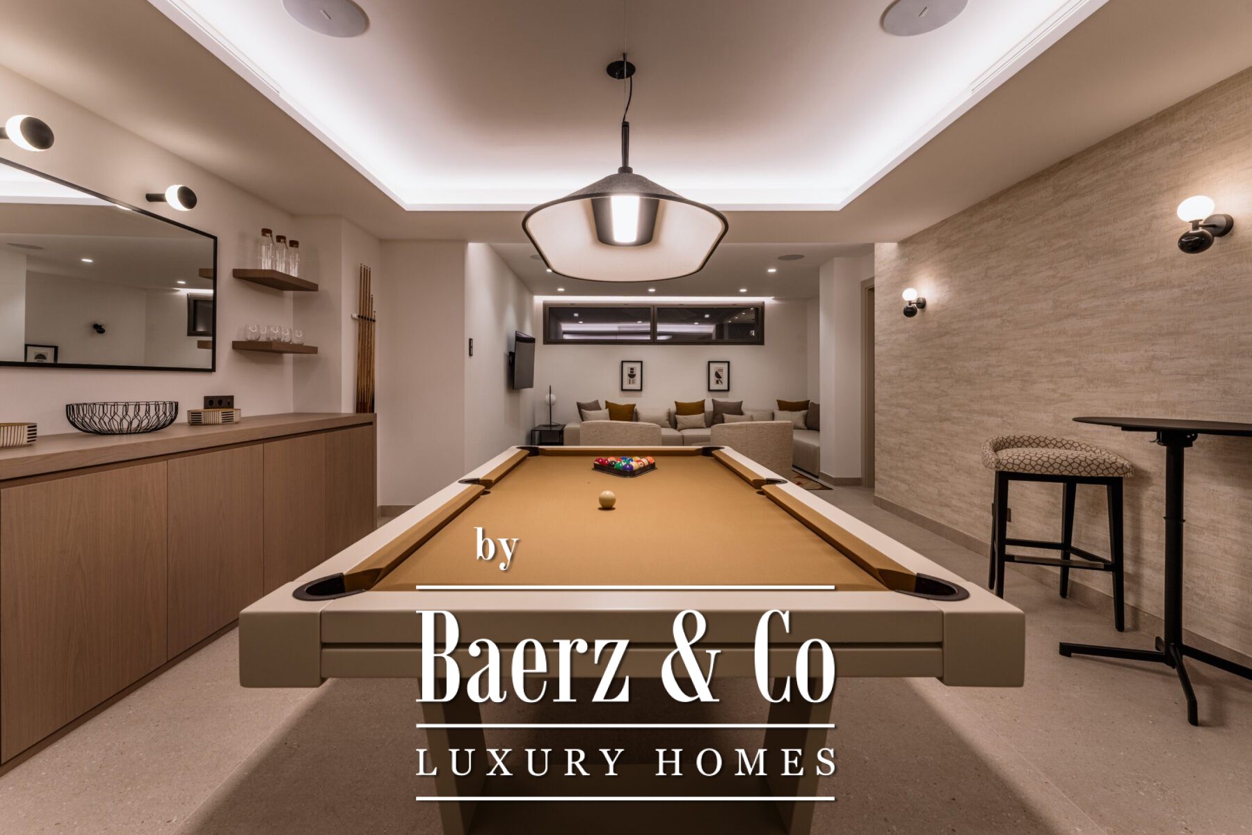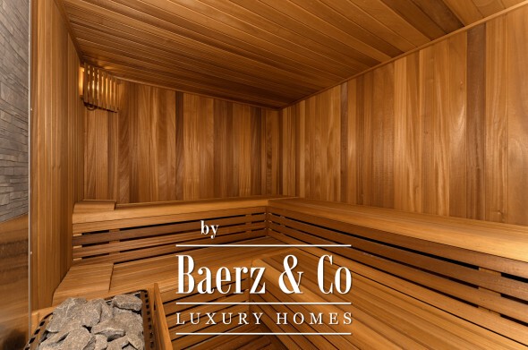 يوفر الطابق العلوي الخصوصية والمنظور. يضم الجناح الرئيسي حمامَين منفصلين وغرفتي ملابس خاصتين ومساحات زجاجية واسعة تؤطر المناظر الطبيعية. وتكمل جناحان للضيوف، أحدهما مع شرفة خاصة، هذا الملاذ الحصري. في الطابق السفلي، ينتظرك منتجع صحي مع حوض سباحة داخلي مدفأ، وساونا، وصالة ألعاب رياضية، وغرفة بخار، إضافة إلى صالة ترفيهية، وقبو نبيذ بتحكم مناخي، وشقة للخدم بمطبخ مستقل. كما يتسع المرآب لأربع سيارات مع مساحة إضافية لست سيارات للضيوف.