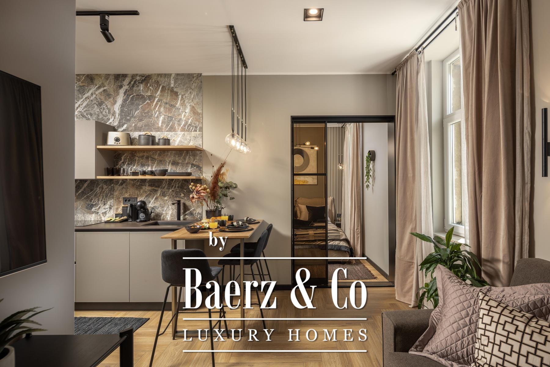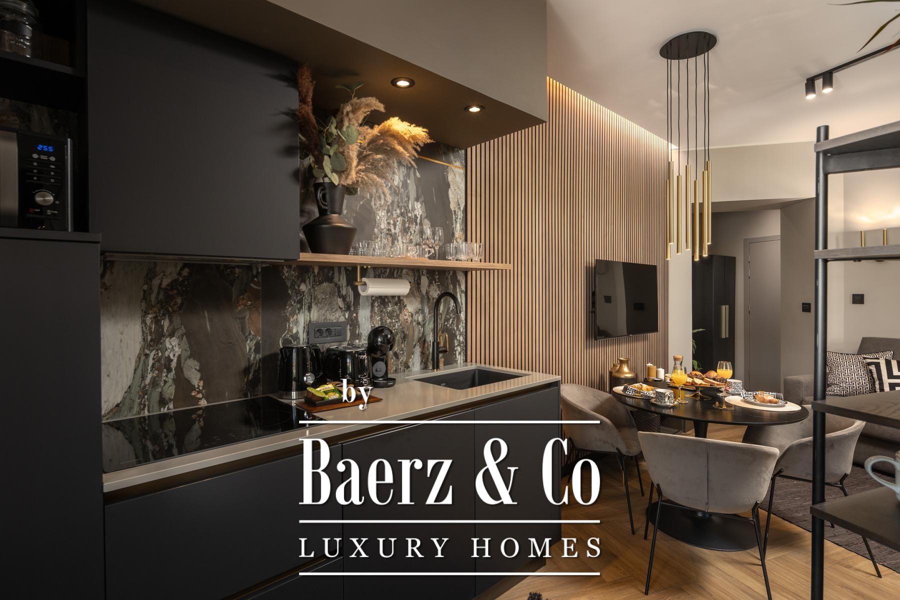 In an attractive location in Rijeka’s Potok district, a four-bedroom apartment with a total surface area of 141 m² is offered for sale, superbly renovated into four separate, fully furnished apartments, each ranging from 32 to 35 m². Two of the apartments feature balconies with a pleasant, open view of the new City Library and the park.The property is sold as a completed and well-established investment project. The apartments are rented for most of the year and represent a secure and stable source of income, with proof of generated revenue available for inspection.The interior is designed in a luxury hotel style, with carefully selected warm beige and anthracite tones, gold accents, and ambient lighting. The highest-quality Italian furniture has been used, along with large-format porcelain tiles.Custom-made kitchens by Veneta Cucine in a matte black finish are installed, featuring high-quality worktops and decorative “stone/marble” backsplashes. The living and sleeping areas are connected by glass sliding partitions with frosted stripes, while wooden wall slats with indirect LED lighting further emphasize the contemporary design.The interior is complemented by designer brass pendant lights, velvet dining chairs, and trendy geometric textiles. Bathrooms are fitted with walk-in showers, glass partitions, and black fixtures, as well as decorative panels with a natural stone effect.Each apartment consists of a living room with kitchen and dining area, one bedroom, and a designer bathroom. Apartment sizes range from 32 to 35 m², with two apartments offering a balcony.The Potok neighborhood offers exceptional convenience-within walking distance of the city center and all essential amenities. Views of the new City Library and excellent transport connections make this location particularly attractive for short-term and mid-term rentals.The property is sold exclusively as a single unit, i.e., as a package of four apartments. An established rental operation throughout most of the year ensures stable cash flow and a faster return on investment. Furniture and all equipment are included in the price.All documentation is in order.For additional information and to arrange a viewing, we remain at your disposal.