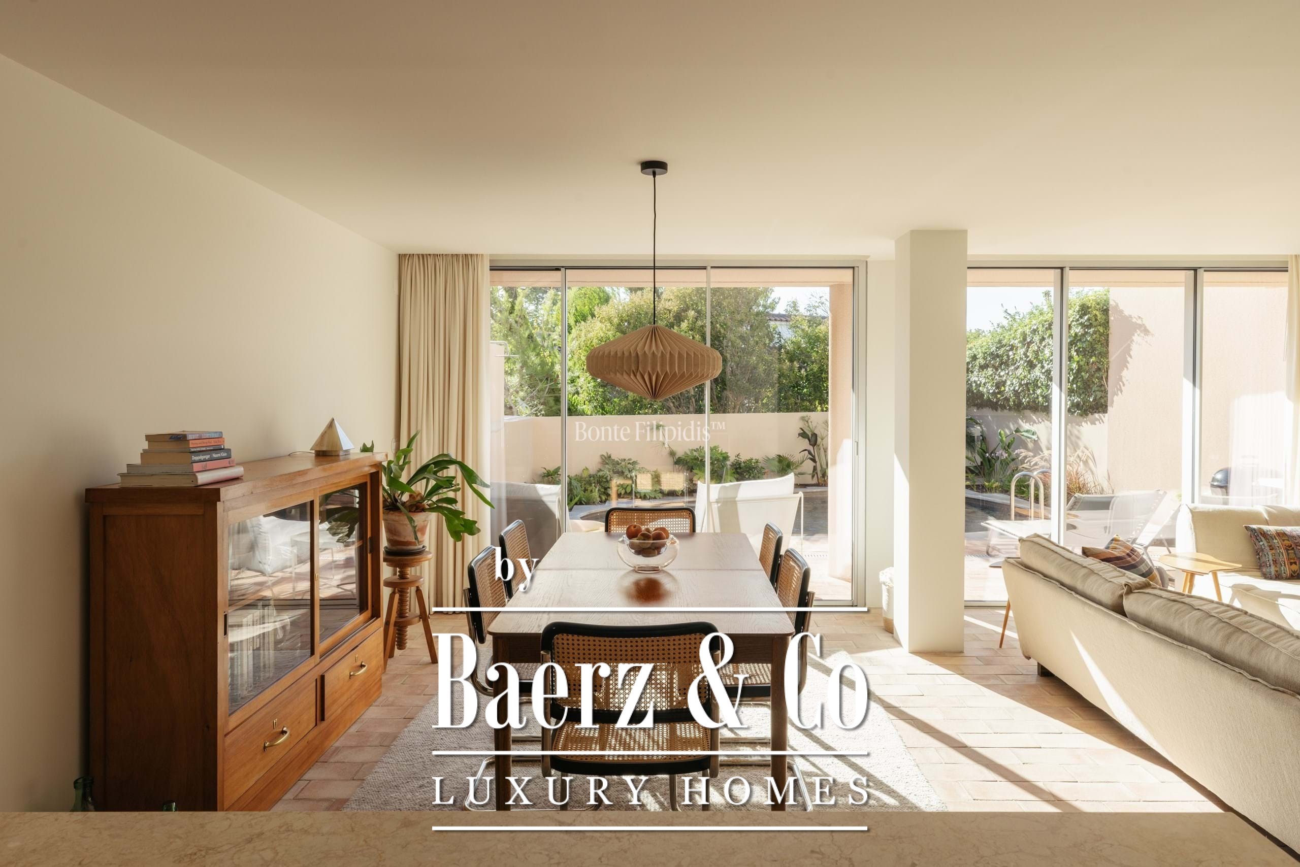 Diese zeitgenössische Villa in Alcabideche verkörpert eine dezente Verbindung von Luxus und Umweltverantwortung. Auf einem privaten, 234 m² großen Grundstück am Rand des Naturparks Cascais-Sintra gelegen, wurde das Haus sorgfältig renoviert und verbindet stilvolle Gestaltung mit nachhaltigen Lösungen. Im Inneren sorgen Fußbodenheizung, Klimaanlage in jedem Raum und ein gemütlicher Kamin das ganze Jahr über für behaglichen Komfort. Der offene, lichtdurchflutete Grundriss schafft einen fließenden Übergang zwischen Innen- und Außenbereichen, wobei der Garten vorne und hinten jeweils optimale Sonneneinstrahlung erhält.