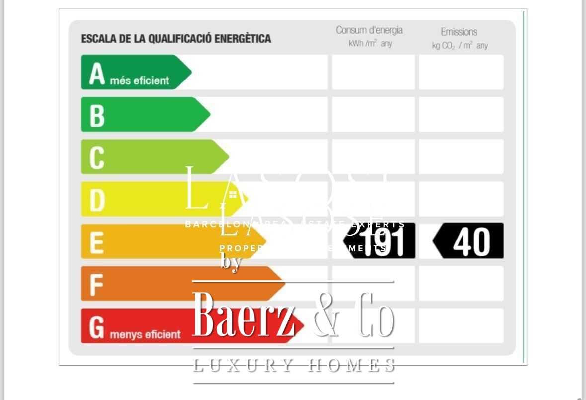 Das Herzstück dieser Wohnung ist die offene Küche mit Essbereich, ausgestattet mit modernen Geräten. Sie geht nahtlos in das großzügige, lichtdurchflutete Wohnzimmer und das große Esszimmer über. Große Fenster lassen das Tageslicht Barcelonas hereinströmen und schaffen eine ruhige Atmosphäre über den Dächern der Stadt. Zentralheizung, Klimaanlage und ein Waschraum sorgen für zusätzlichen Komfort. Einbauschränke, Aufzug und ein Balkon mit herrlichem Blick auf Barcelona runden das Angebot ab.