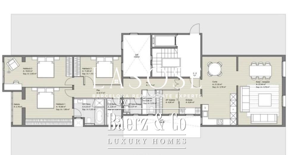 Apartment Barcelona bietet ein anspruchsvolles Wohnerlebnis im Herzen der kulturellen Hauptstadt Spaniens. Diese 147 m² große Residenz verfügt über drei Schlafzimmer, darunter eine ruhige Master-Suite mit eigenem Bad und begehbarem Kleiderschrank. Komfort und subtile Raffinesse verbinden sich hier auf elegante Weise. Das zusätzliche Bad und das Gäste-WC bieten praktische Annehmlichkeiten für Bewohner und Gäste, während klare Linien eine Umgebung schaffen, die auf ein erfülltes Stadtleben ausgerichtet ist.