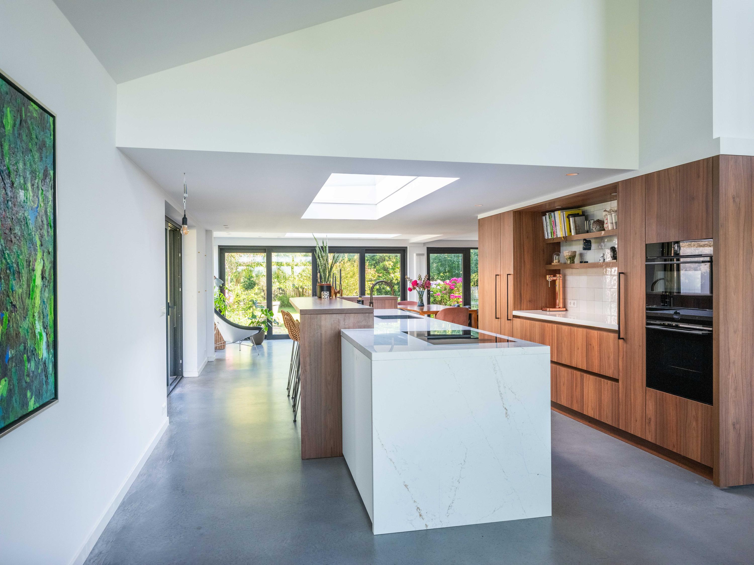 Villa Bergen NH mit Ausblick auf das Umland vereint in seltener Weise Qualität, Lage und Nachhaltigkeit. An der ruhigen Nesdijk gelegen, steht diese 326 m² große Villa auf einem großzügigen Grundstück von 1.301 m². Sie bietet flüsterleise Innenräume und einen freien Ausblick auf die umliegende Polderlandschaft. Jeder Aspekt dieses Hauses, von den fugenlosen, beheizten Betonböden über die maßgefertigte Walnussholzküche bis hin zur Designer-Treppe, zeugt von Stil und Zurückhaltung.