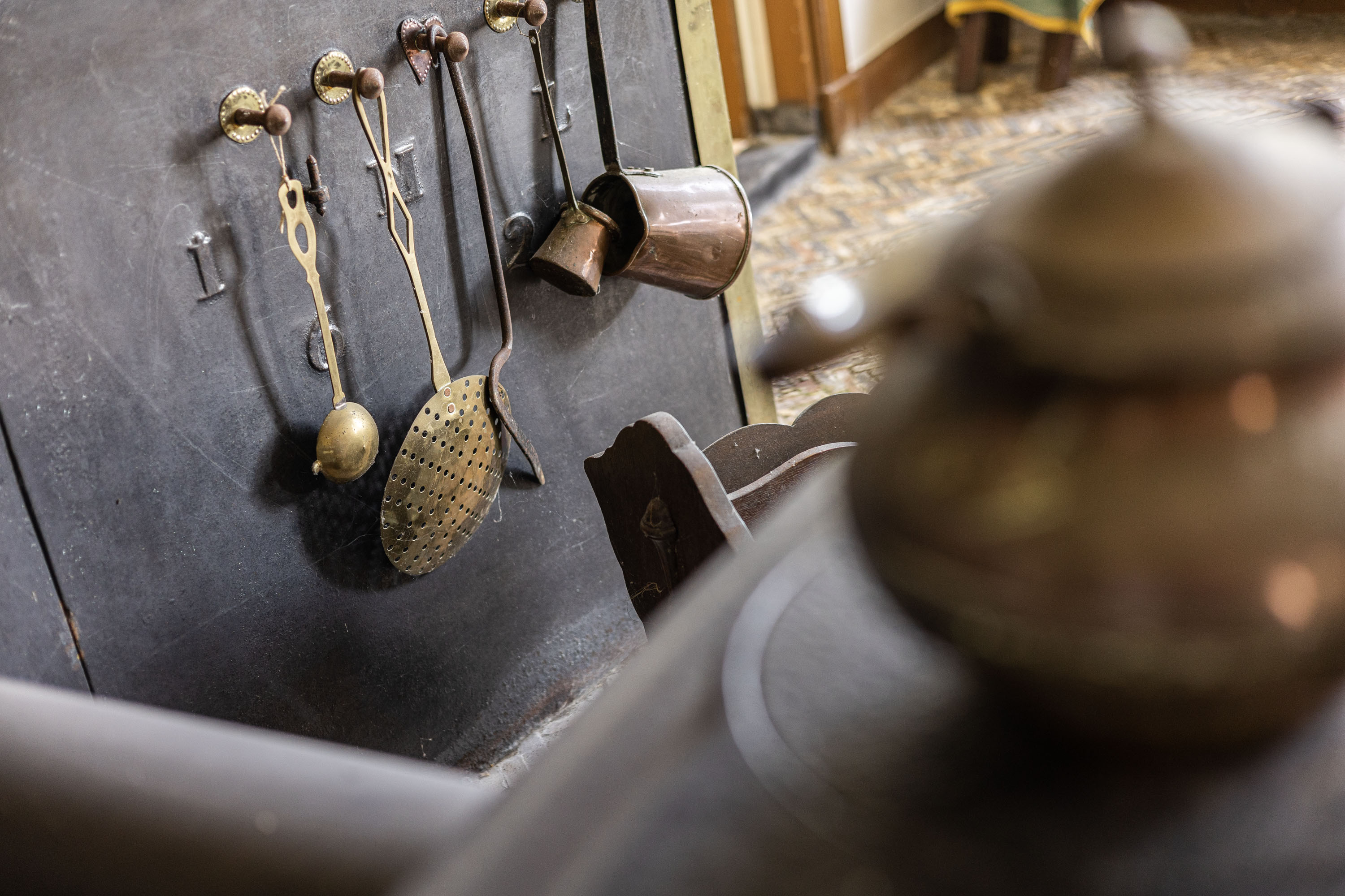 Das Bauernhaus bietet mehr als 800 m² Innenfläche, davon 210 m² als Wohnfläche. Das Bauwerk aus dem Jahr 1860 beherbergt ein imposantes Wohnzimmer mit originalem Kamin, Tonfliesenboden und hohen Decken. Der Hauptflügel umfasst sechs Schlafzimmer und drei Bäder und ist flexibel nutzbar, etwa als Mehrgenerationenhaus, Gästebereich oder Homeoffice. Moderne Annehmlichkeiten wie 36 Solarpanels und teilweise doppelt verglaste Fenster sorgen für zeitgemäße Effizienz.