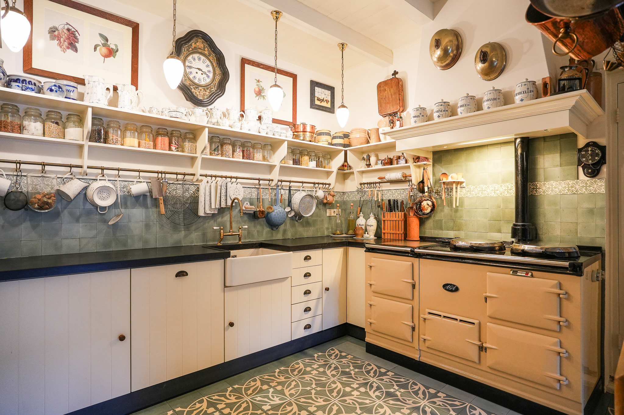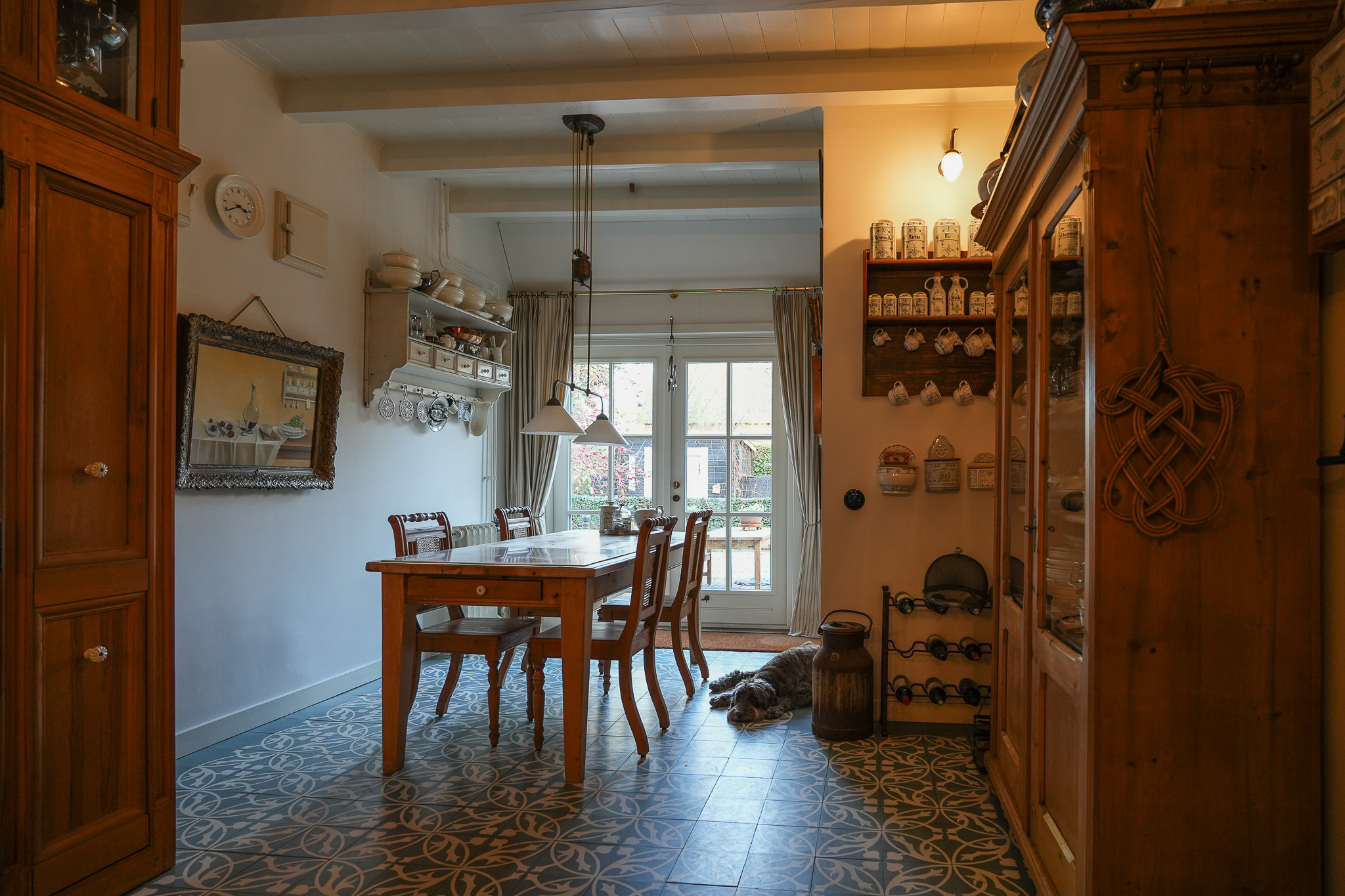 Das Bauernhaus Hellouw präsentiert sich als dezente, doch beeindruckende Erscheinung am Rande des Betuwe-Dorfes; sein Baujahr 1917 prägt jedes durchdachte Detail. Das Anwesen auf einem 4.910 m² großen Grundstück bietet 403 m² Wohnfläche, fünf Schlafzimmer und zwei Bäder. Großzügige Proportionen und originale Stilelemente bestimmen das Interieur, wo Sandsteinkamine und Fachwerkbalken den Räumen eine angenehme Schwere verleihen. Im Erdgeschoss befindet sich ein geräumiges, gartenseitiges Wohnzimmer in der ehemaligen Scheune, eine Landhausküche mit antiken Fliesen, ein Weinkeller sowie ein Ensemble ebenerdiger Räume: ein Schlafzimmer mit Kamin, Ankleide und Büro – alle mit Blick ins private Grün.