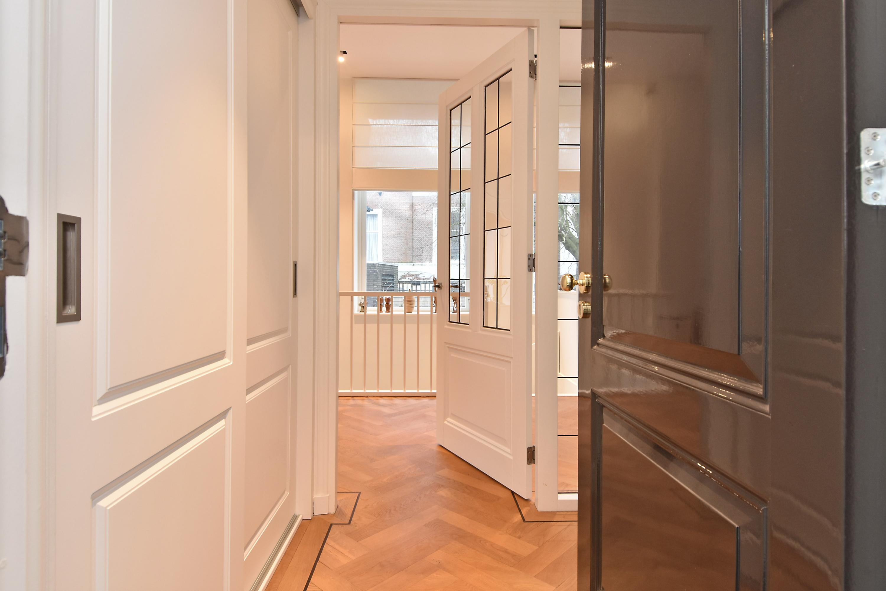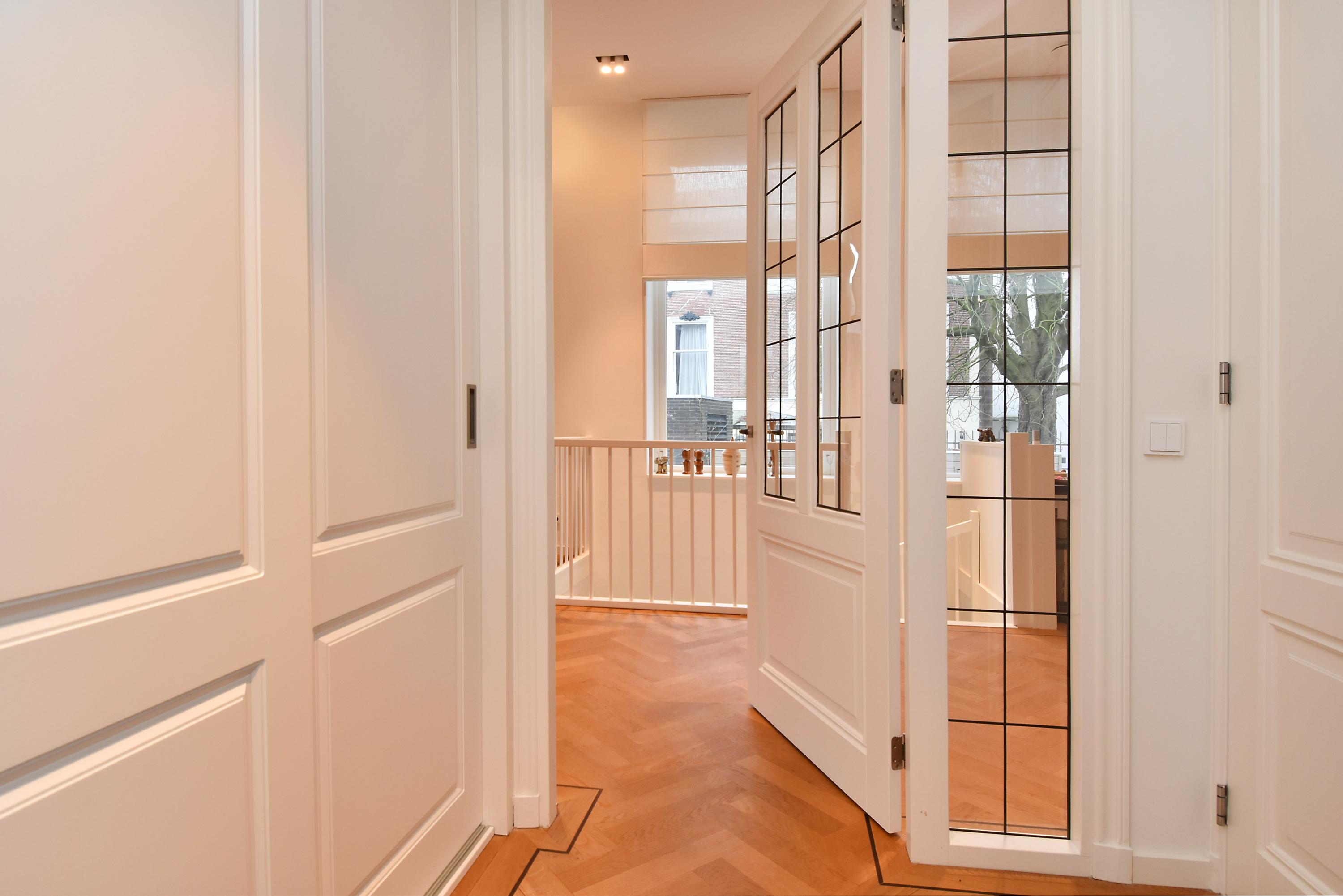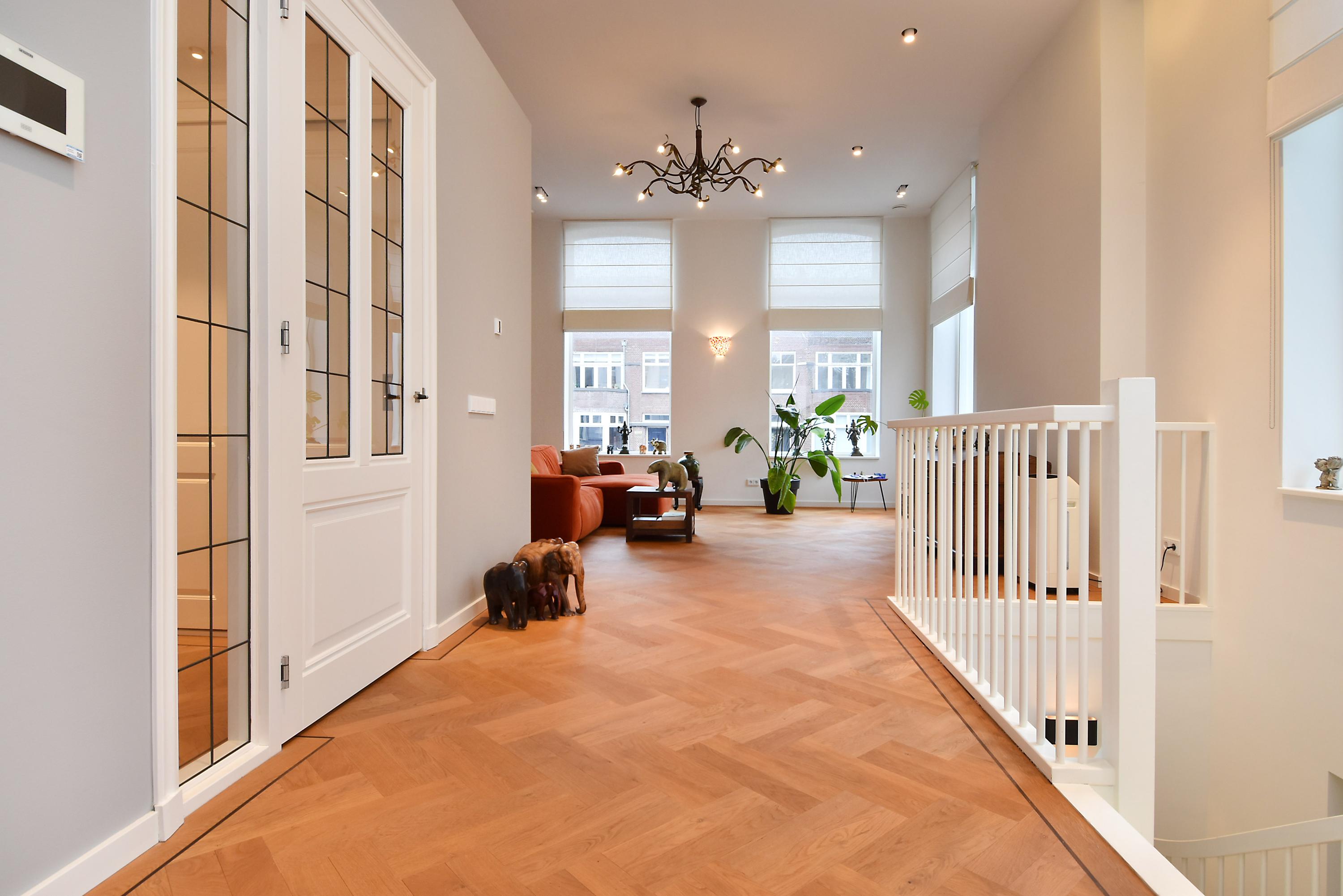 Three bedrooms and two bathrooms are found on the lower level, complemented by custom storage, a dedicated laundry area, and casting floors with underfloor heating. The property includes two reserved parking places with an EV charging point, full smart technology for heating and lighting, and is move-in ready. All within walking distance to fine dining, cultural venues, and the Peace Palace, this duplex apartment The Hague invites an elegant and contemporary quality of life.