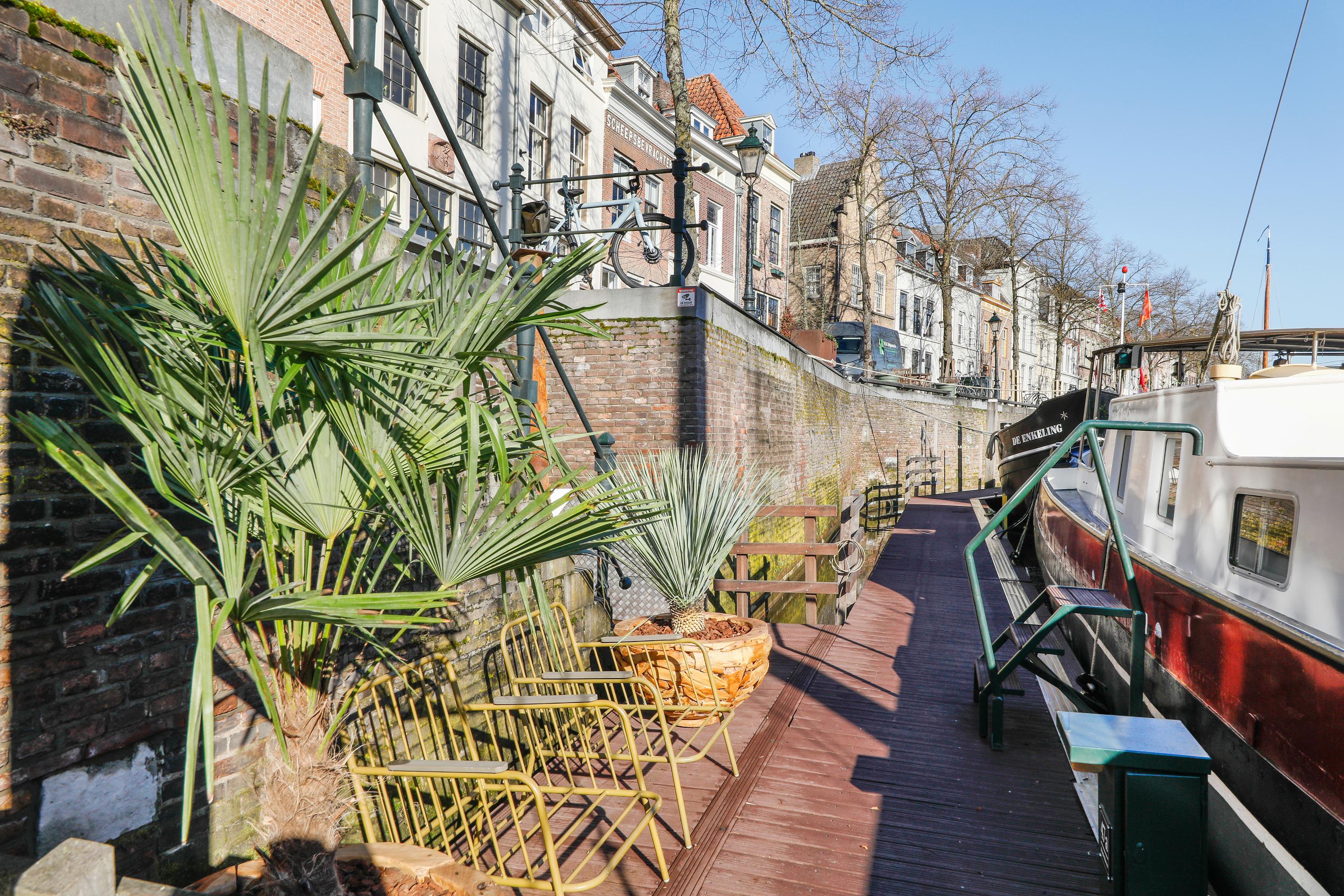 Brede Haven is famous for its elegant historic buildings and vibrant atmosphere along the harbour. From the living areas at the front of the house you enjoy views over the water and the lively quay, while the rear of the house overlooks the Dommel river, where boats and paddleboarders quietly pass by. This rare double waterfront position provides sunlight and beautiful views throughout the day.