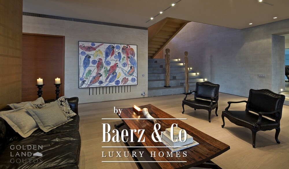 Villa Agia Marina stands as a refined statement in contemporary waterfront living. This villa Agia Marina with its 800 m² of meticulously designed space sits directly on the coastline, framed by 5,000 m² of landscaped grounds, offering an immediate, tranquil connection to the private beachfront and the Saronic Gulf beyond.