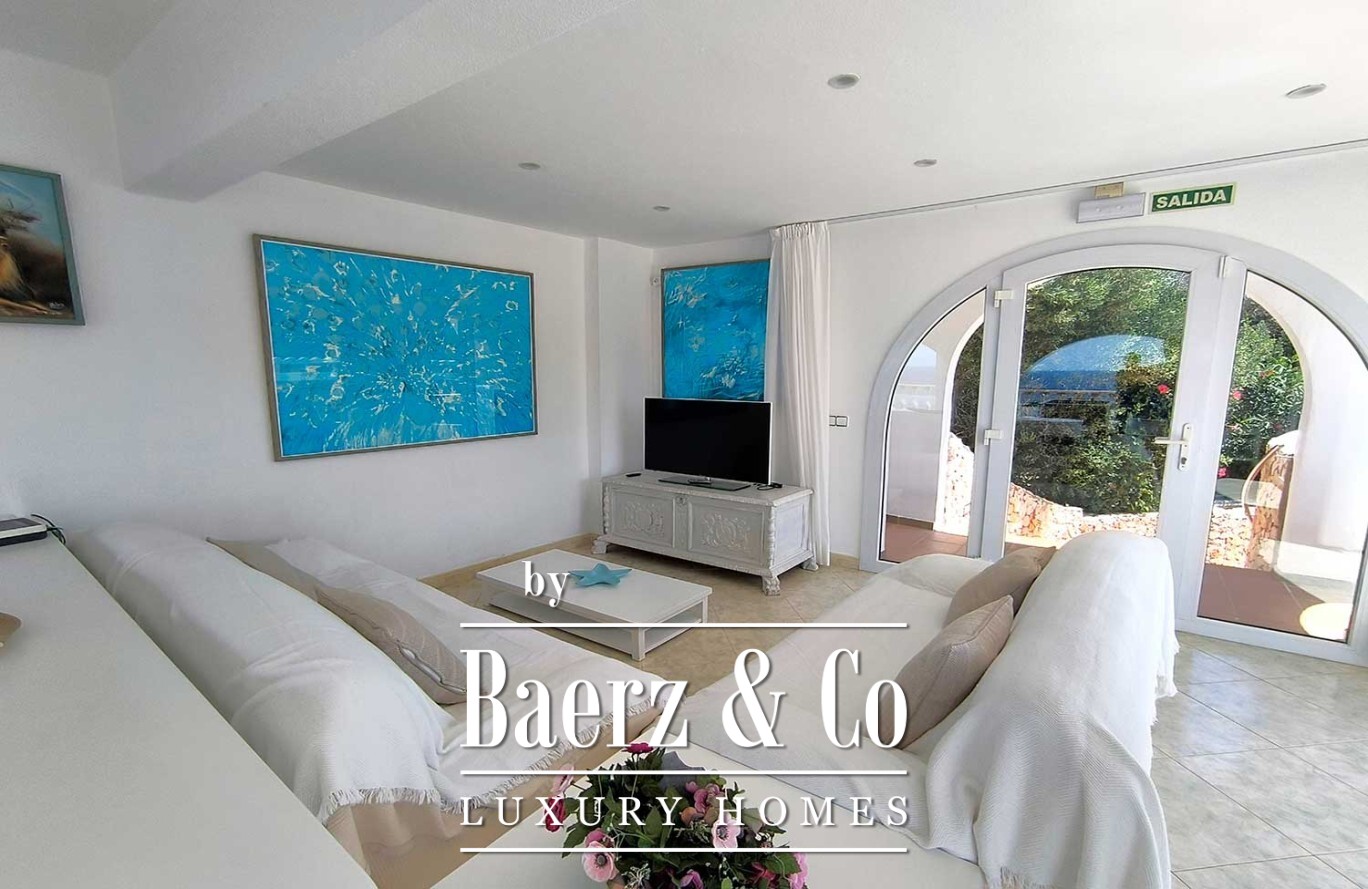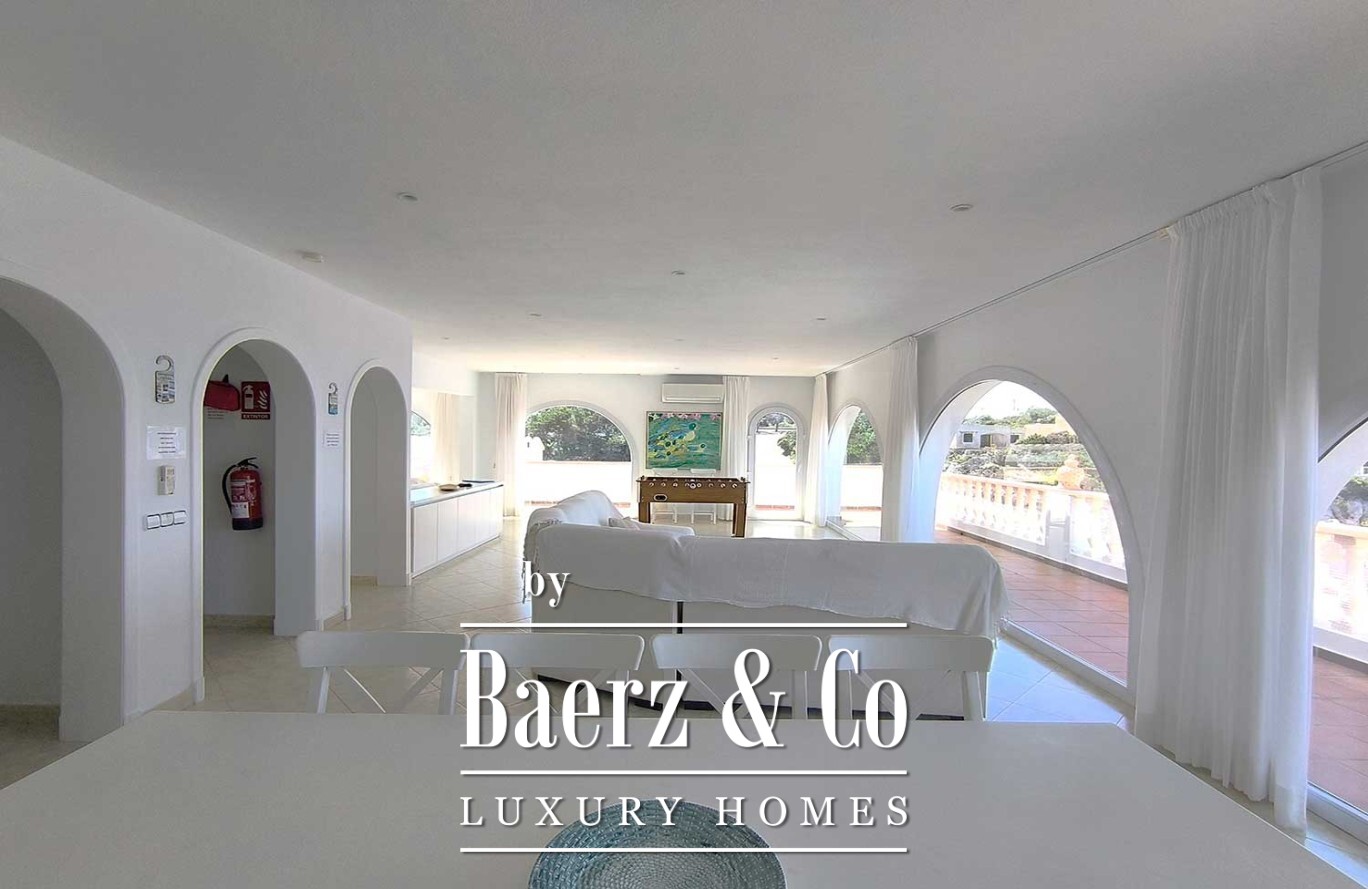 Exclusive Villa Cala’n Porter presents an understated expression of Mediterranean living, unfolding across 424 m² on multiple levels within a secluded 1,400 m² plot. Thoughtfully oriented to capture far-reaching sea views, this property harmonizes spacious gardens with generous terraces, inviting the rhythm of the ocean into daily life.