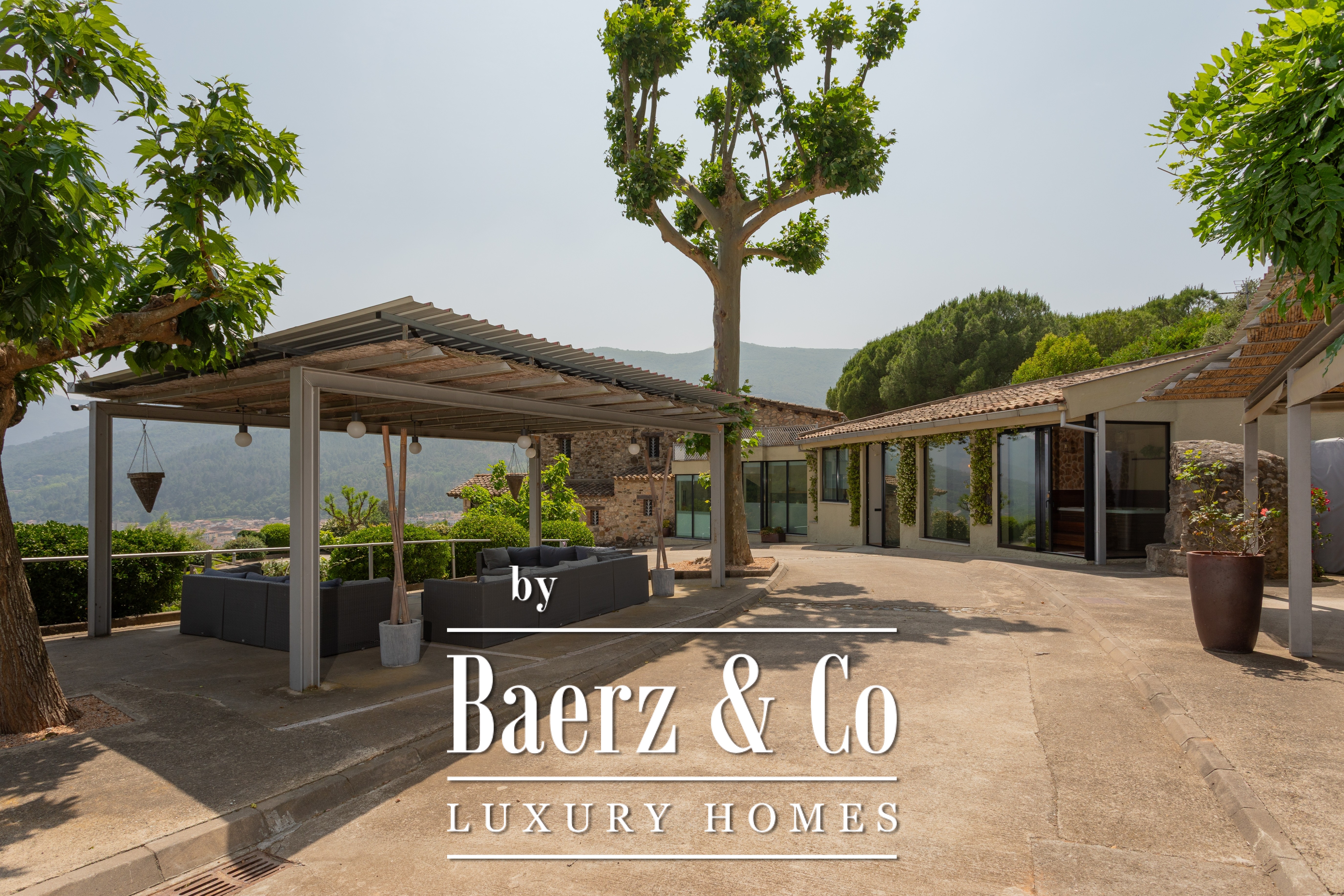 Masia for sale Amer presents a rare opportunity to own an authentic piece of Catalan history. Dating to 1720, this remarkable 645 m² masia has been meticulously restored across a 20,245 m² private estate, elevated above the Amer Valley with uninterrupted views of La Selva and the surrounding mountains. Stone, light, and space define the ambience, while a curated hospitality concept is already established, offering both lifestyle and business continuity. The main residence provides five elegant bedrooms and six bathrooms, refined living spaces, and a professional kitchen. Contemporary comfort coexists with heritage, underscored by air conditioning, heating, and high-speed Wi-Fi throughout. A wellness suite with jacuzzi and dedicated relaxation areas adds a layer of retreat, complemented by terraces and a large illuminated swimming pool tied seamlessly to the manicured gardens.
