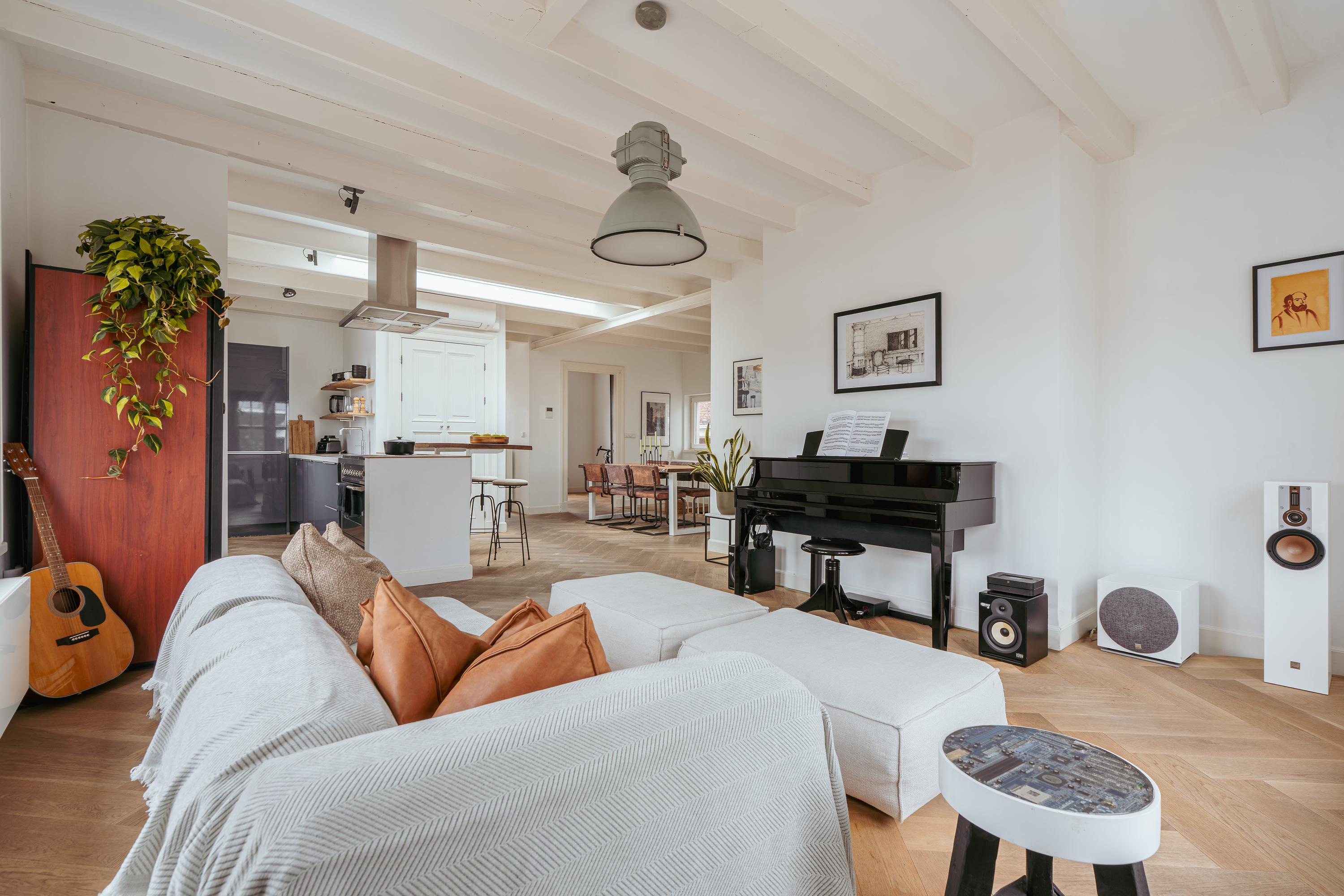 The third floor forms the main living area of the apartment. From the central hallway, all rooms are accessible. At the front lies the spacious living room with large windows and a view of De Hallen. The space enjoys abundant natural light and offers ample room for both a generous sitting and dining area.
