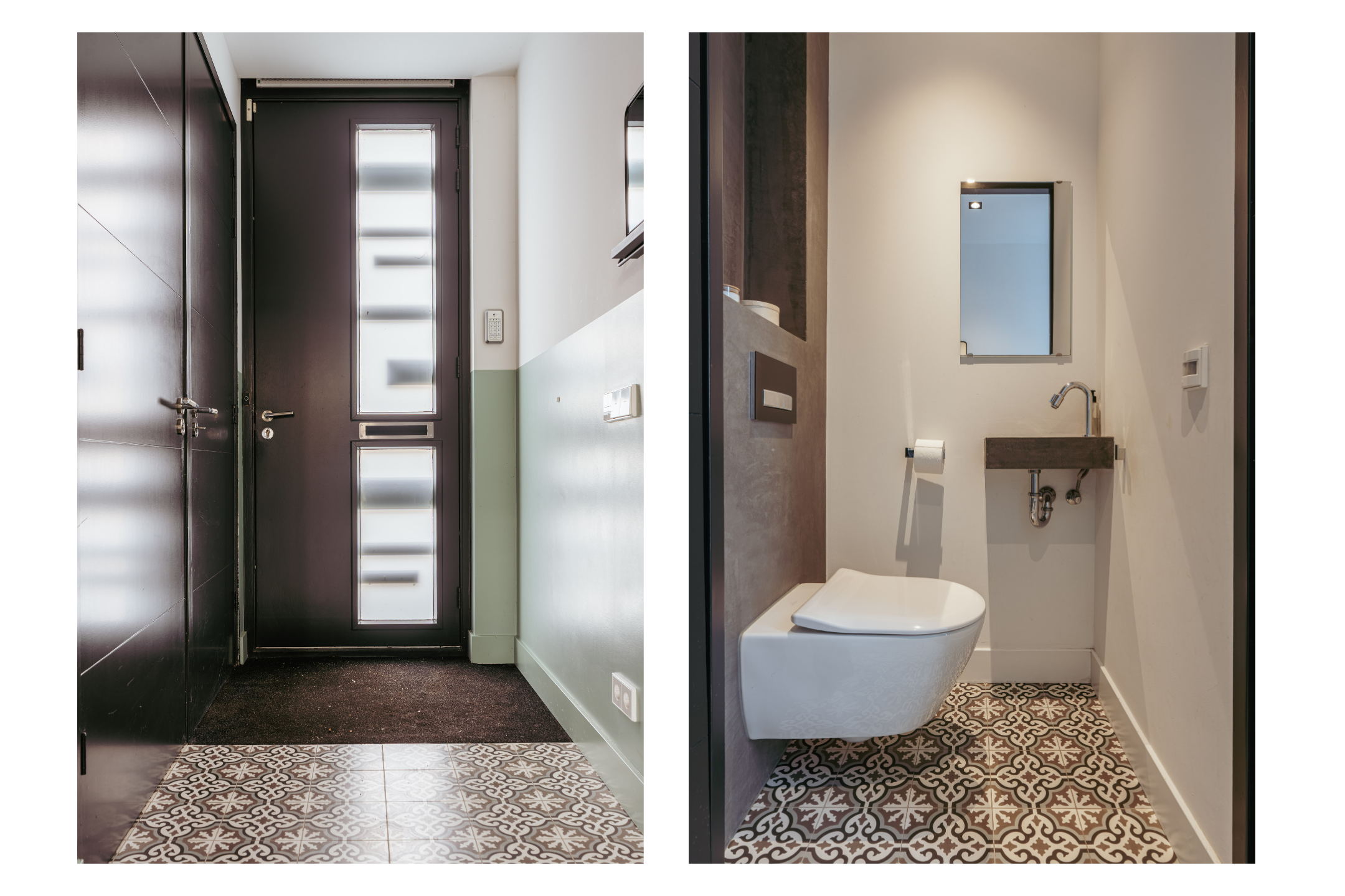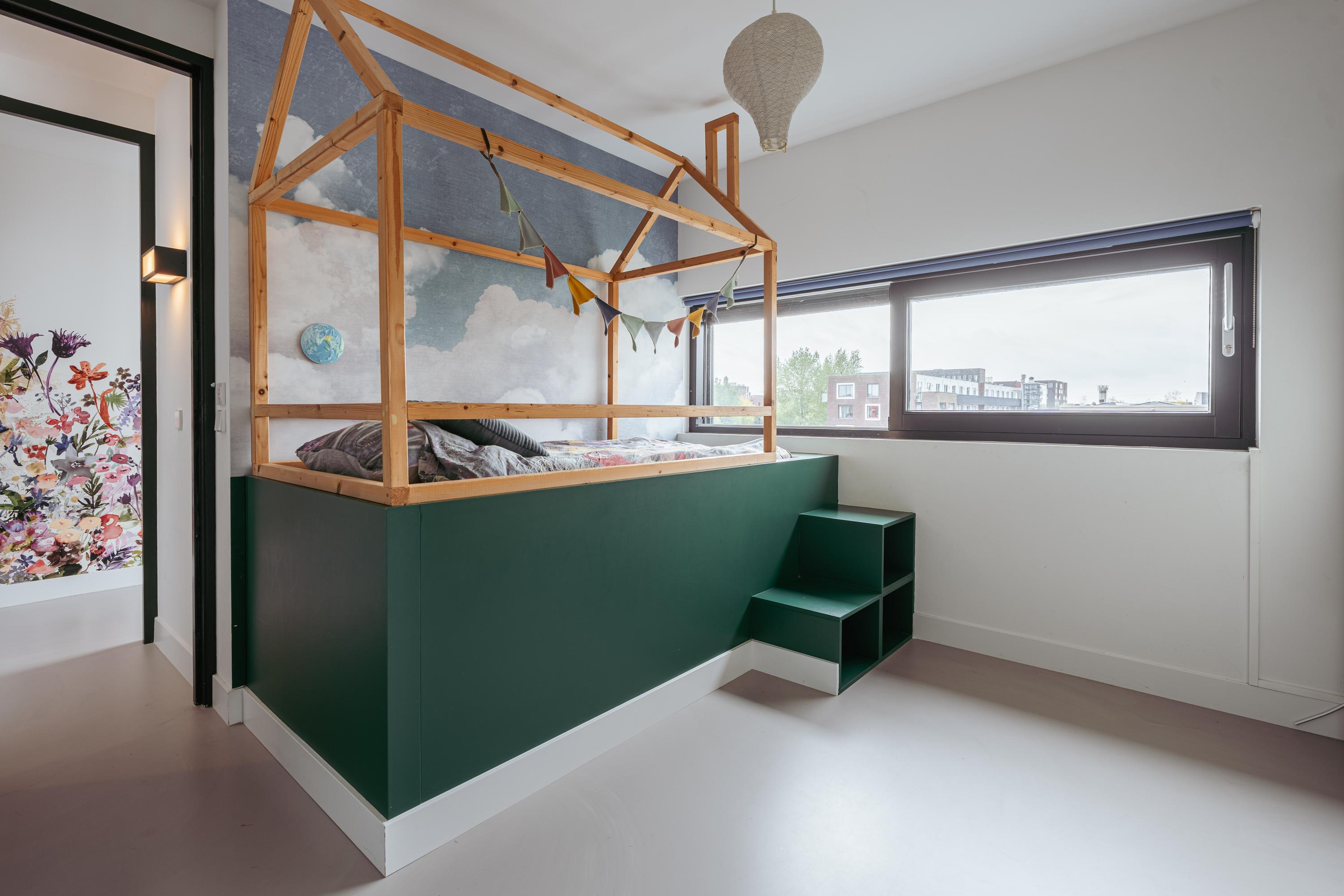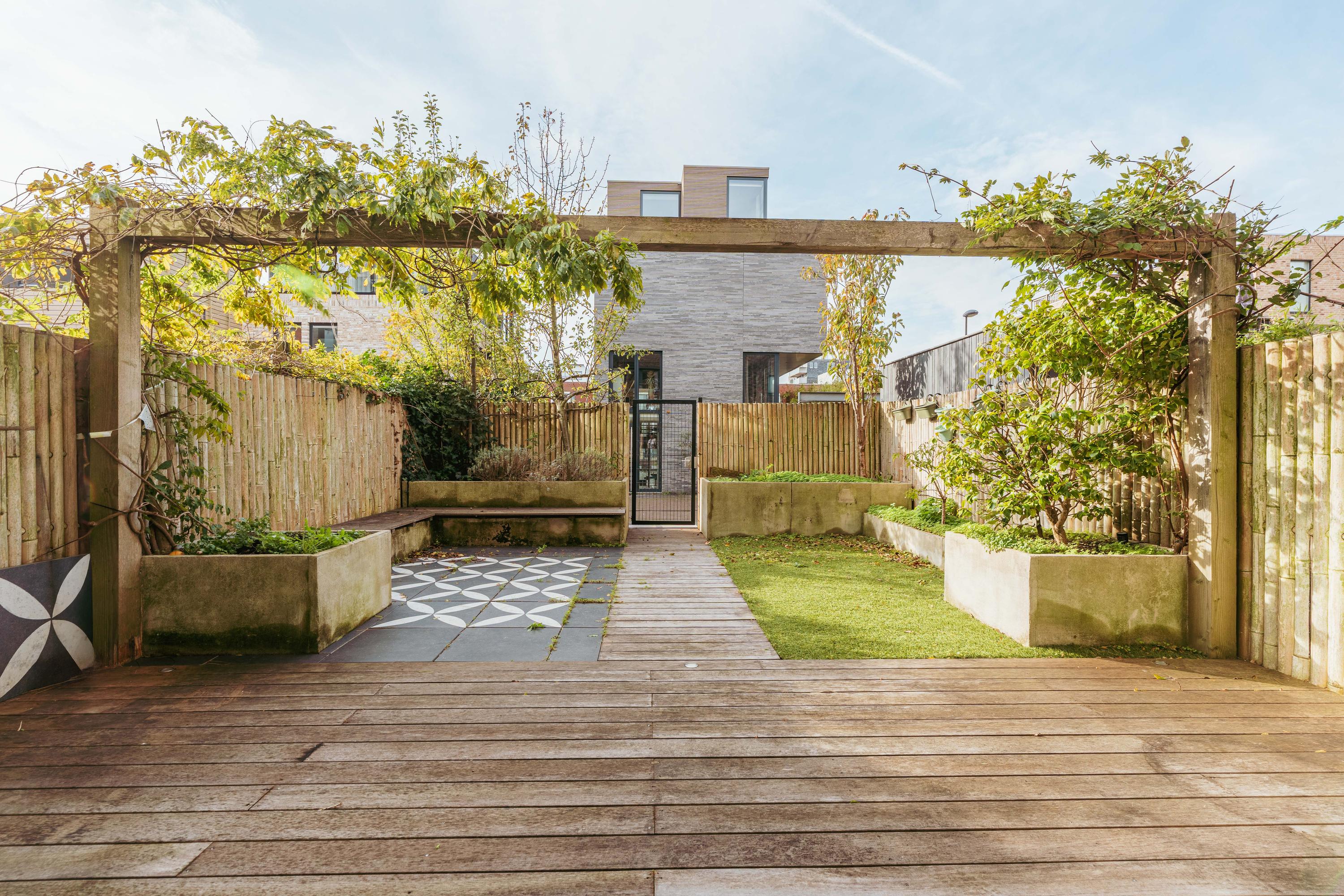 The home features five bedrooms and two bathrooms, complemented by a sauna, a private soundproof cinema, and several flexible rooms. The south-facing garden, approximately 54 m², connects seamlessly to the living kitchen through French doors, promoting both relaxation and sociability. Underfloor heating runs throughout, paired with energy-efficient HR++ glazing, district heating, and 17 solar panels for a gas-free, A-rated energy class environment. Two onsite parking spaces and an electric charging station complete this offering.