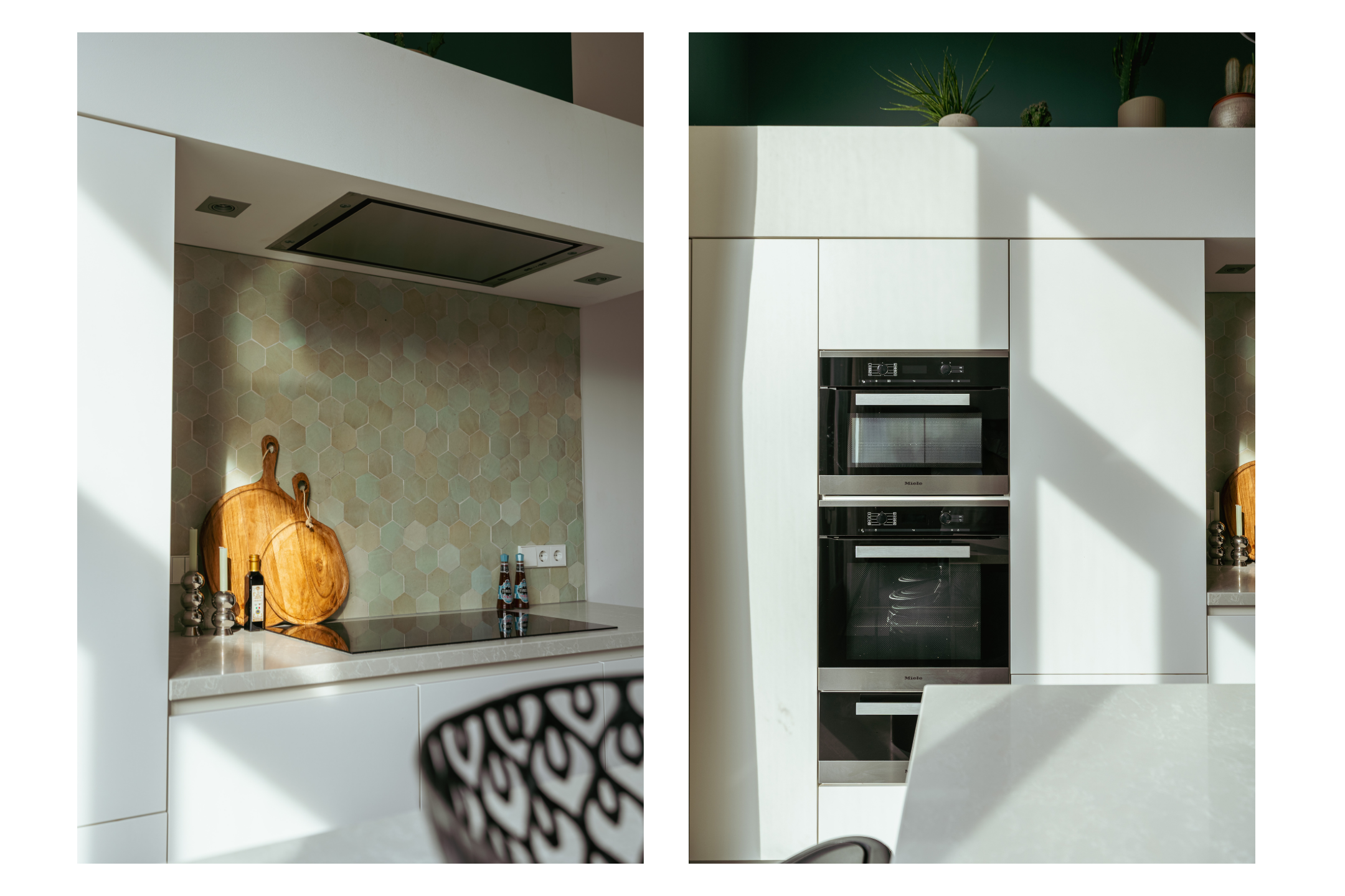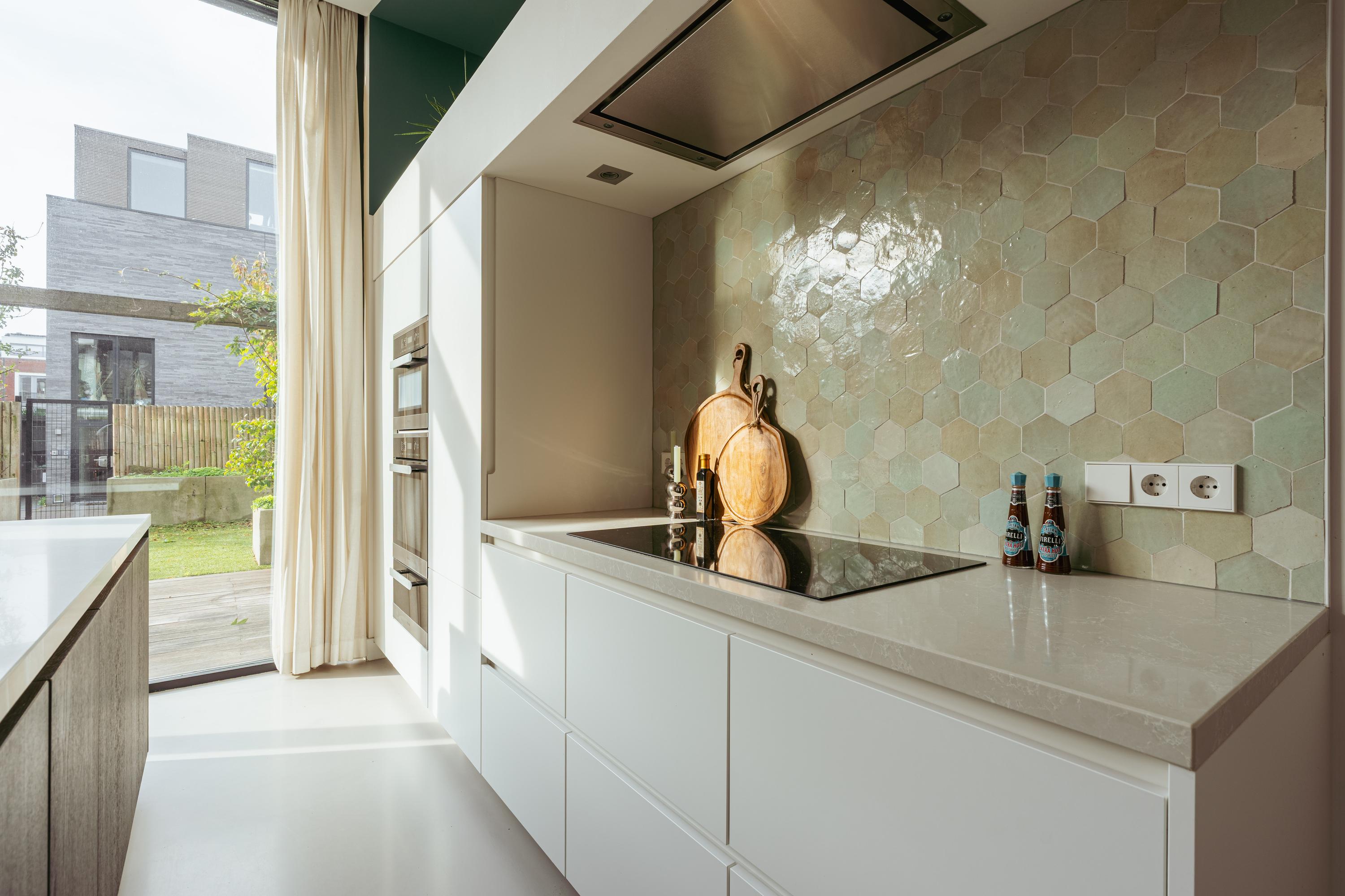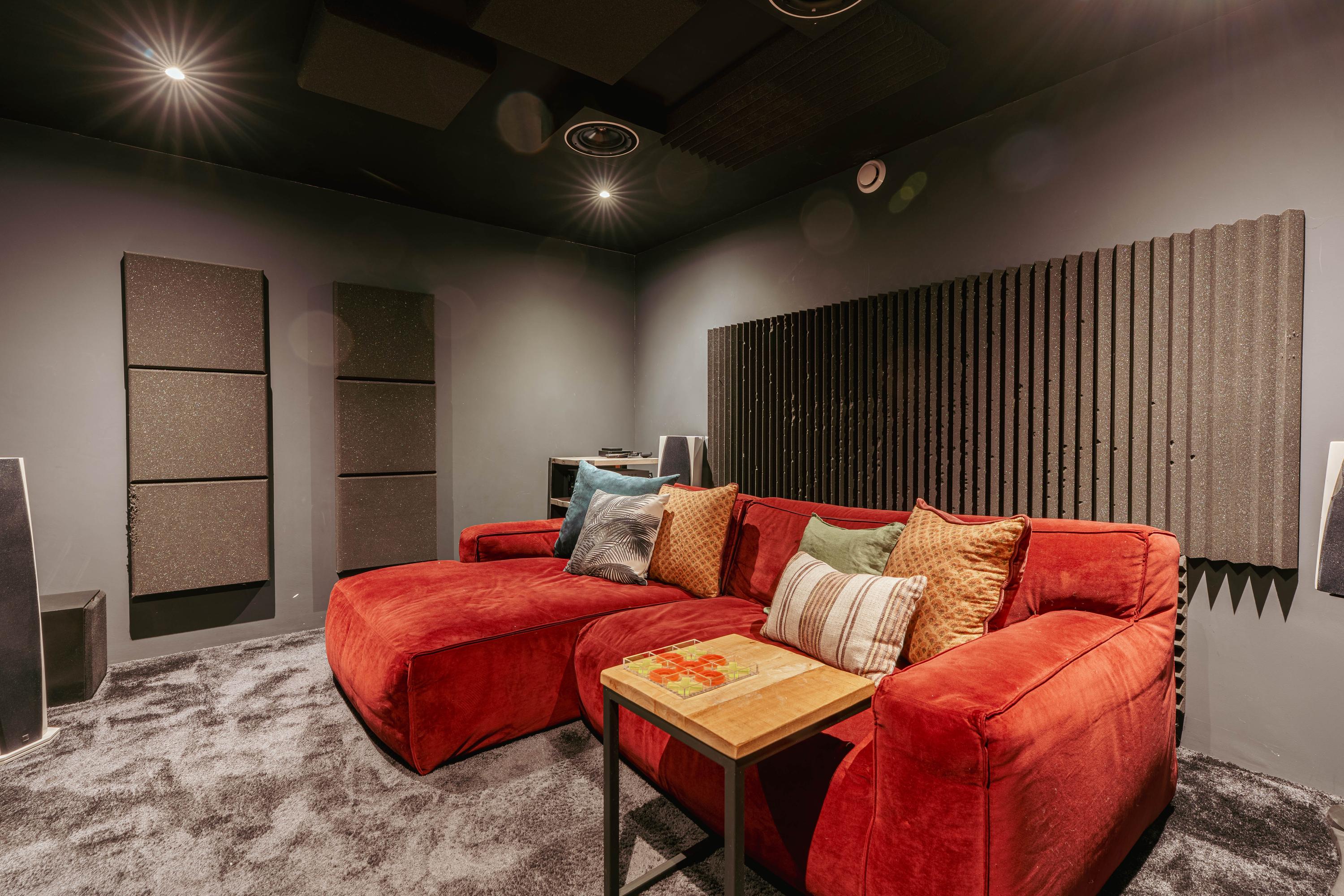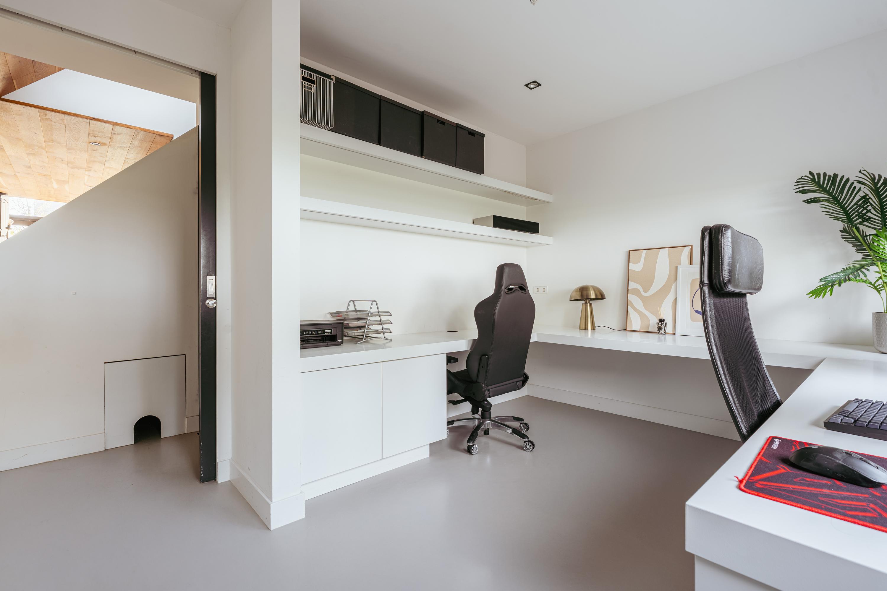 The home features five bedrooms and two bathrooms, complemented by a sauna, a private soundproof cinema, and several flexible rooms. The south-facing garden, approximately 54 m², connects seamlessly to the living kitchen through French doors, promoting both relaxation and sociability. Underfloor heating runs throughout, paired with energy-efficient HR++ glazing, district heating, and 17 solar panels for a gas-free, A-rated energy class environment. Two onsite parking spaces and an electric charging station complete this offering.