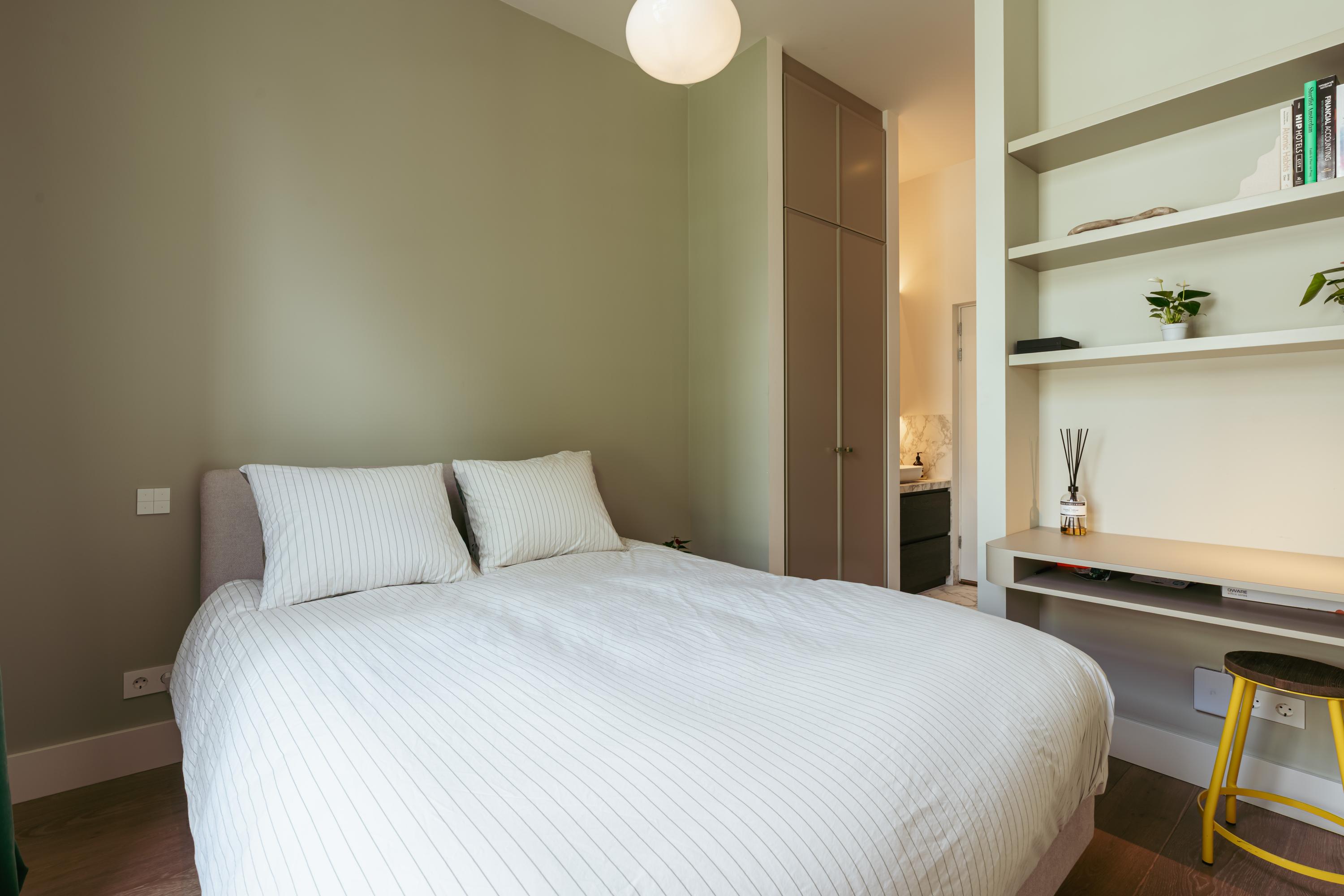 Aan de voorzijde bevindt zich daarnaast nog een ruime slaapkamer en een luxe badkamer voorzien van inloopdouche, wastafel met meubel en een separaat toilet met fontein.