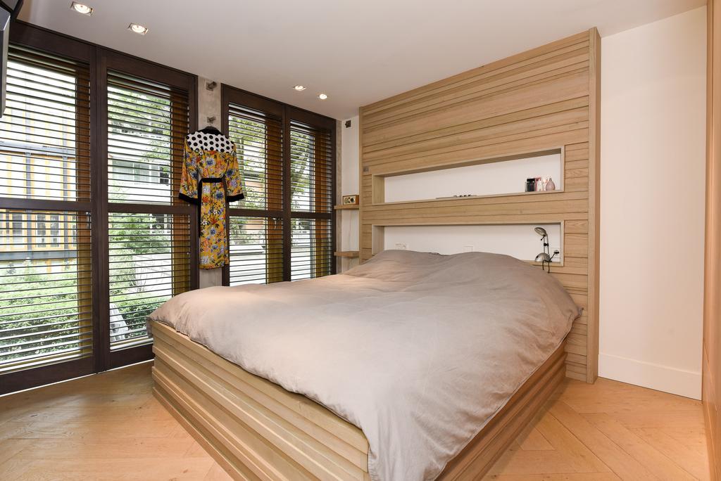This block was designed and finally completed in 2012, with an eye for detail and quality. The design provided for extra high ceilings and the use of predominantly glass in the façades on the garden side. The apartments are light, airy and spacious. The current owners finished off the apartment’s interior with a great deal of taste and an eye for detail which may be seen in the sturdy materials such as the herringbone pattern floors and the steel surrounds to the internal framing for doors and windows. Lots of details are repeated throughout the apartment. This apartment has a floor area of 135 m² and a garden of 41 m².