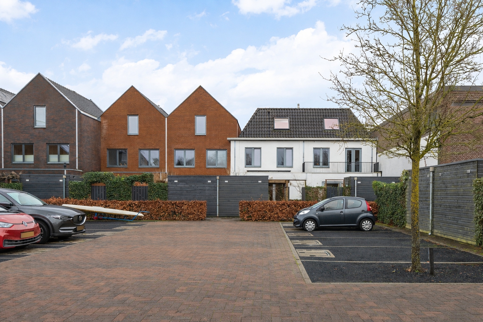 De woning is uitgevoerd in een bijzondere twee-onder-een-kap stijl, waarbij meerdere woningen in een rij zijn gerealiseerd. Deze architectonische opzet combineert het gevoel van een twee-onder-een-kapwoning met de efficiëntie en samenhang van rijbebouwing. Het resultaat is een rustig en evenwichtig straatbeeld met een herkenbare, eigentijdse uitstraling. Door deze bouwvorm profiteert de woning van een duidelijke eigen identiteit, een prettige breedtemaat en een logische indeling, terwijl de aansluiting met de naastgelegen woningen zorgvuldig is vormgegeven.