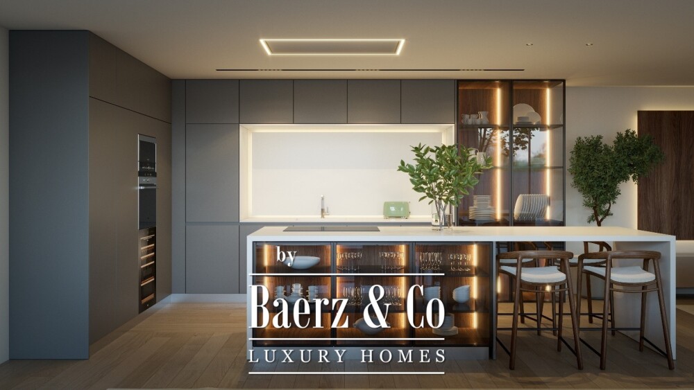 Every material is purposeful: multilayered oak floors, walnut-clad stairs, and bathrooms sheathed in porcelain and stone. The façade unites ultra-compacted Travertine ceramic and aluminium slats, ensuring architectural distinction. Climate comfort is assured by fan coil air conditioning, controlled mechanical ventilation, heat pump, and home automation under the KNX open protocol. The kitchen is fully equipped with Bosch appliances, with curated attention to detail and function.