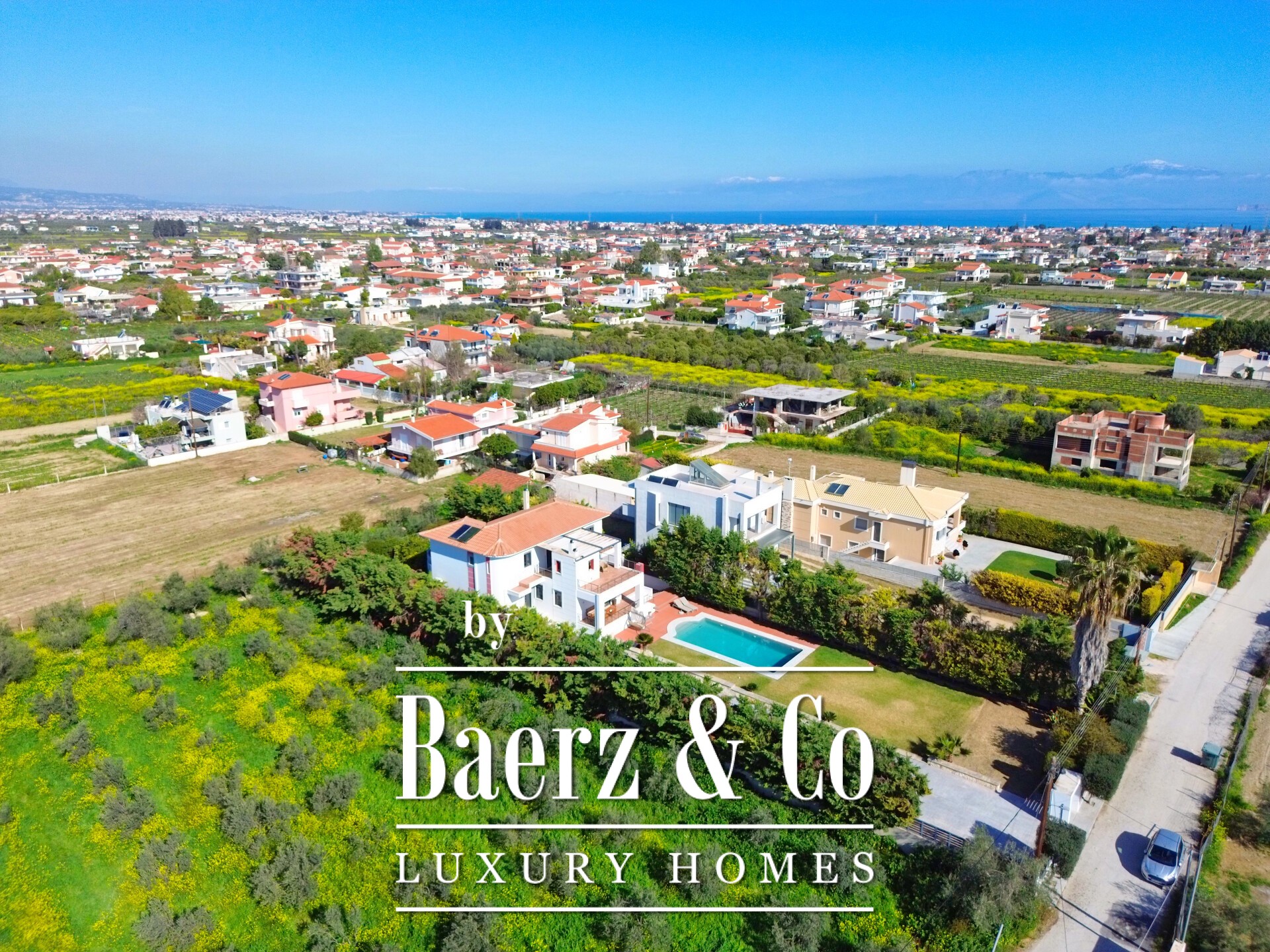 Detached house Assos offers a sense of calm grounded in spacious architecture and natural surroundings. This three-level residence, with its 450 m² interior and expansive 1,450 m² plot, welcomes you into a setting where panoramic mountain and nature views flood each generously lit room.