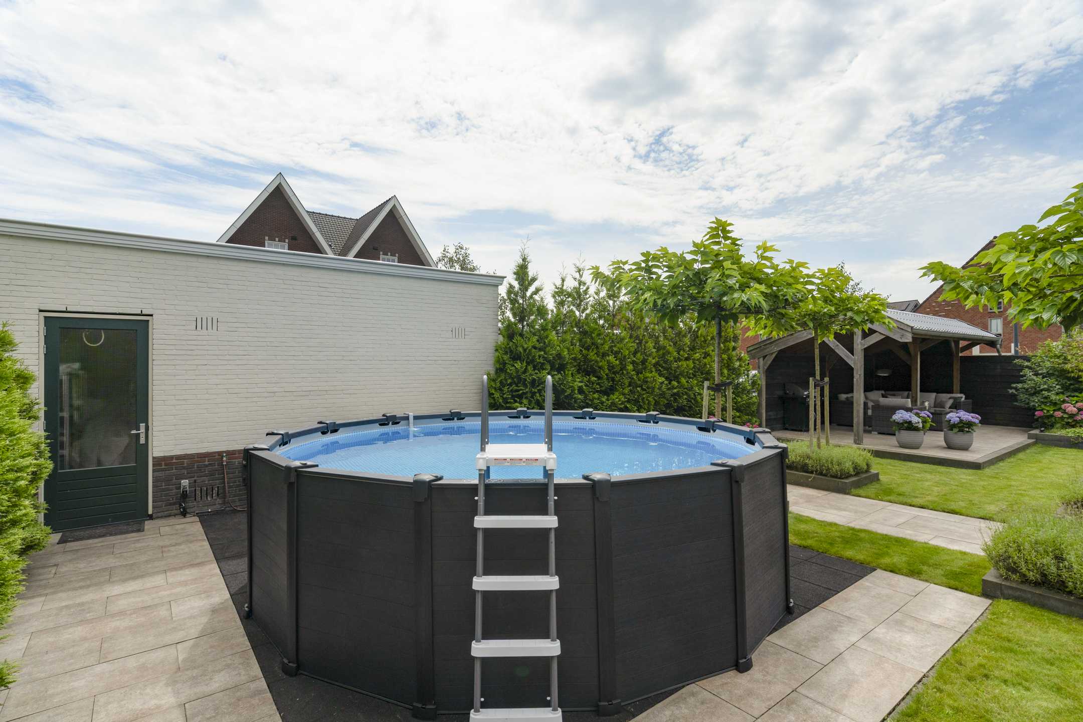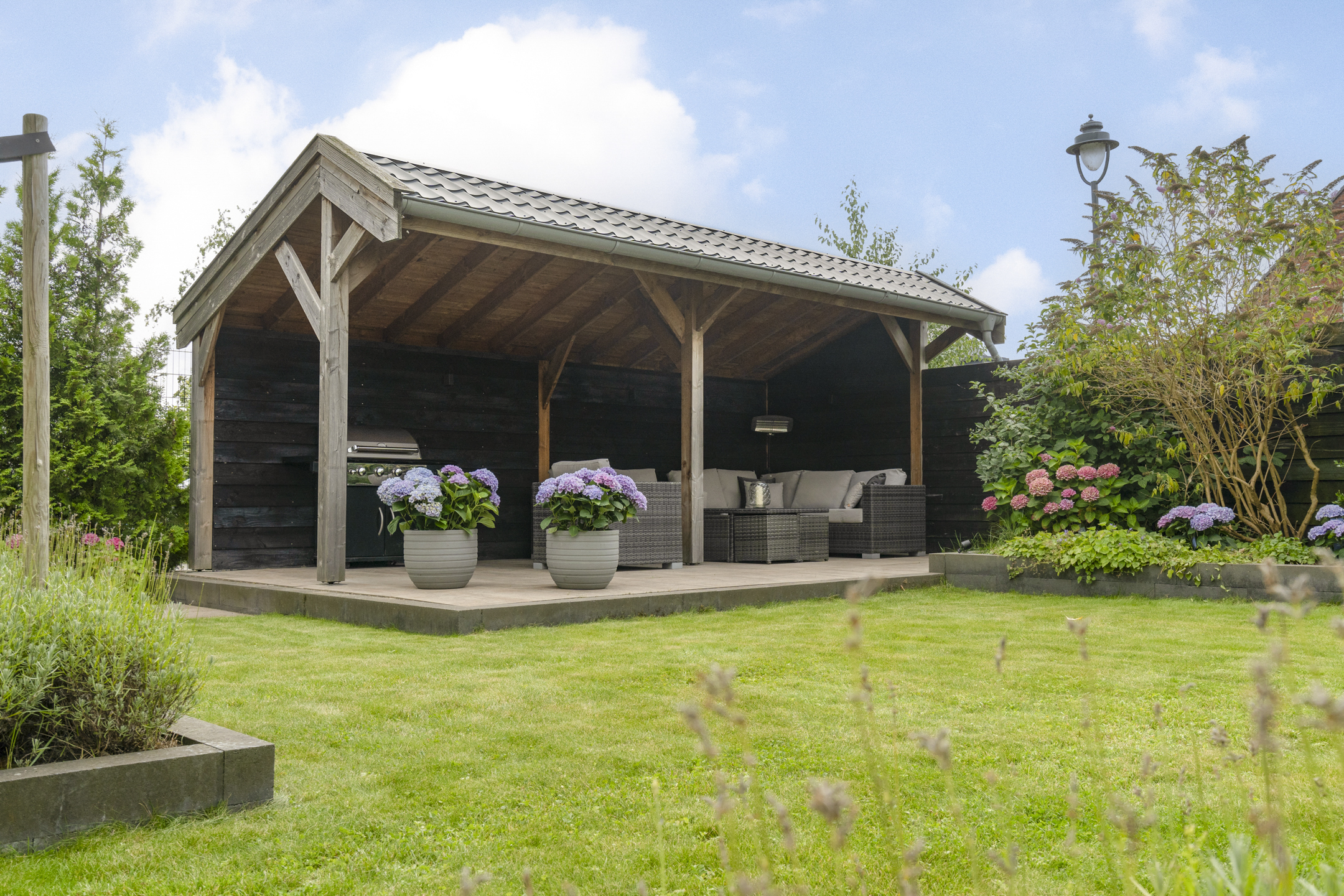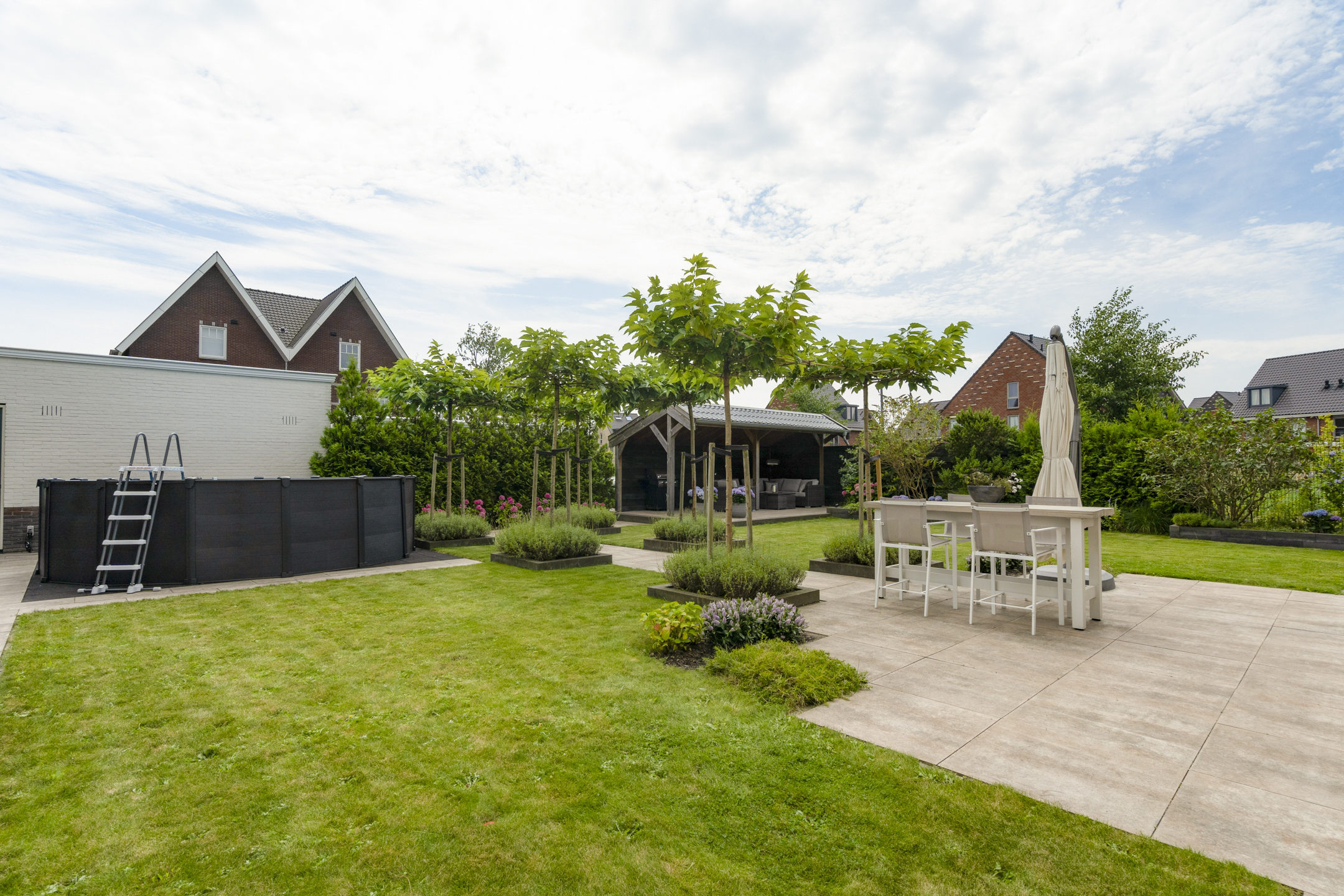 • Spacious garden with 22 m² canopy and heater.