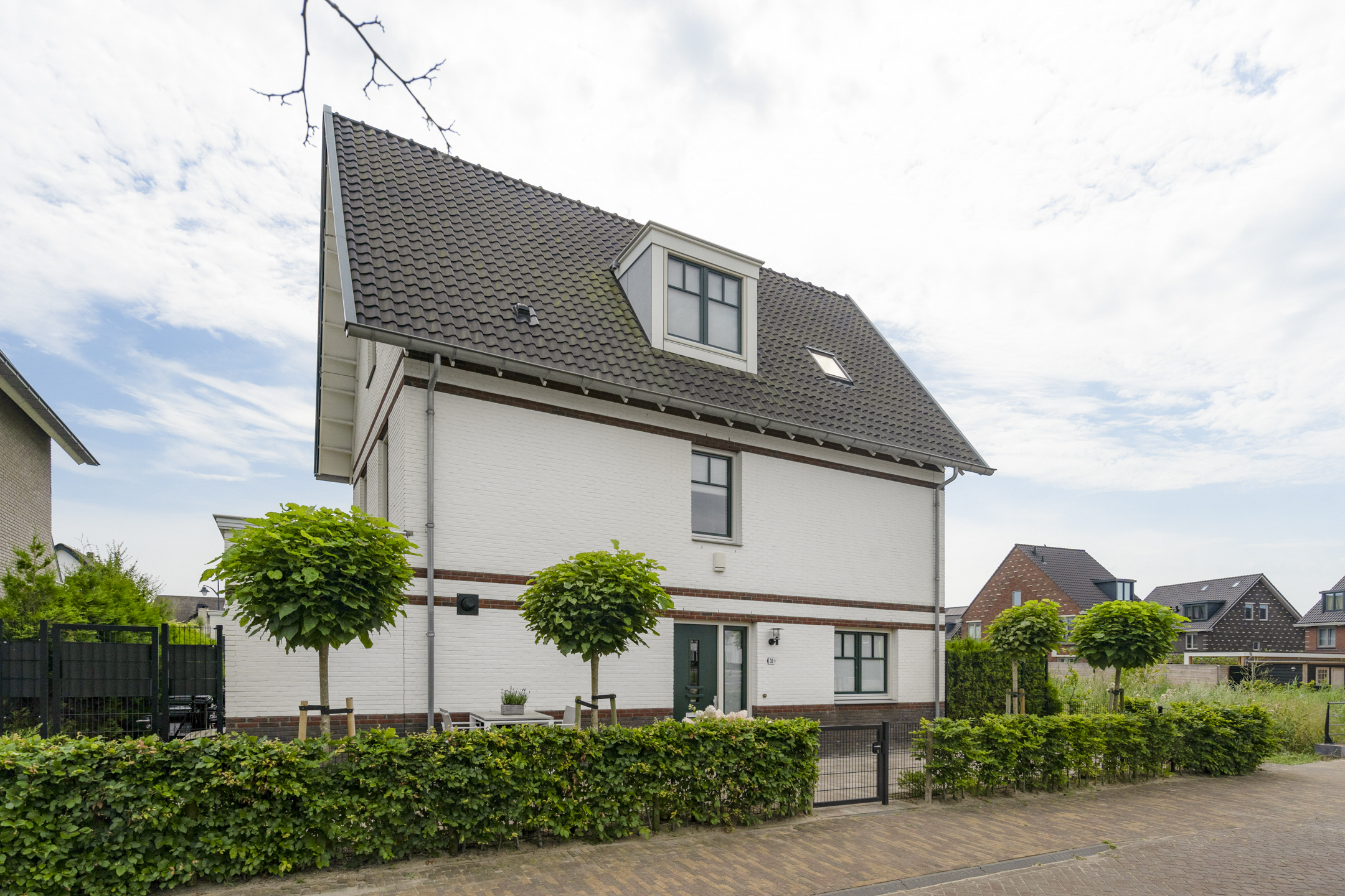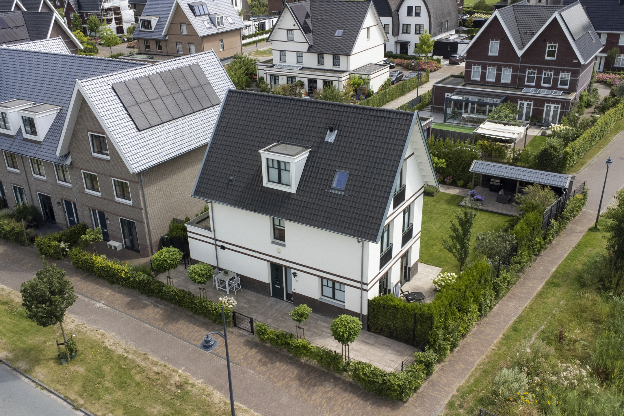 With a living area of no less than 181 m², 4 spacious bedrooms, 2 luxurious bathrooms and an attractive kitchen/diner, this is a dream home for families looking for comfort and style. The villa, built in 2020, radiates warmth and luxury and is finished in detail. The sunny southeast-facing garden offers a lot of privacy and space, so you can enjoy yourself in peace. There is also a detached canopy with lounge area and a beautiful swimming pool. The house also has a spacious garage and parking for several cars on site.