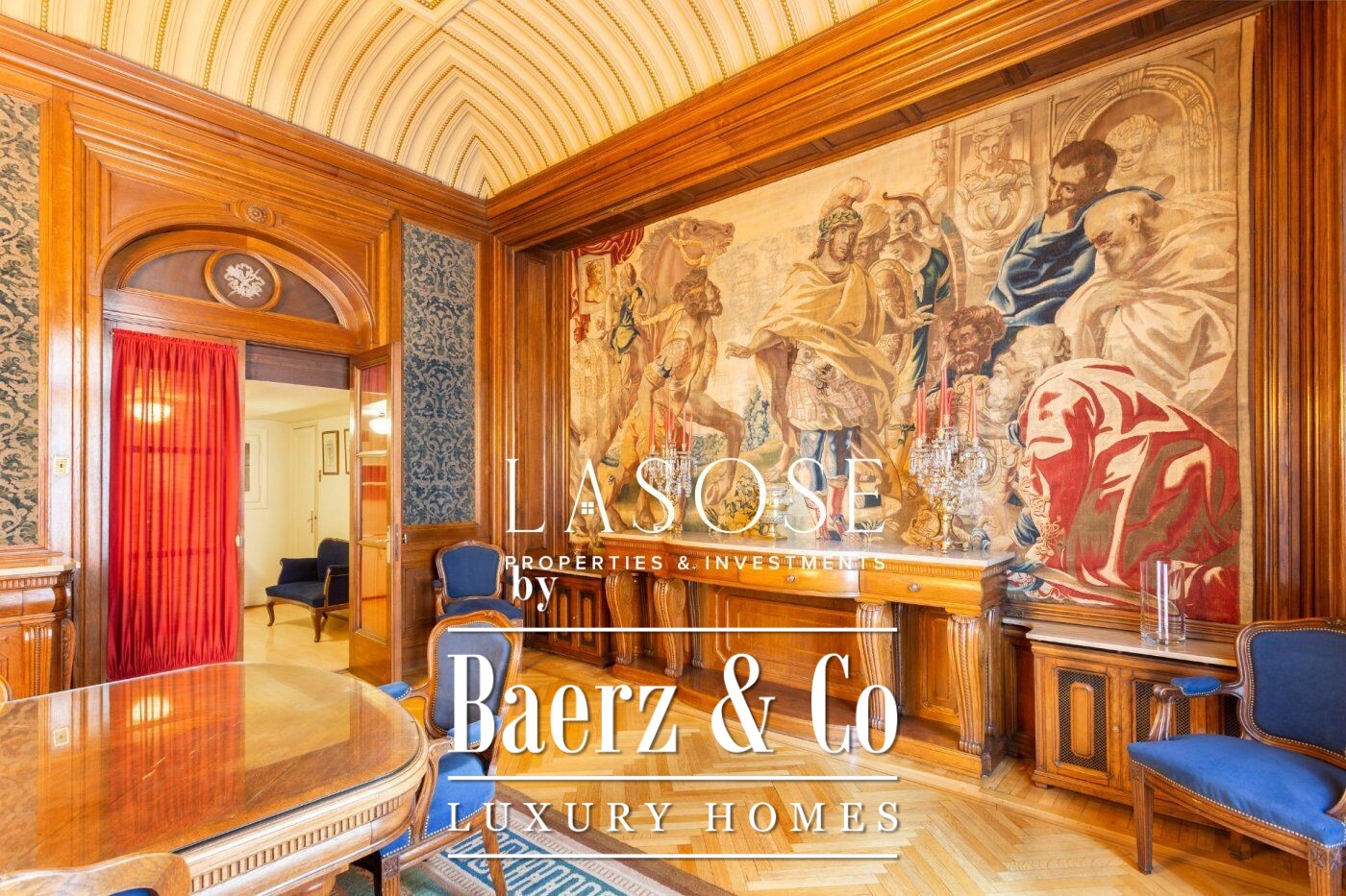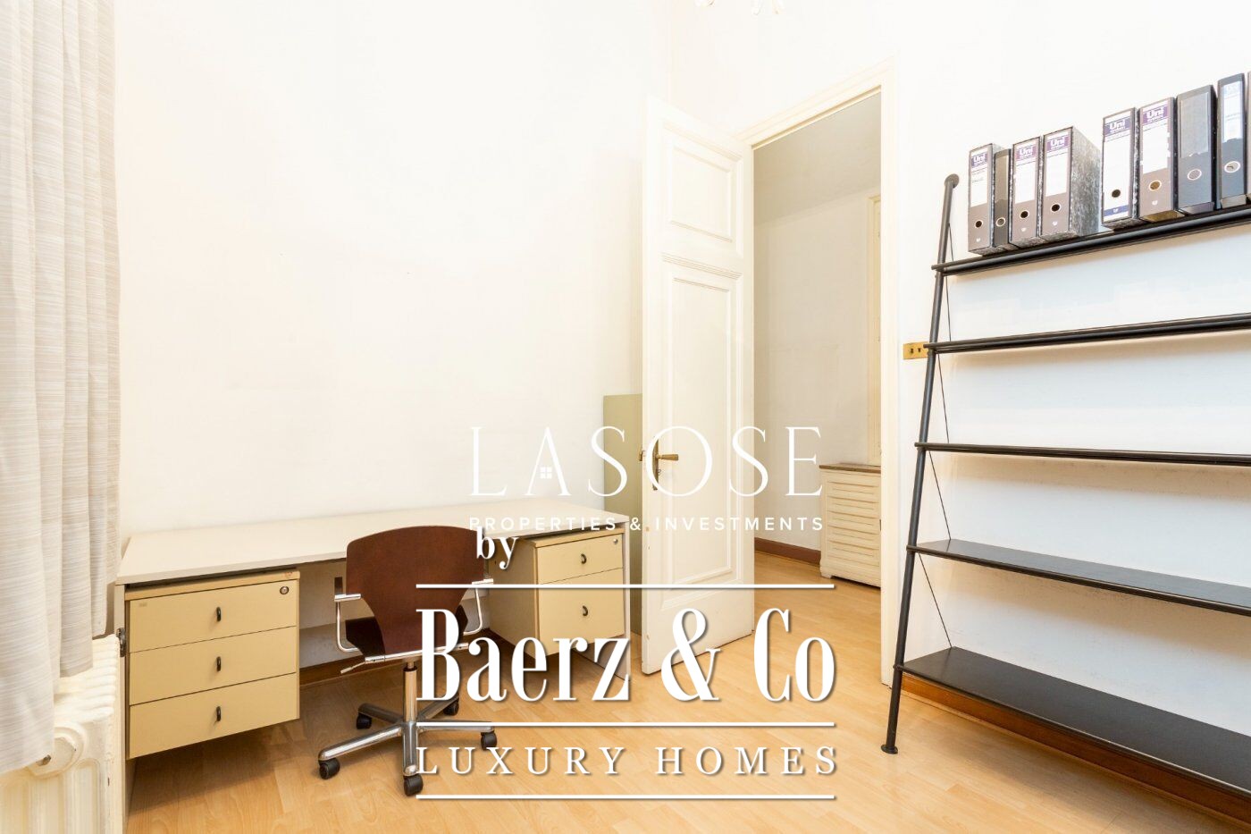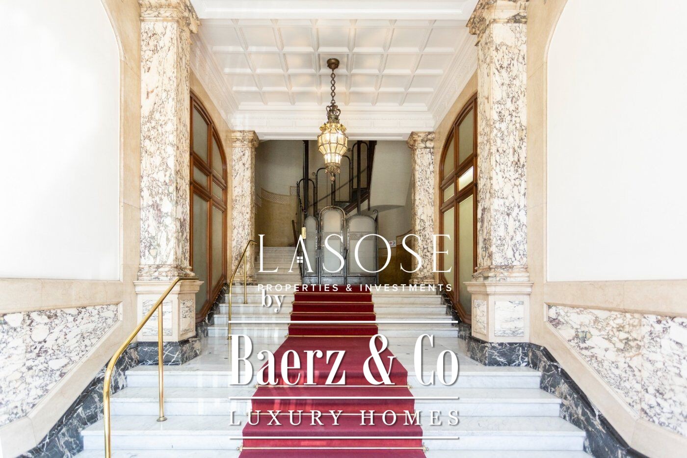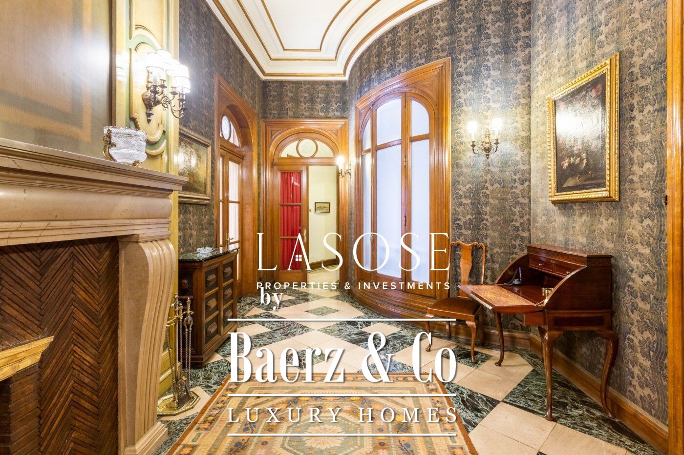 Positioned at the corner of Roger de Llúria and Provença, the office benefits from dual aspects, south-facing to the vibrant crossroads and north to a serene, luminous courtyard terrace. Ceilings soaring over 4 meters frame flexible volumes—20 rooms, 5 bathrooms, and generous public and private spaces—with natural light flowing throughout. Access is discreet, with direct street entry, an original wood-paneled lift connecting the main door, and a secondary elevator for service convenience.