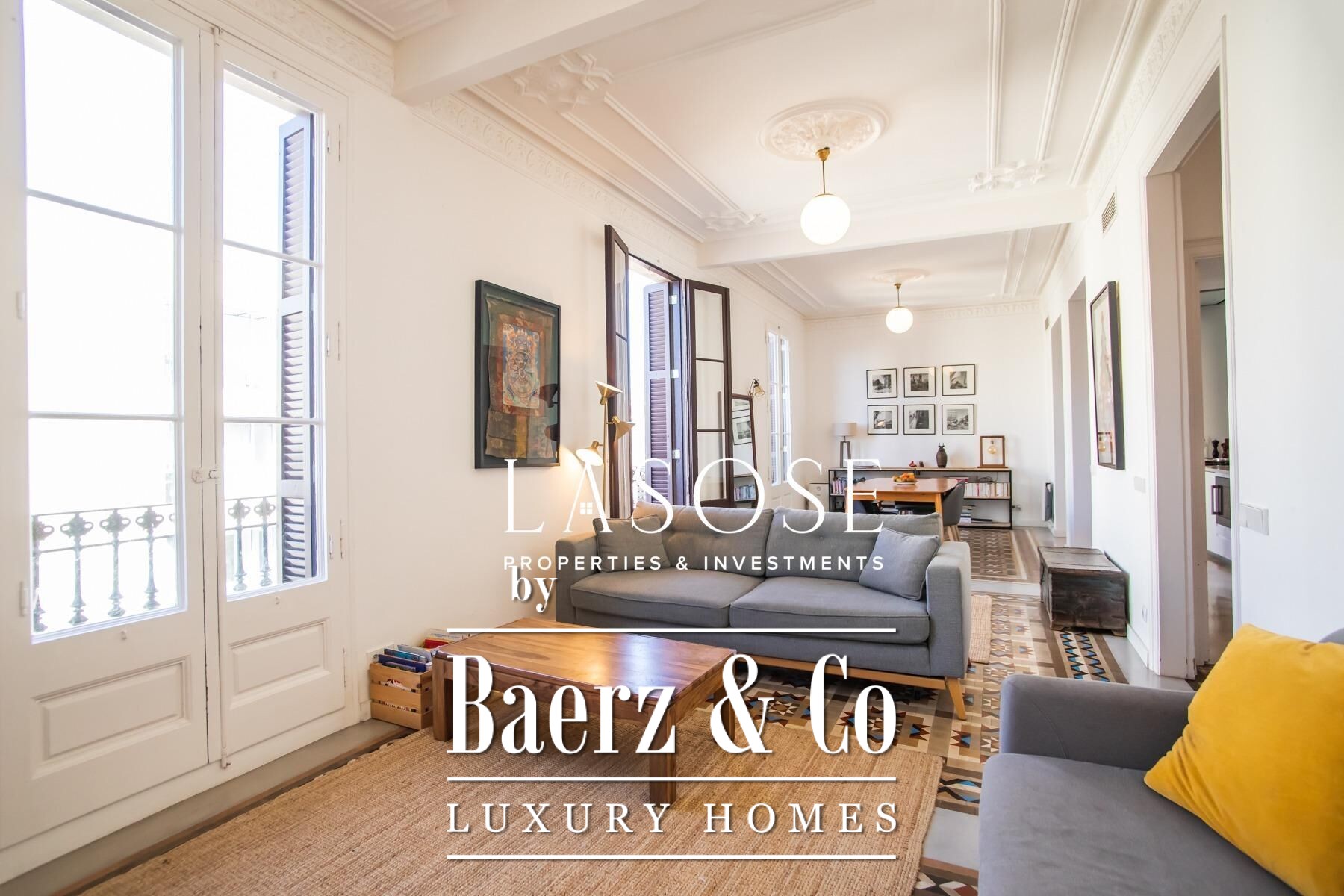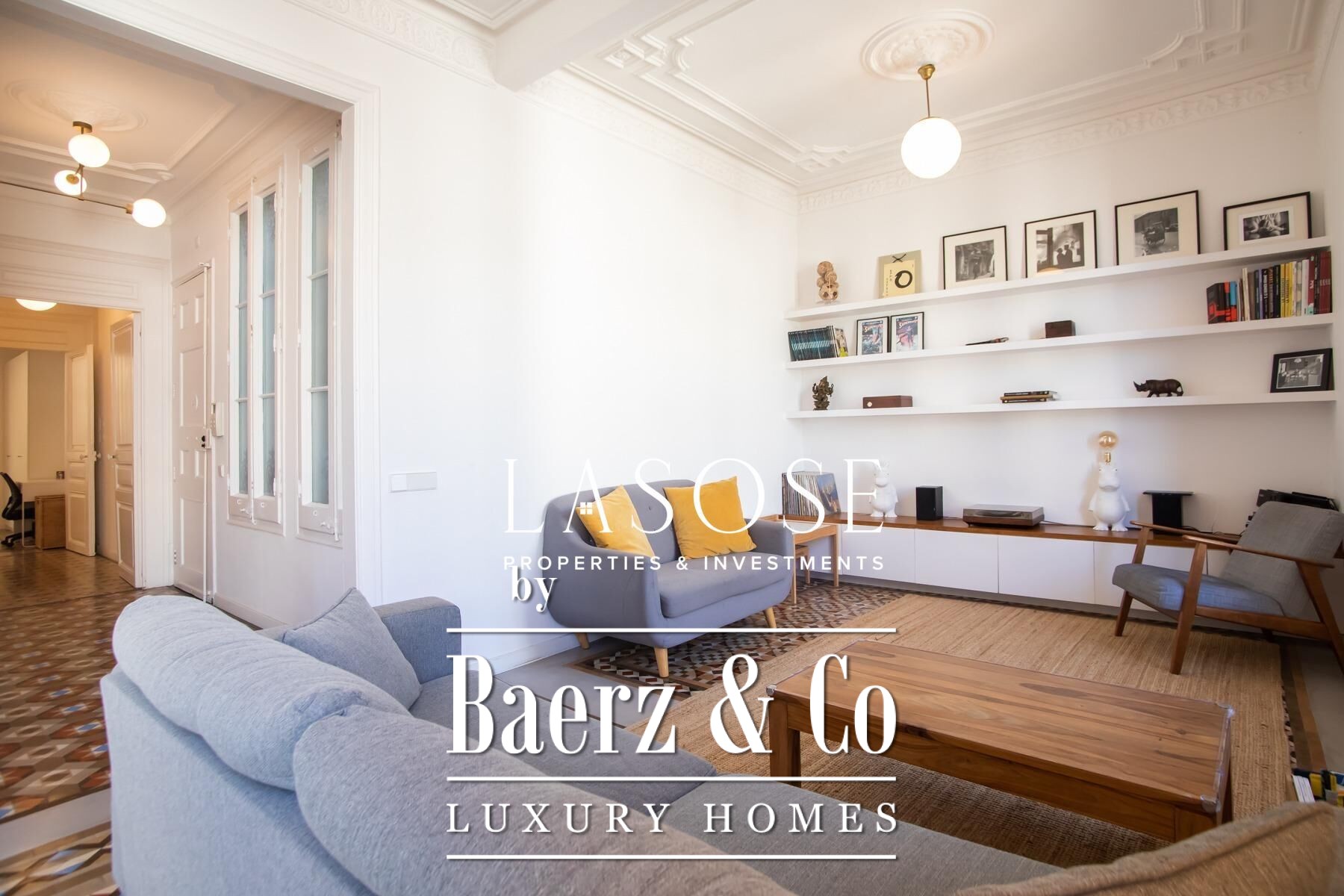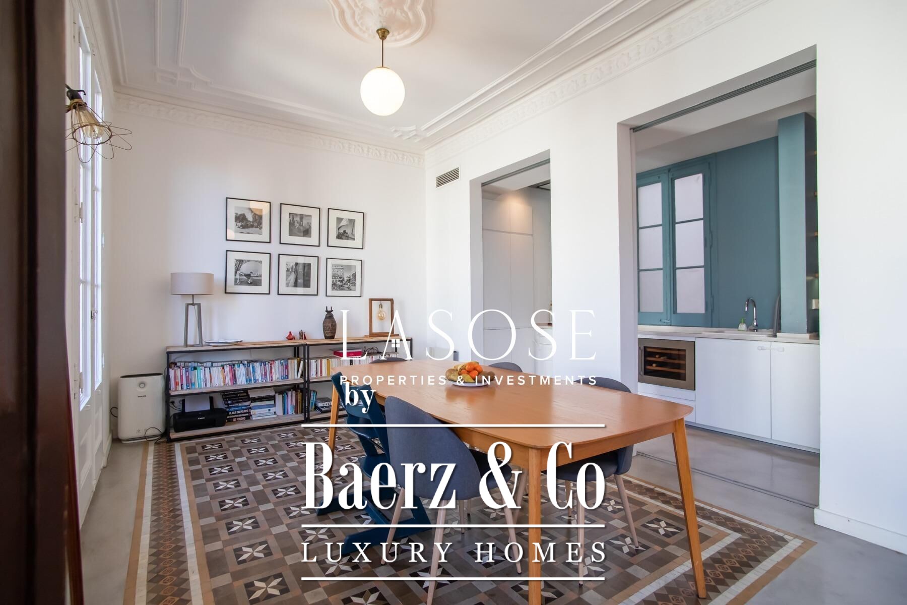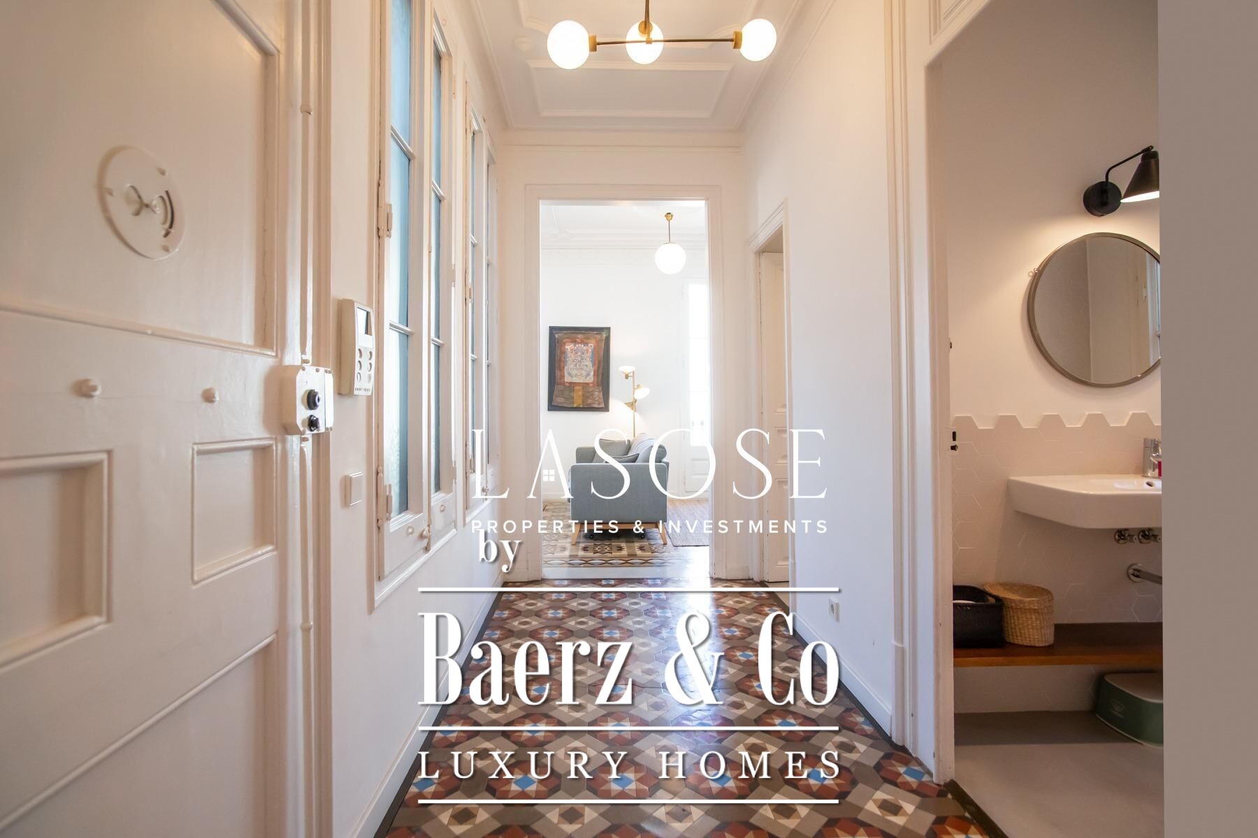 Apartment Barcelona sets a precise tone of heritage and refinement. This 130 m² residence is nestled within a spectacularly listed building that has been meticulously renovated, balancing classic provenance with purposeful contemporary interventions. The property preserves original architectural features—Nolla mosaic floors and coffered ceilings—harmoniously paired with microcement and modern materials, creating spaces that honor both tradition and present-day comfort.