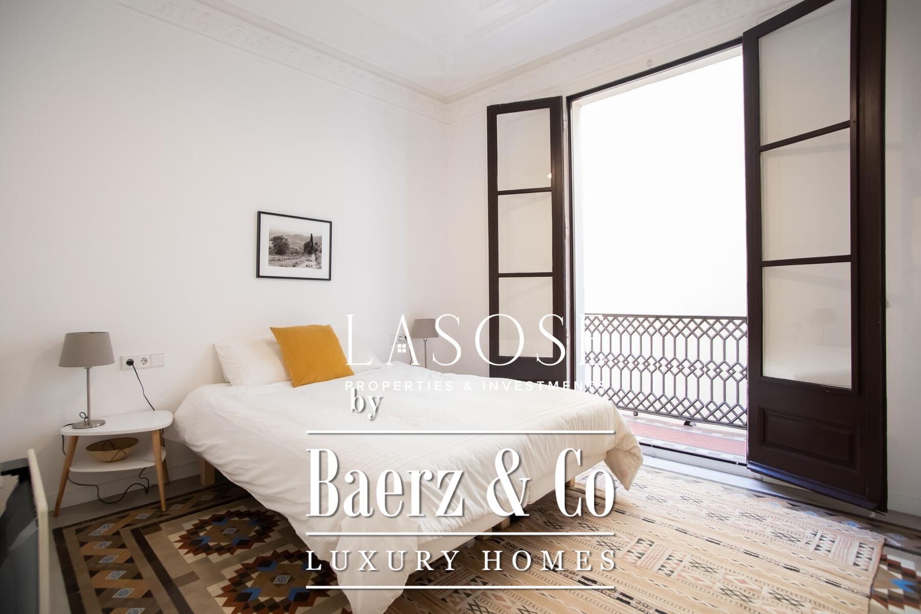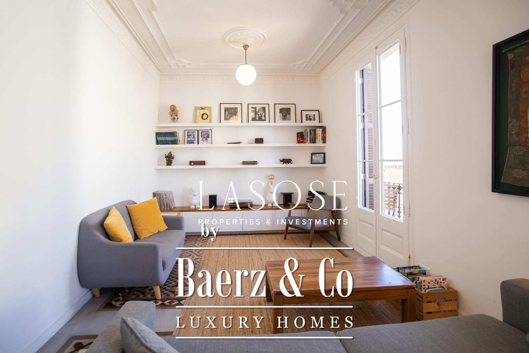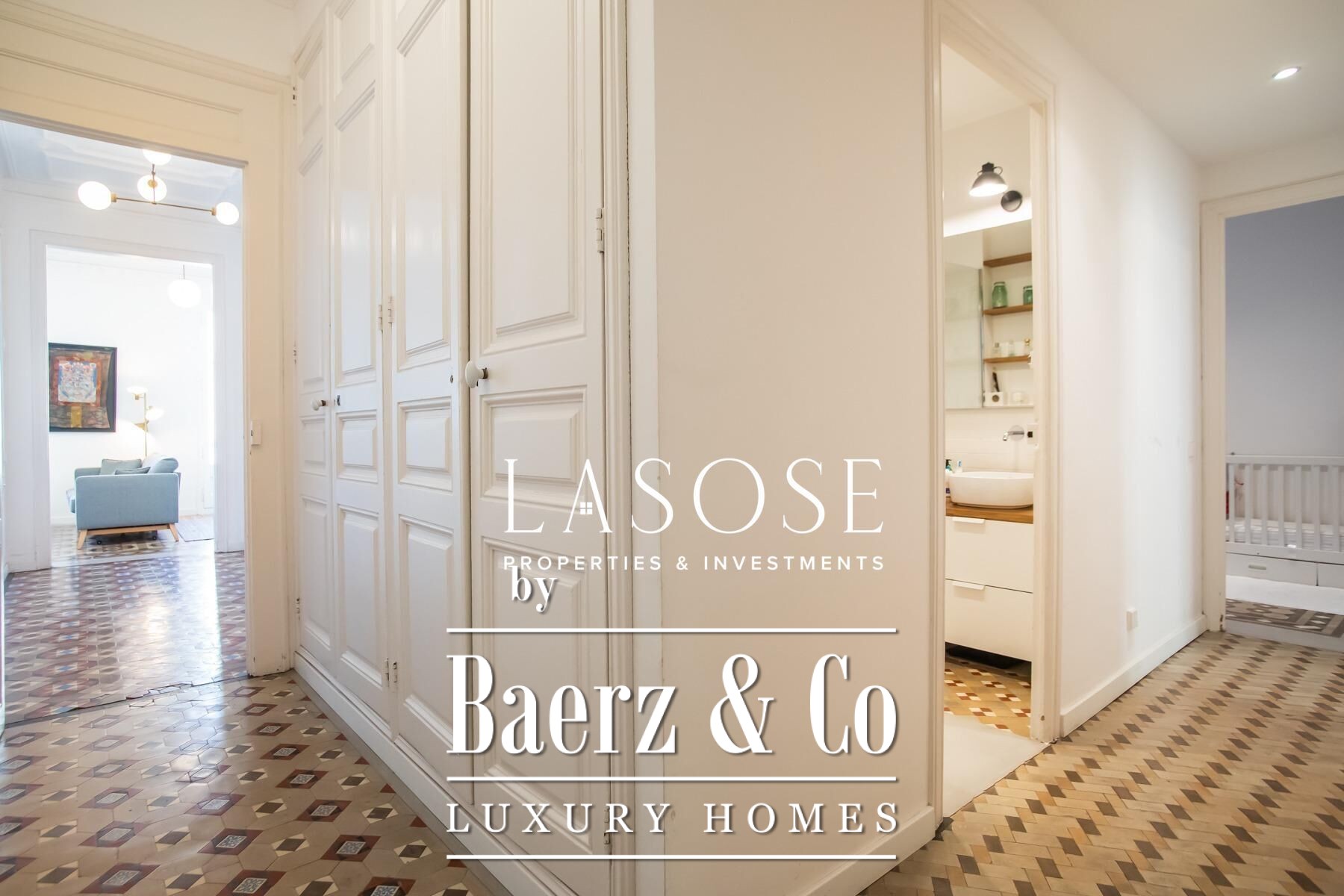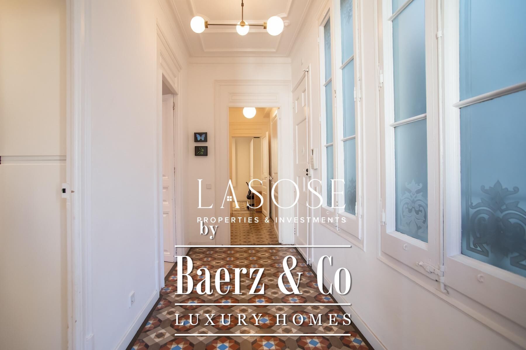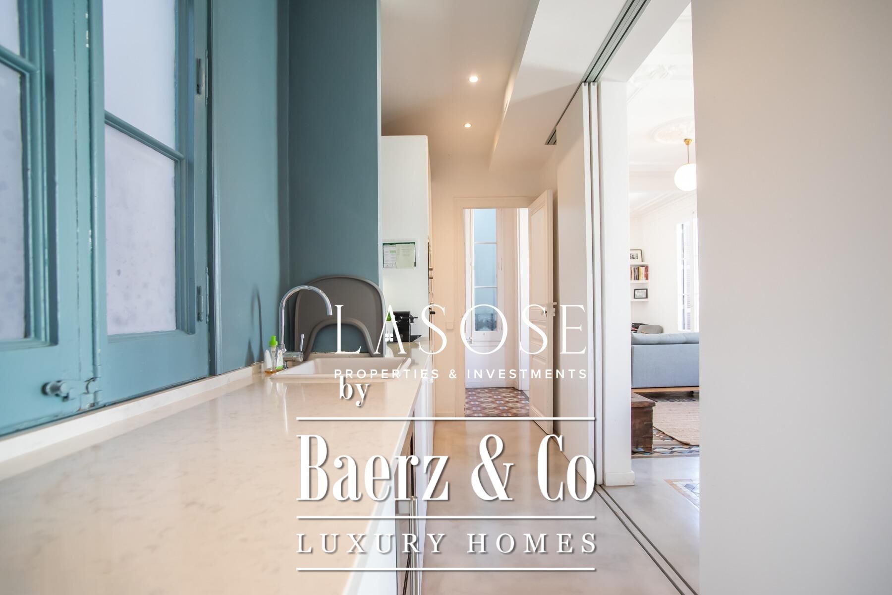 Apartment Barcelona sets a precise tone of heritage and refinement. This 130 m² residence is nestled within a spectacularly listed building that has been meticulously renovated, balancing classic provenance with purposeful contemporary interventions. The property preserves original architectural features—Nolla mosaic floors and coffered ceilings—harmoniously paired with microcement and modern materials, creating spaces that honor both tradition and present-day comfort.