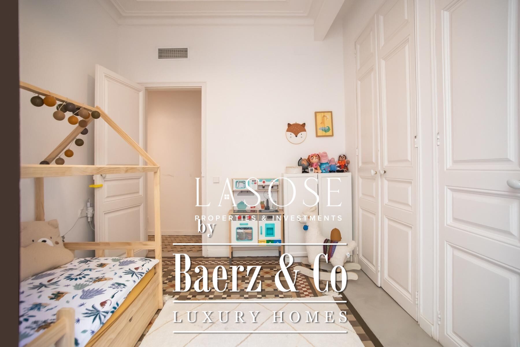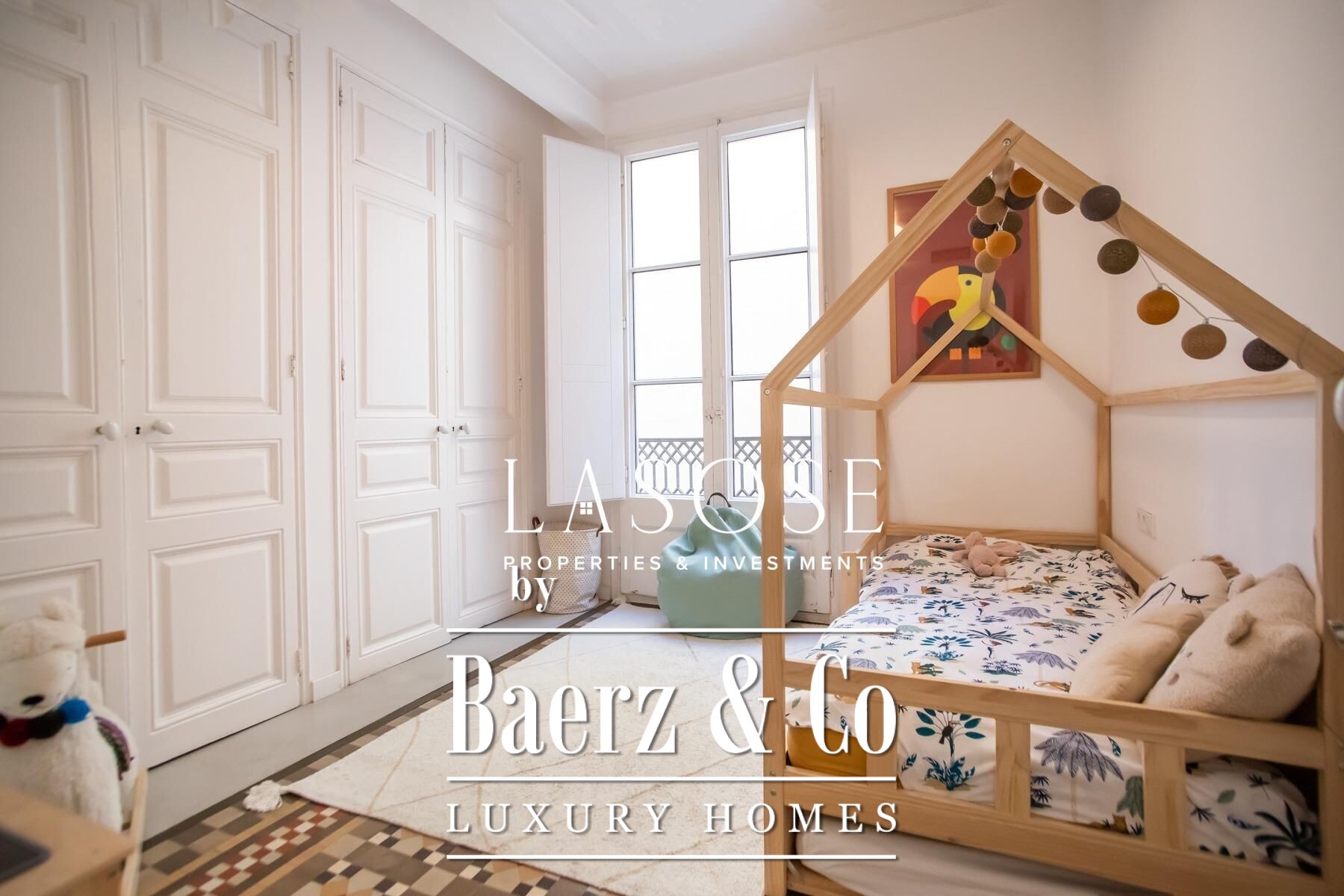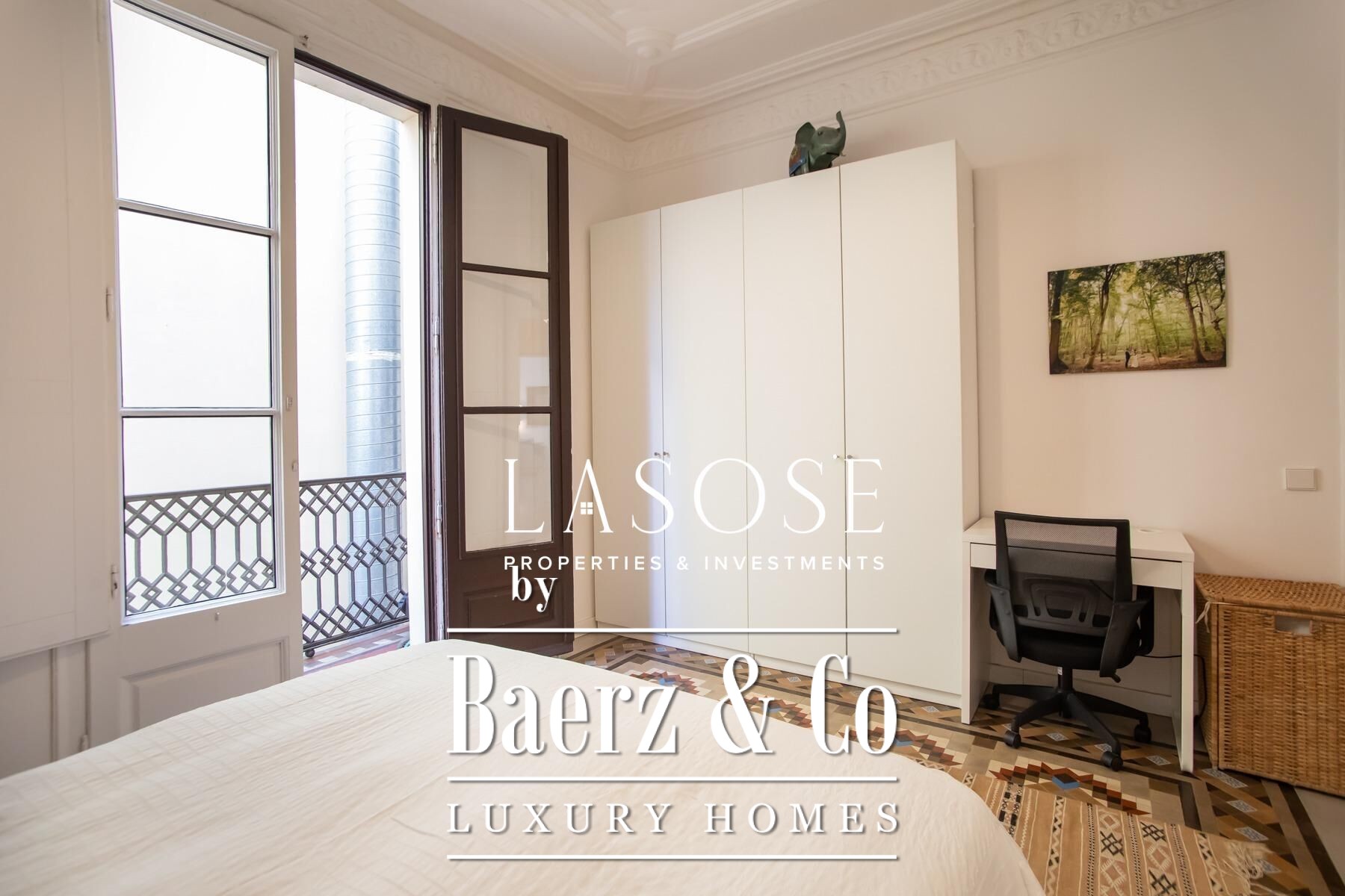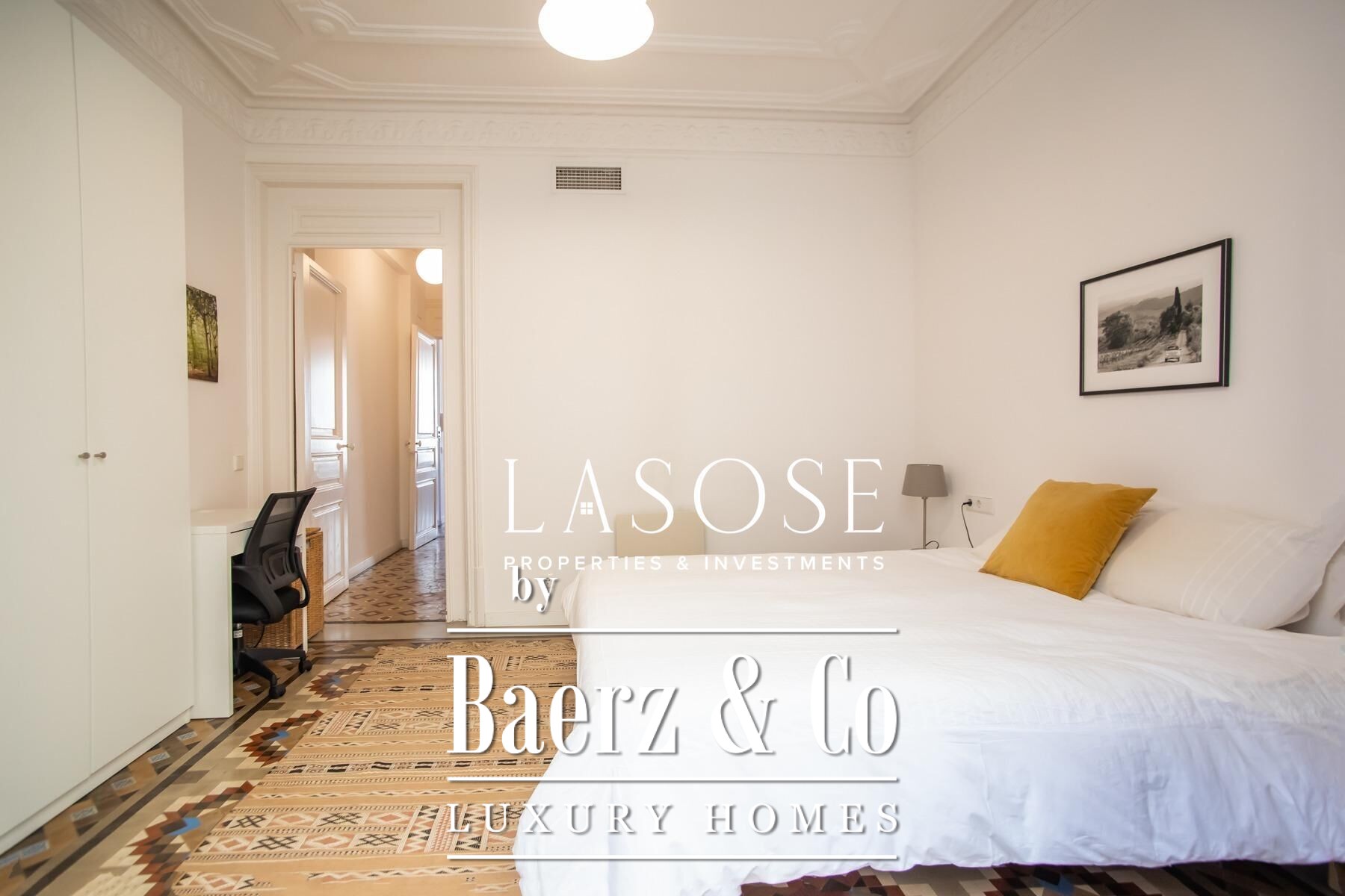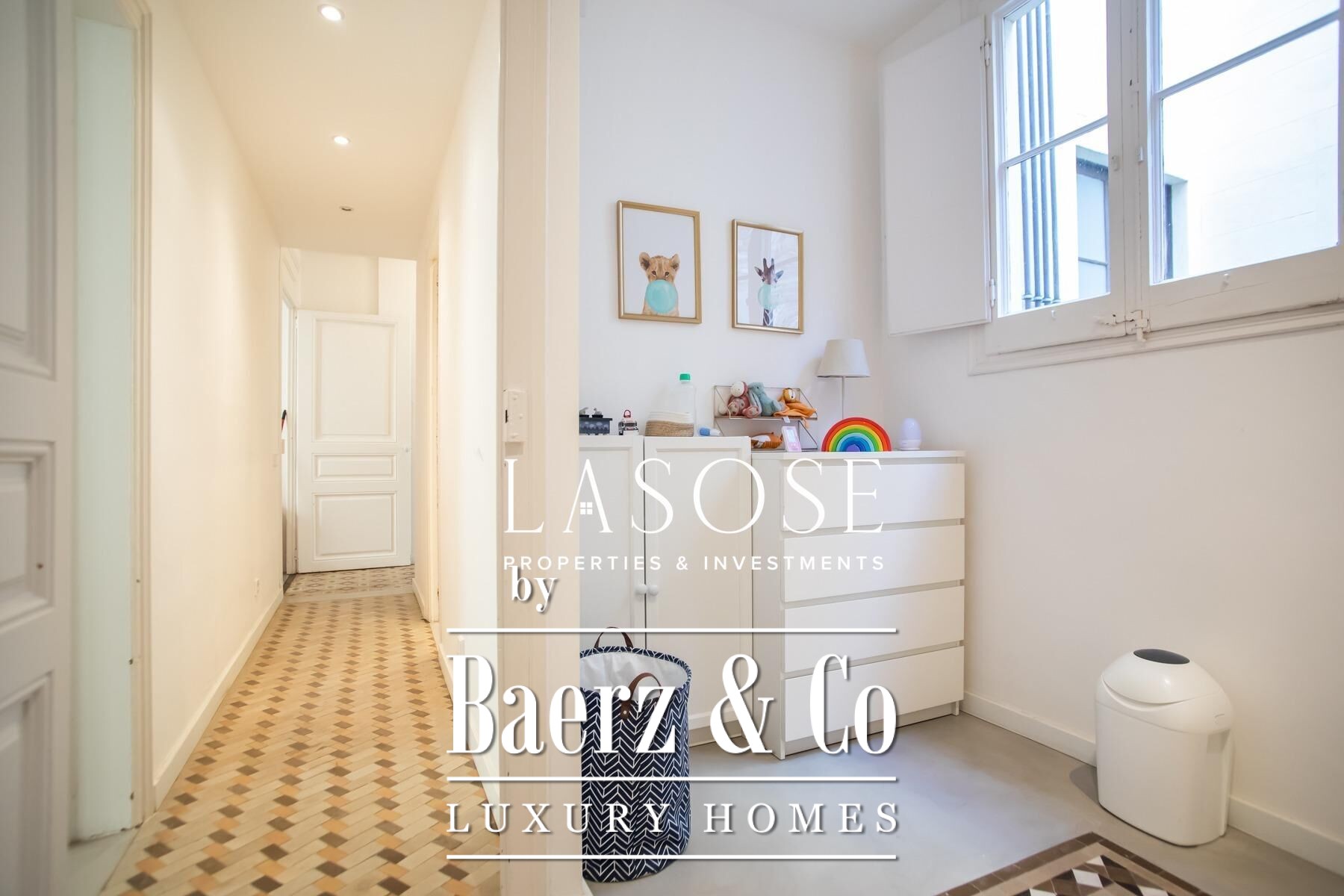 Apartment Barcelona sets a precise tone of heritage and refinement. This 130 m² residence is nestled within a spectacularly listed building that has been meticulously renovated, balancing classic provenance with purposeful contemporary interventions. The property preserves original architectural features—Nolla mosaic floors and coffered ceilings—harmoniously paired with microcement and modern materials, creating spaces that honor both tradition and present-day comfort.