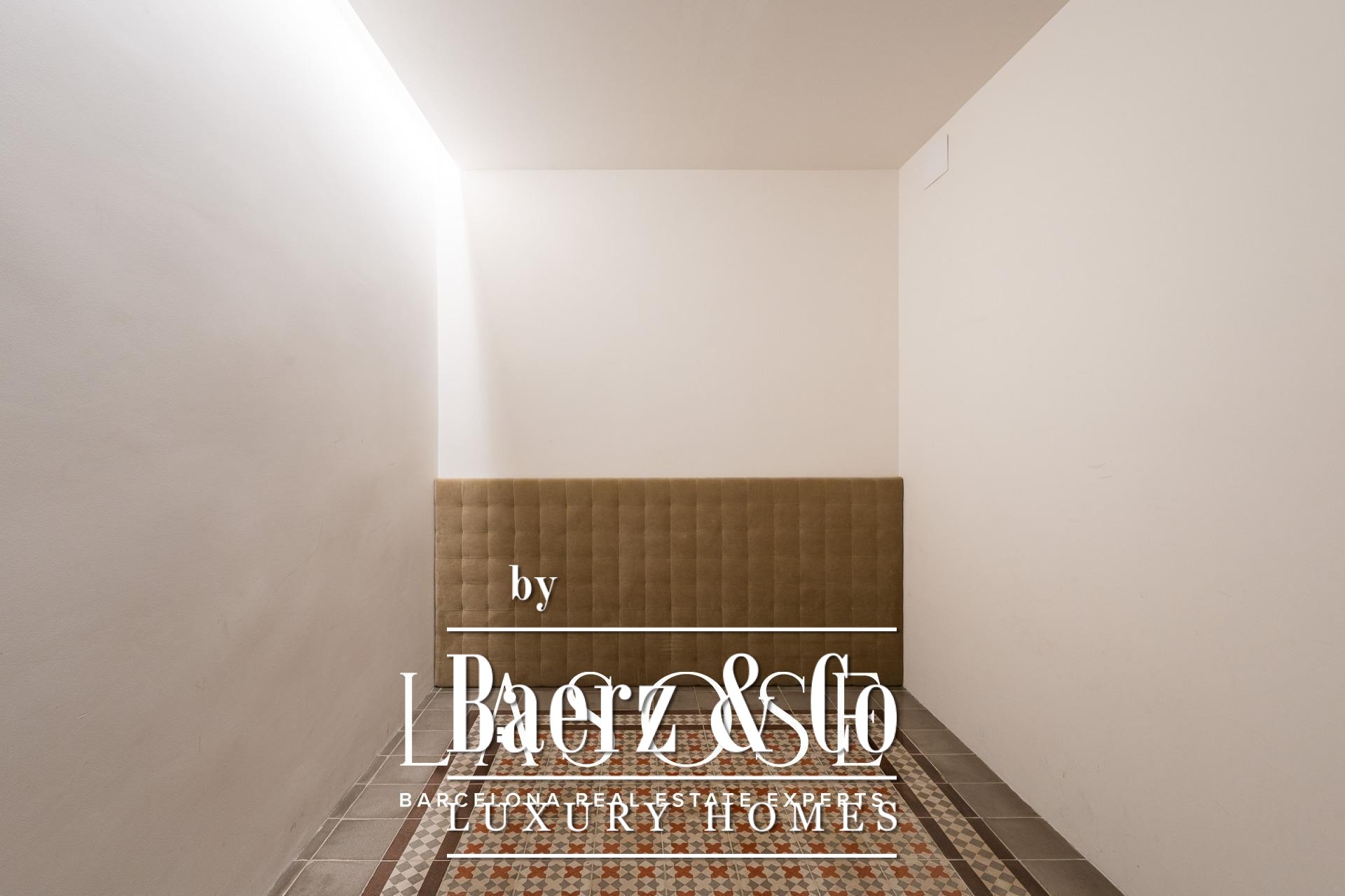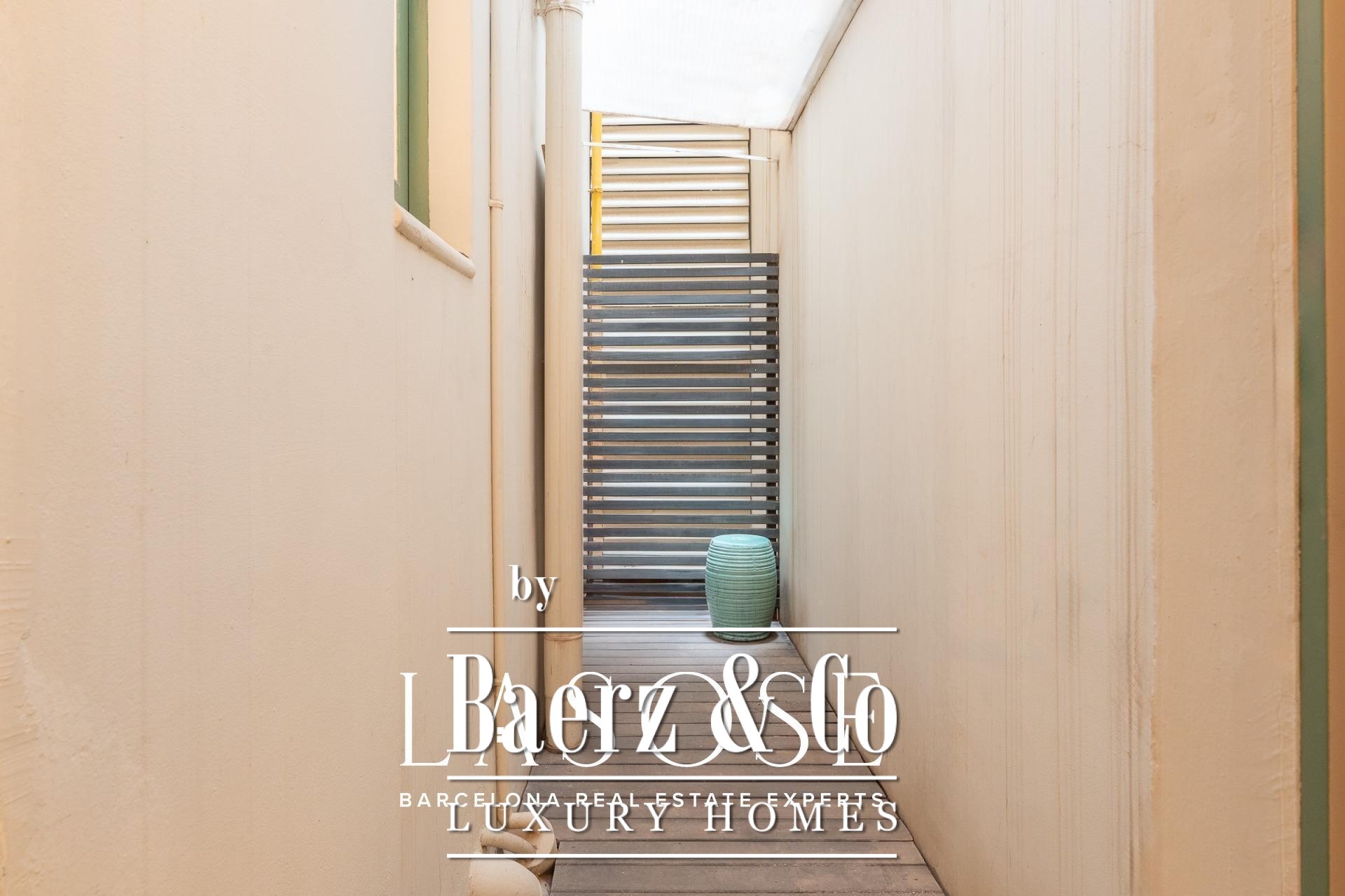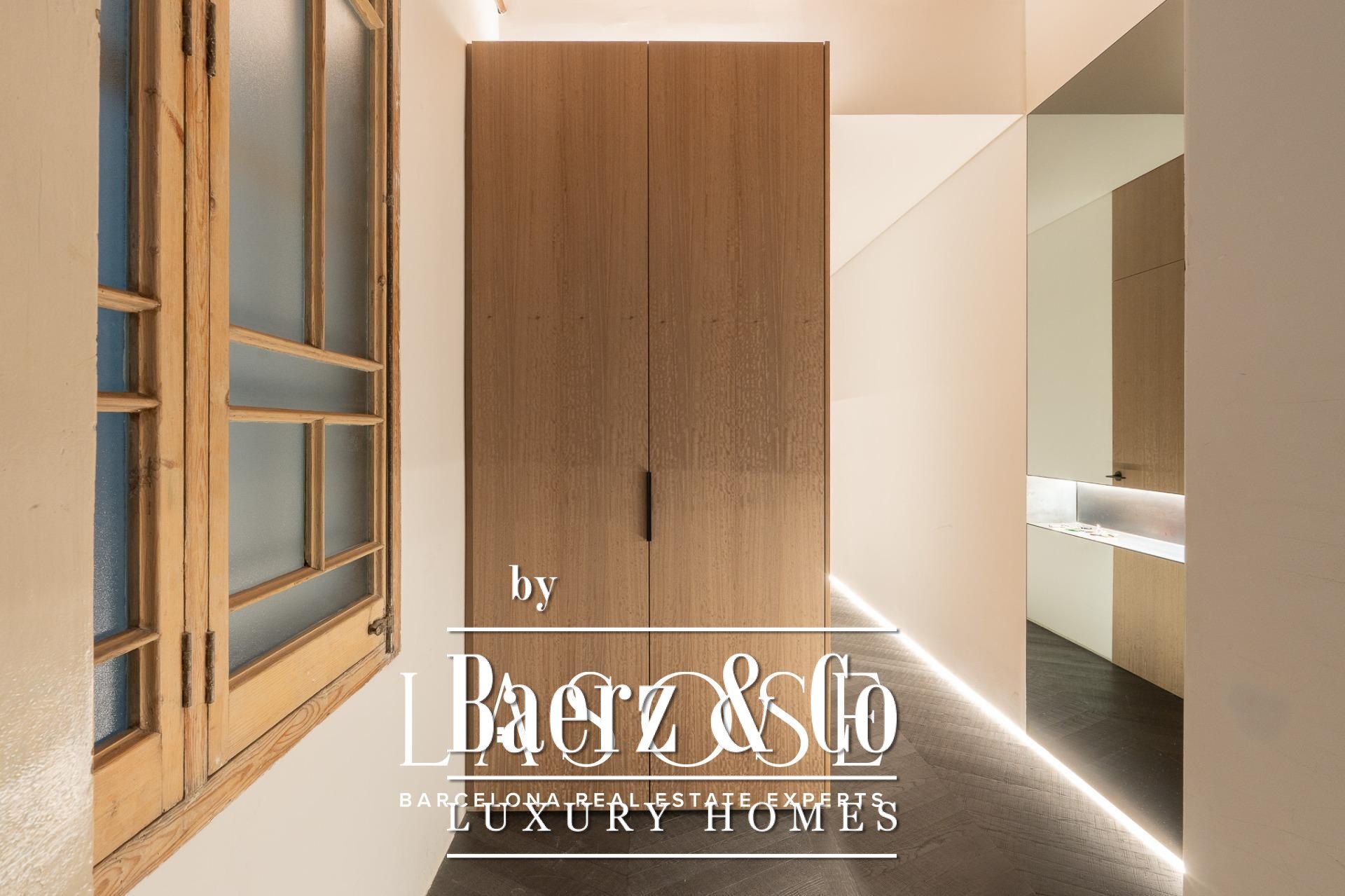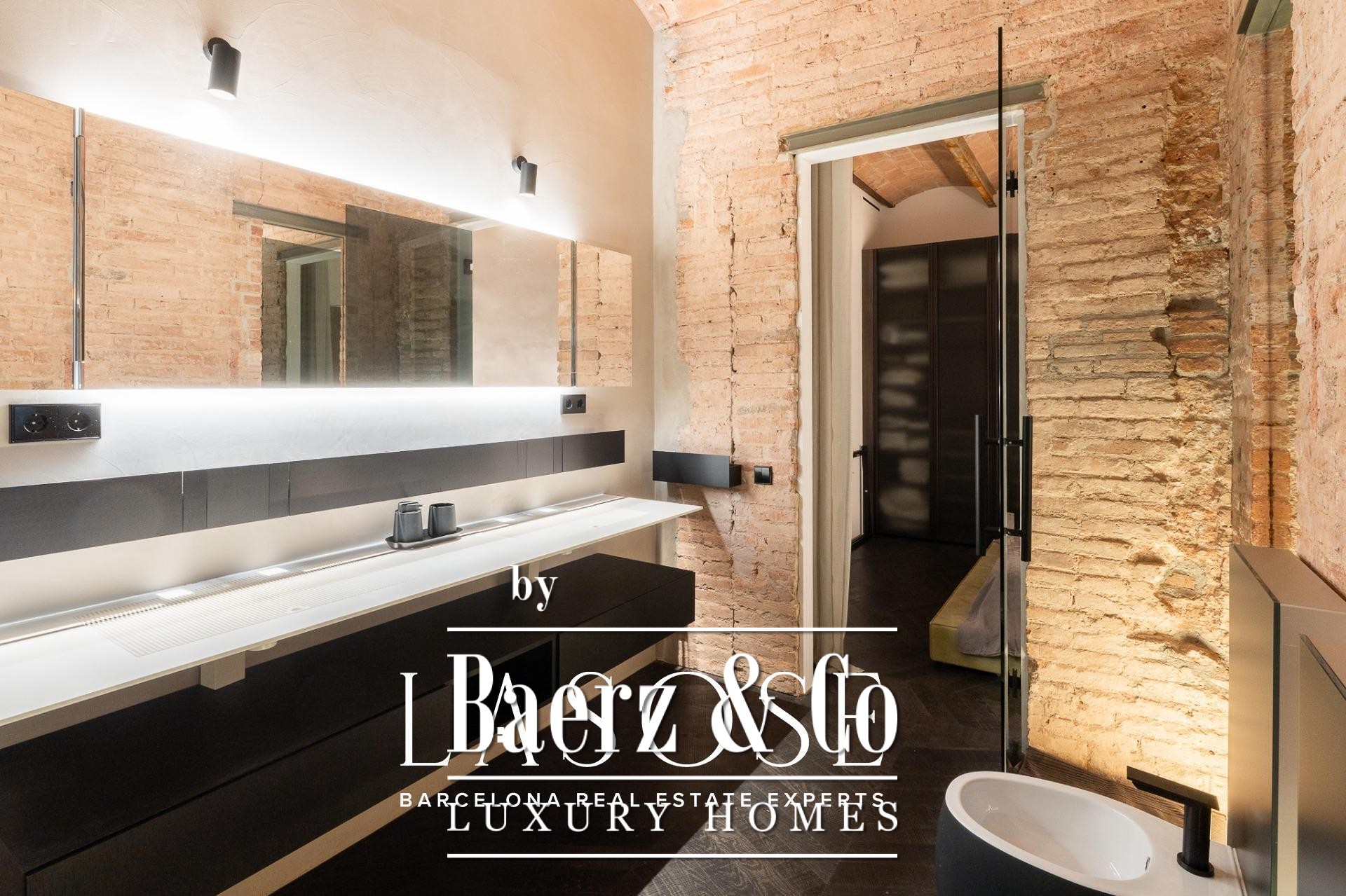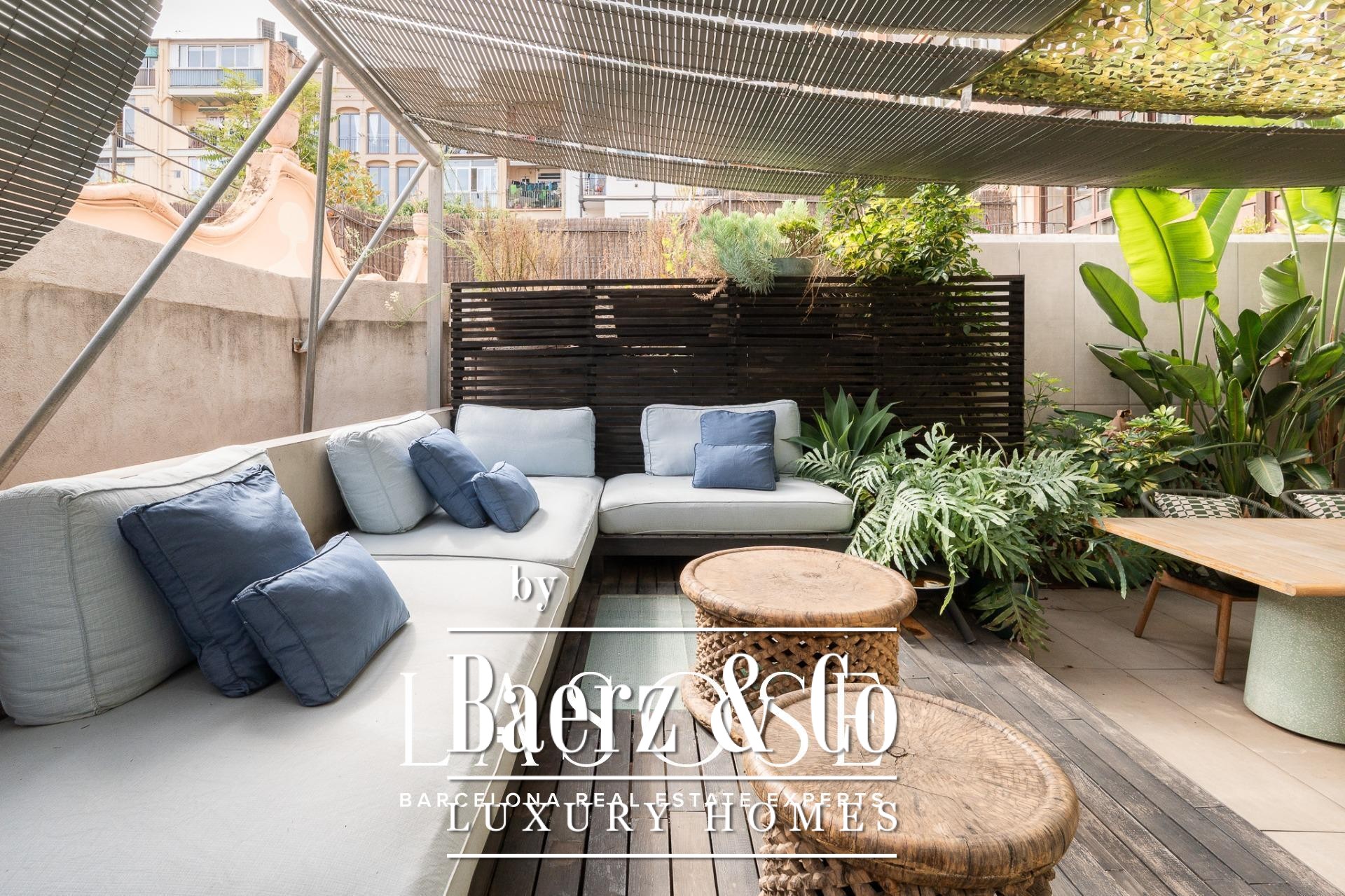 Exclusive luxury property located in a finca regia in the very heart of Eixample, featuring a wonderful 60 sqm decked terrace – a true private oasis in the city centre.. . This 120 sqm apartment has been designed as a unique piece by a renowned interior designer, who has created an authentic haven of peace and harmony. The property is offered with high-end designer furniture and carefully selected pieces, which can remain in the apartment if the buyer wishes. In addition, it has excellent investment potential, as it can be rented out for €4,500 per month.. . The layout is very intuitive and functional. Upon entering, we find the night area, composed of two spacious double bedrooms and two bathrooms. The master suite retains its original vaulted ceilings and connects to an en-suite bathroom that masterfully combines period details with modern, exclusive design. The second double bedroom opens onto an interior patio through glass doors and is conveniently located next to a second independent bathroom.. . The day area consists of a large living-dining