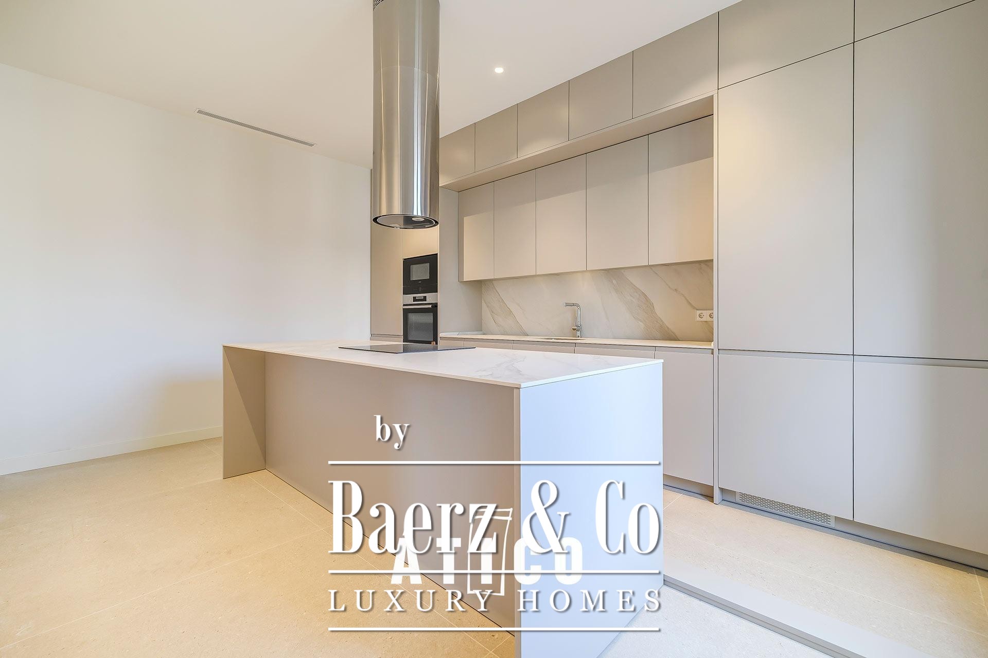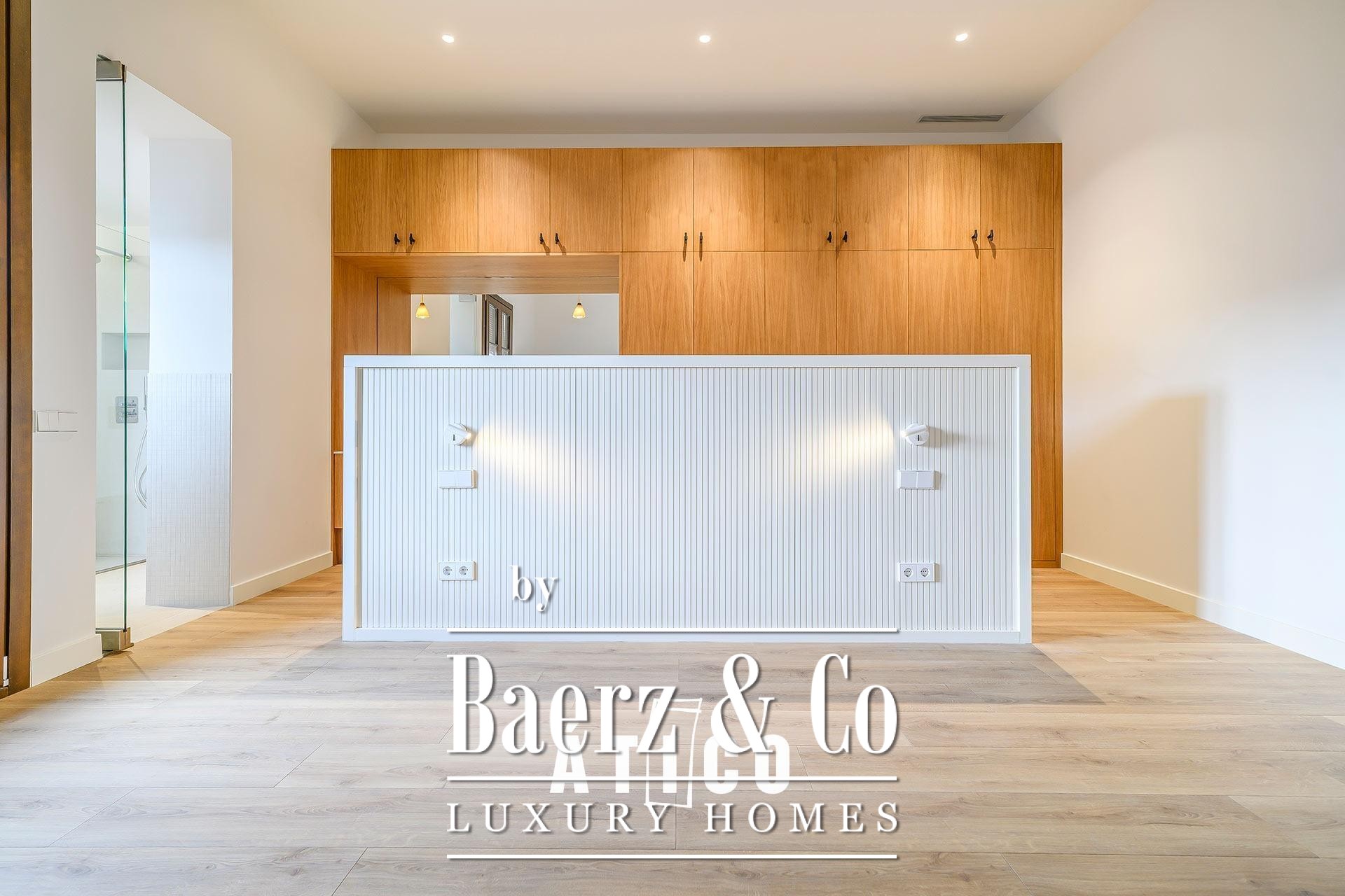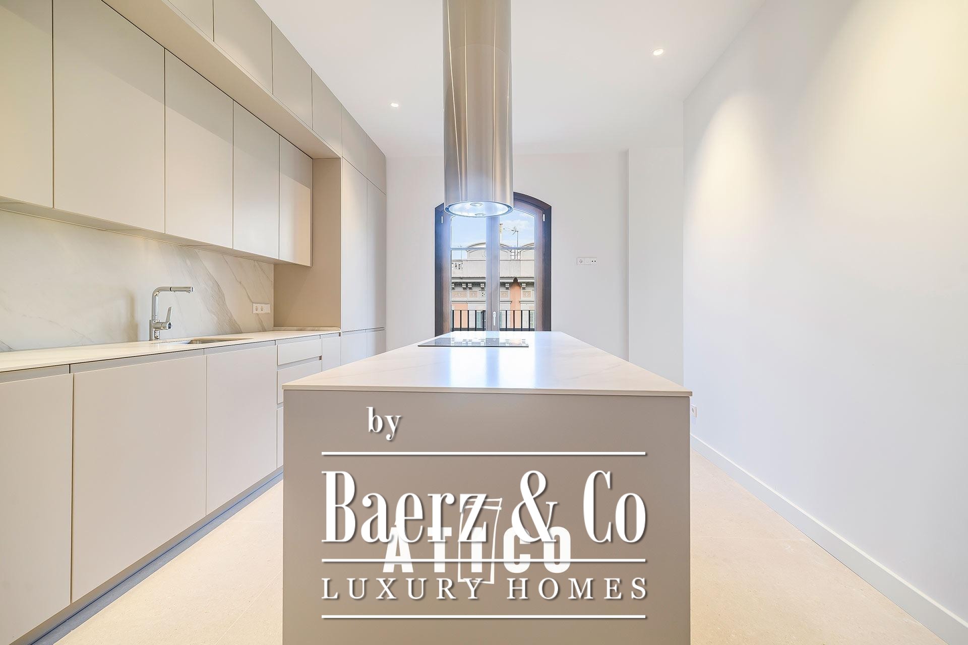 The upper floor features a bedroom, a versatile multipurpose room suited for work or leisure, and a full bathroom. A 38.85 m² terrace extends living outdoors, tailored for open-air gatherings or quiet moments under the sky above the city. Three bedrooms and three bathrooms offer a balanced sense of comfort and solitude, while thoughtful materials and immaculate finishes speak to the level of craftsmanship seen throughout. The kitchen is equally considered, providing ample storage and a measured approach to daily living.