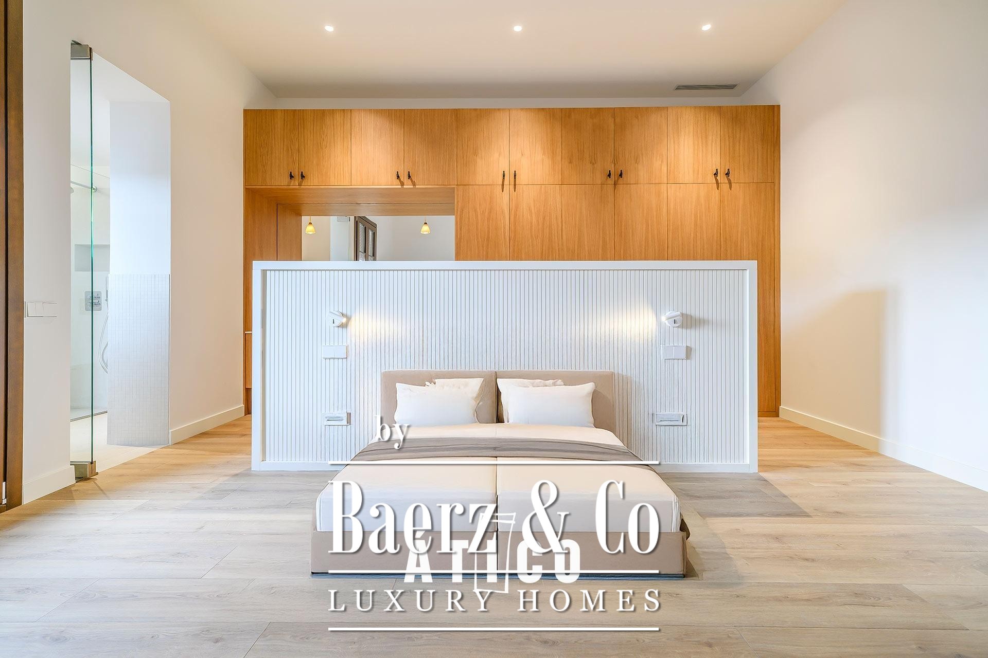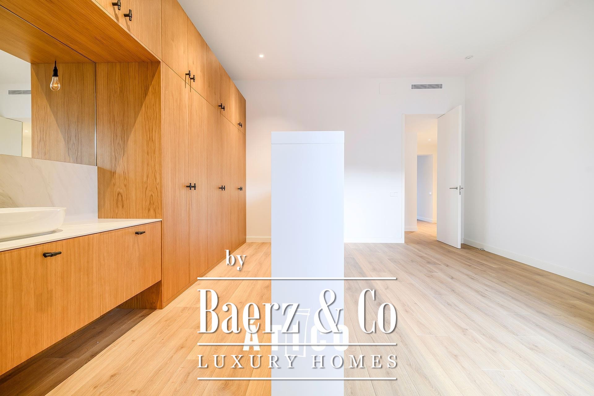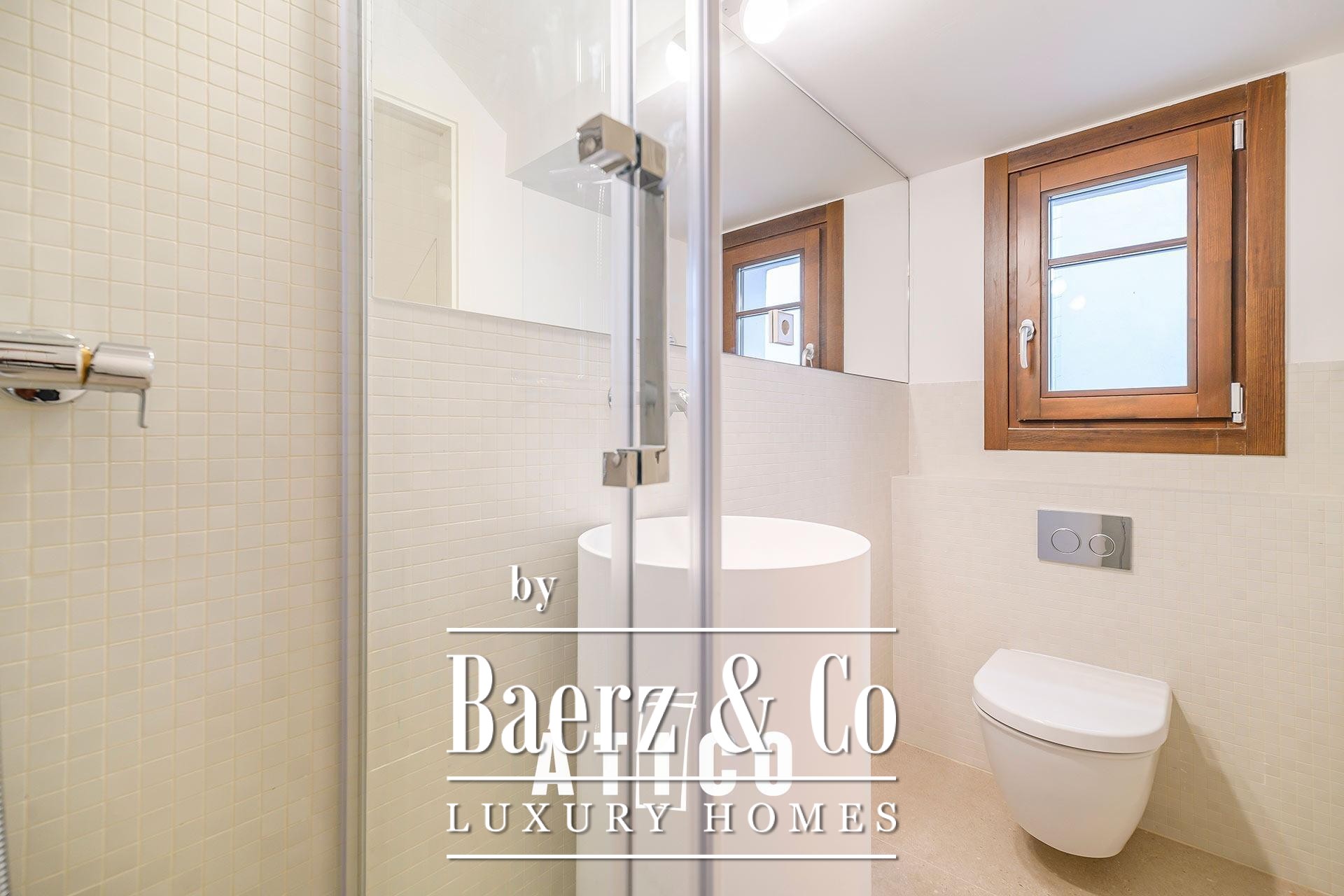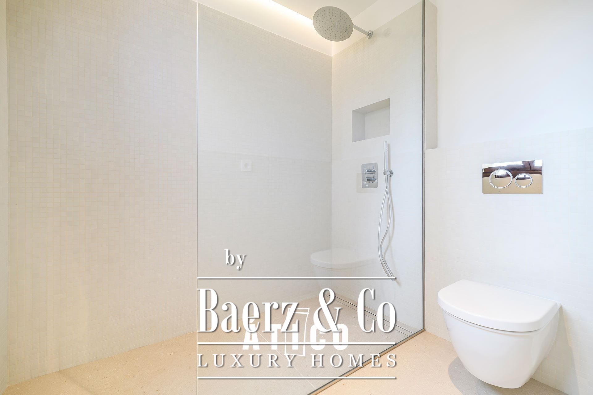 The upper floor features a bedroom, a versatile multipurpose room suited for work or leisure, and a full bathroom. A 38.85 m² terrace extends living outdoors, tailored for open-air gatherings or quiet moments under the sky above the city. Three bedrooms and three bathrooms offer a balanced sense of comfort and solitude, while thoughtful materials and immaculate finishes speak to the level of craftsmanship seen throughout. The kitchen is equally considered, providing ample storage and a measured approach to daily living.