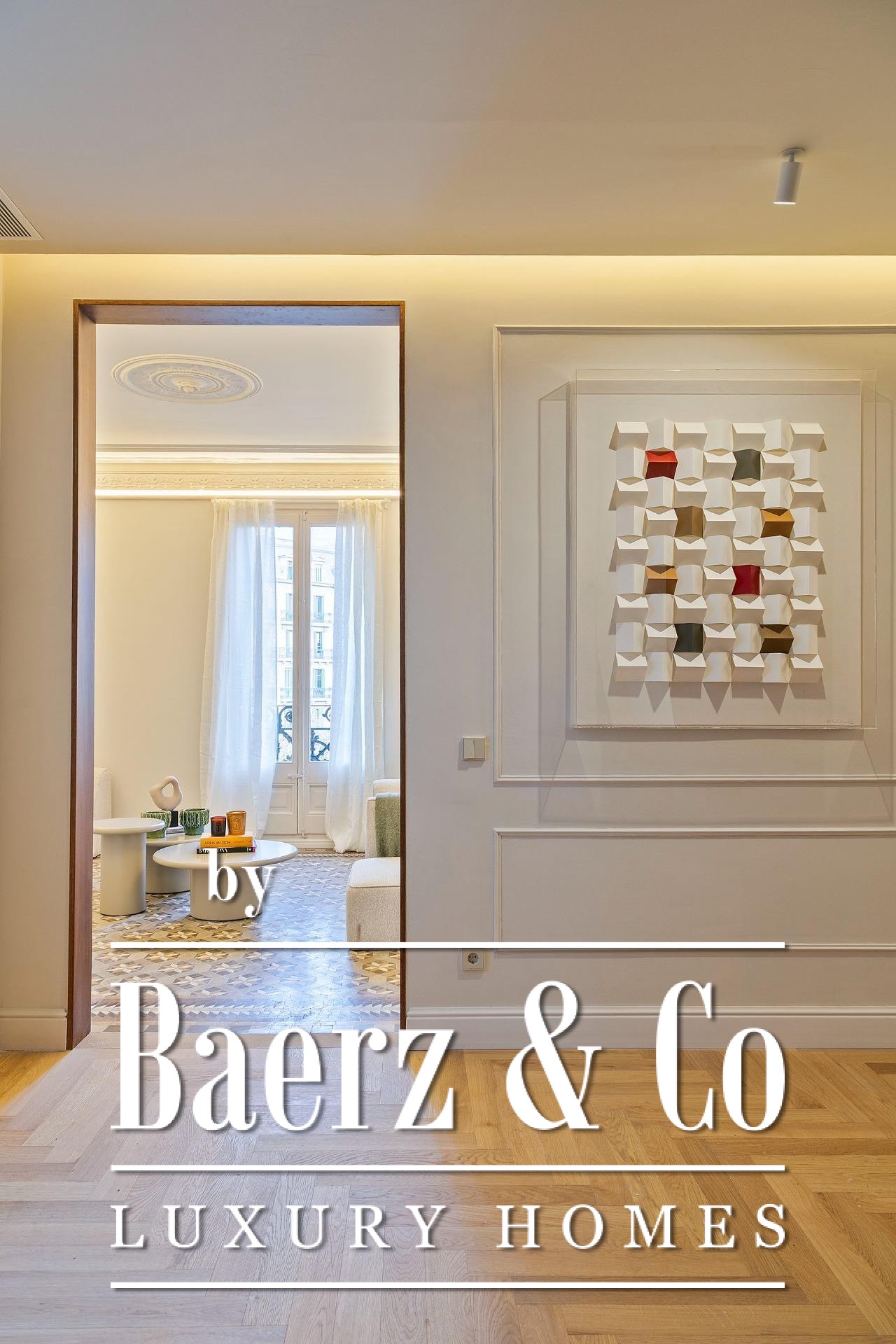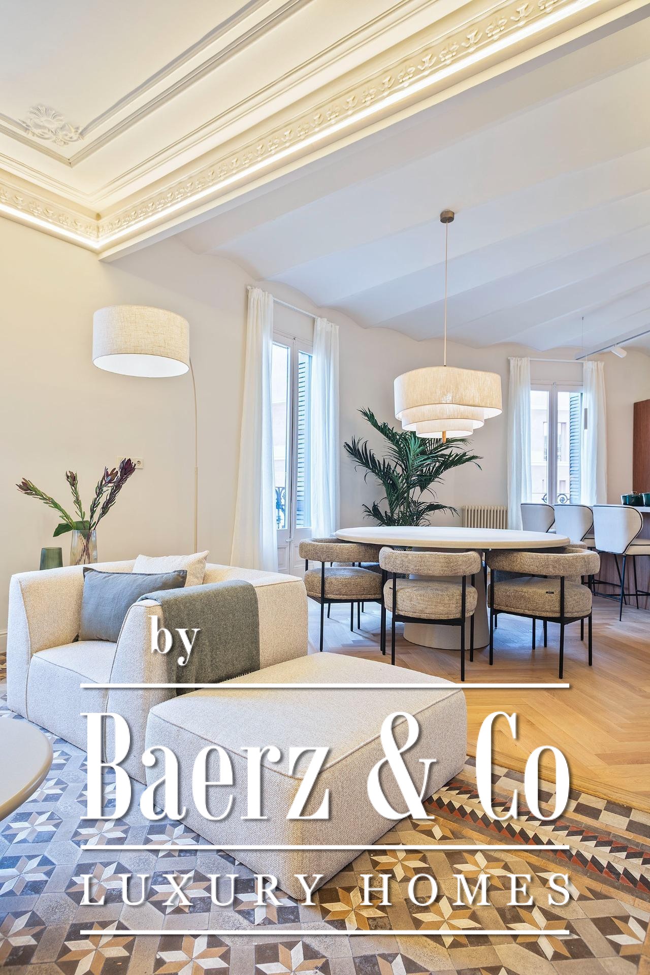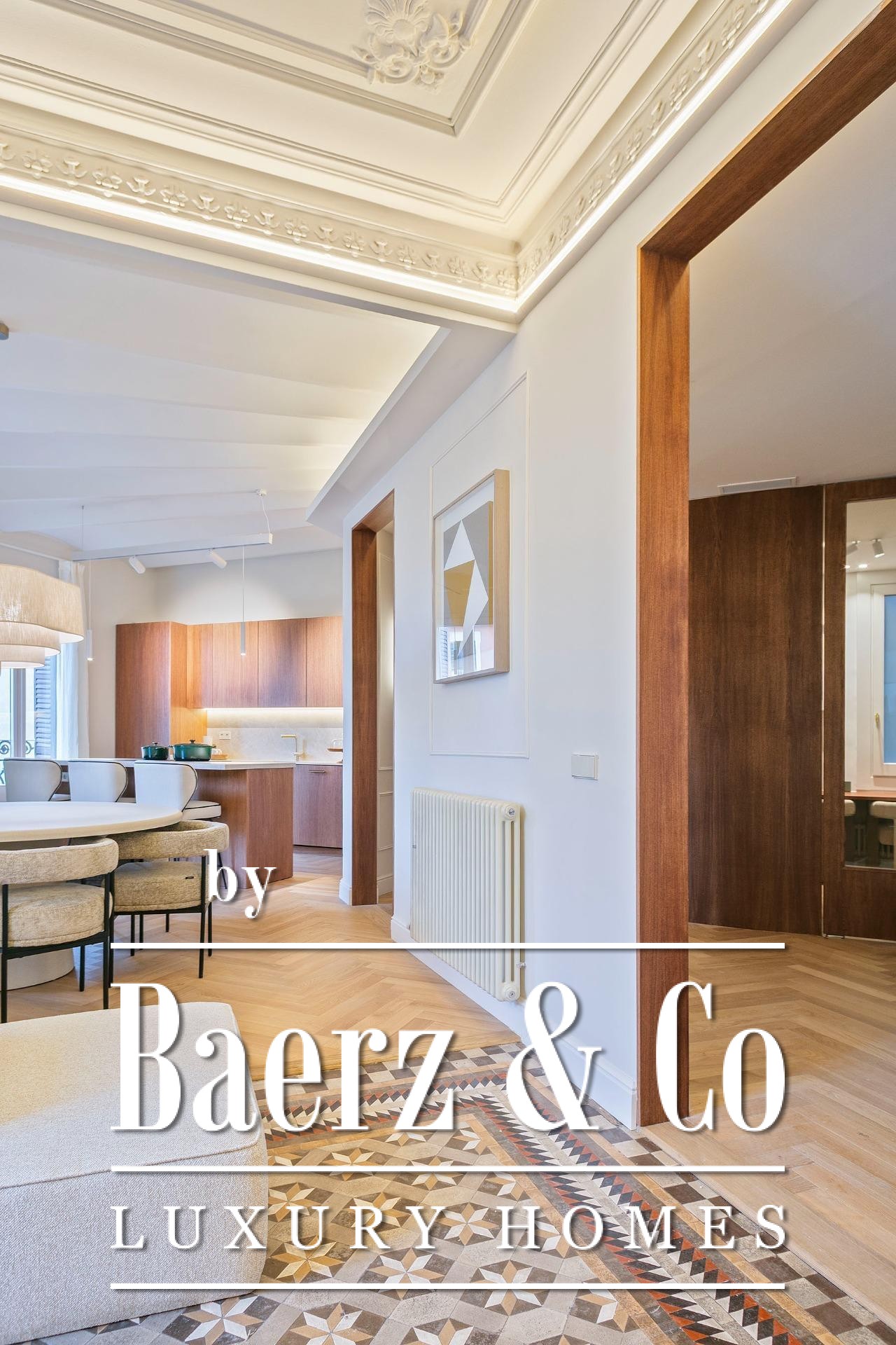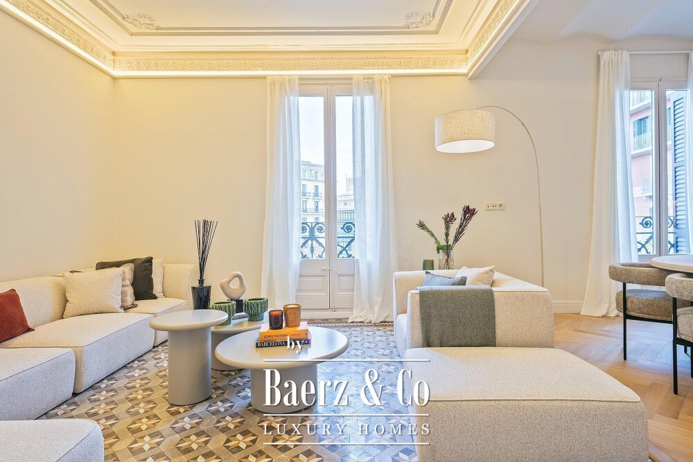 Luxury apartment Barcelona offers an exclusive living experience, defined by its location on a corner with a chamfered façade. This architectural hallmark brings in maximum natural light, a rare attribute ensuring brightness, spatial clarity, and lasting comfort. Every room of the 183 m² apartment is exterior-facing, cultivating a sense of well-being and a unique connection with the city.