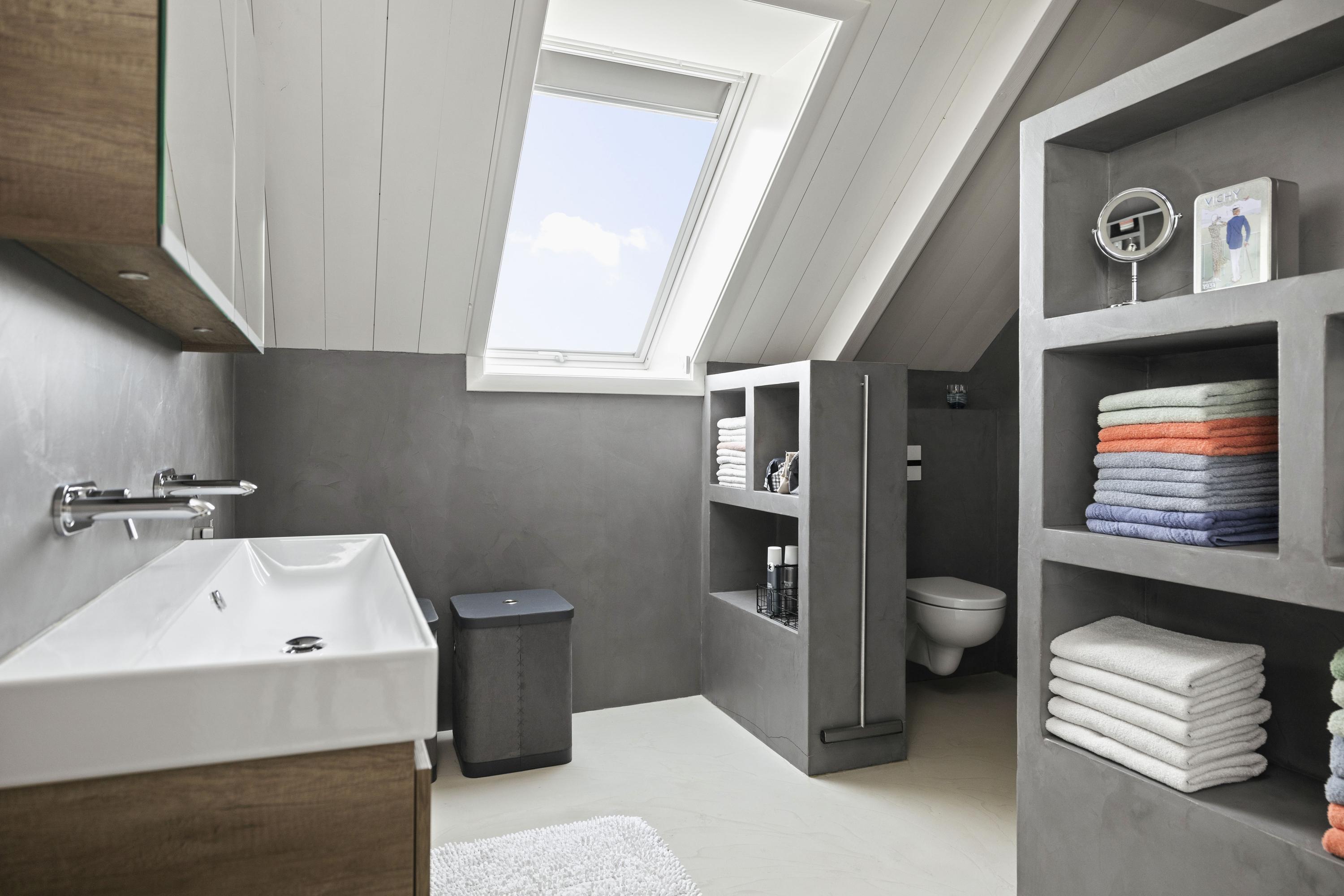 Upstairs is a spacious landing with plenty of storage space and two lovely bedrooms, also with plenty of storage space and each with its own bathroom. The walls with concrete Ciré give the rooms a chic and contemporary look. Both bathrooms have a spacious walk-in shower, toilets with Wisa non-touch flushing system and washbasin (Grohe Sphinx).