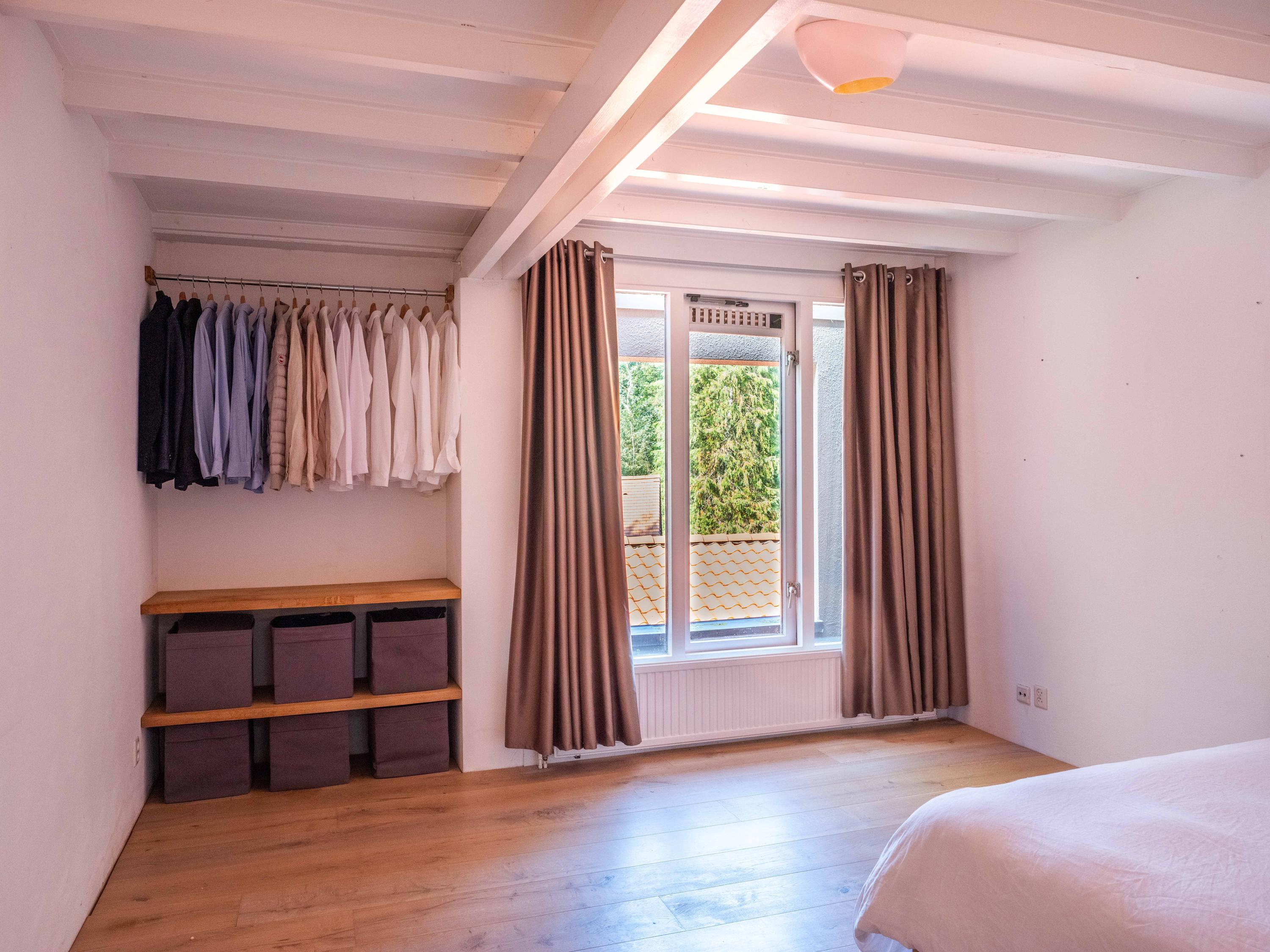 The modern open kitchen has an island where you can sit together. From here again a beautiful view of the greenery.French doors and a covered heated terrace bring the outside in.The kitchen is equipped with various appliances including a quooker, refrigerator, freezer, steam oven, wine cooler, warming drawer and dishwasher. Cooking is available on the large stove with 4 gas burners, a teppanyaki plate, deep fryer and double oven.