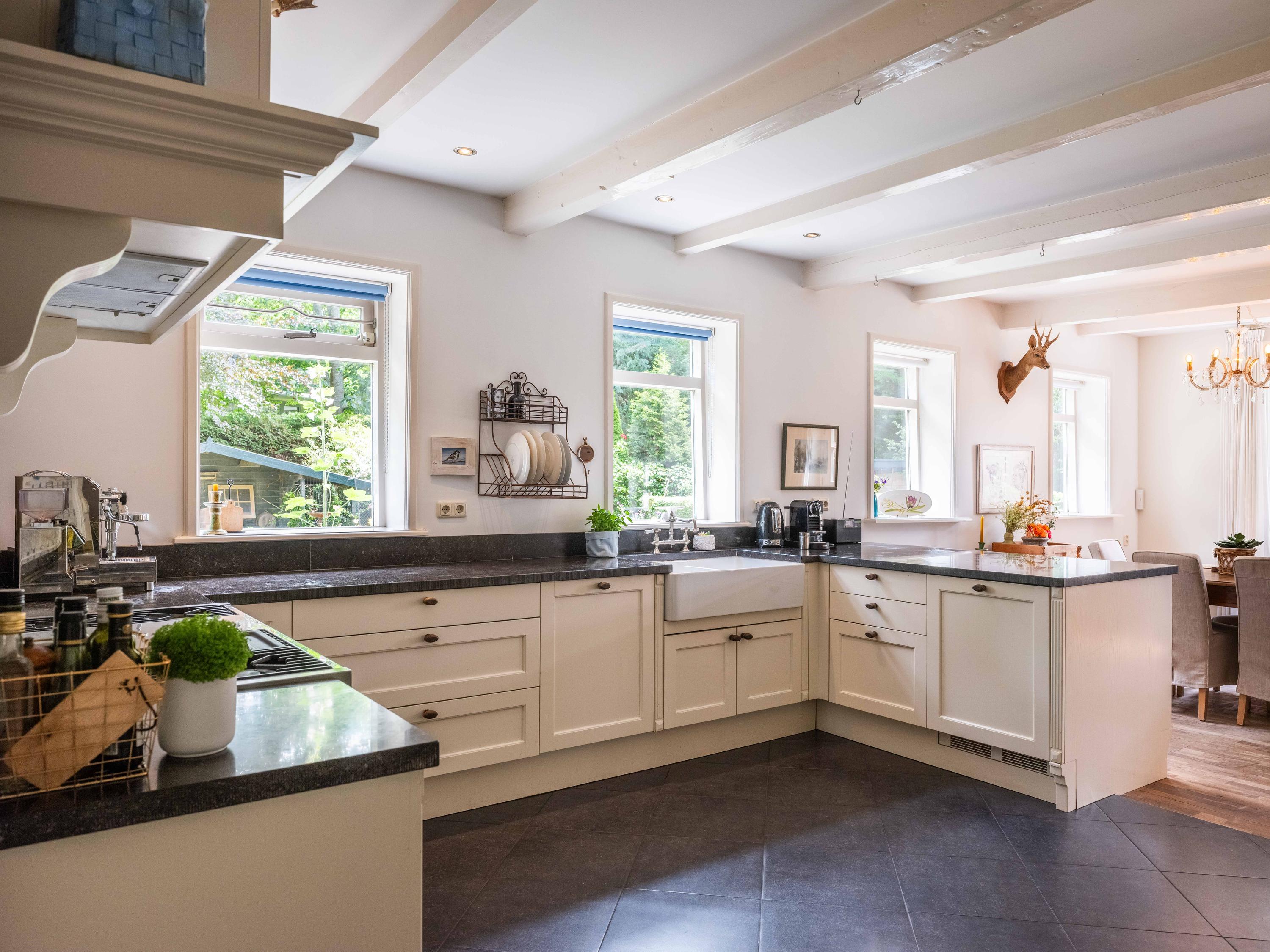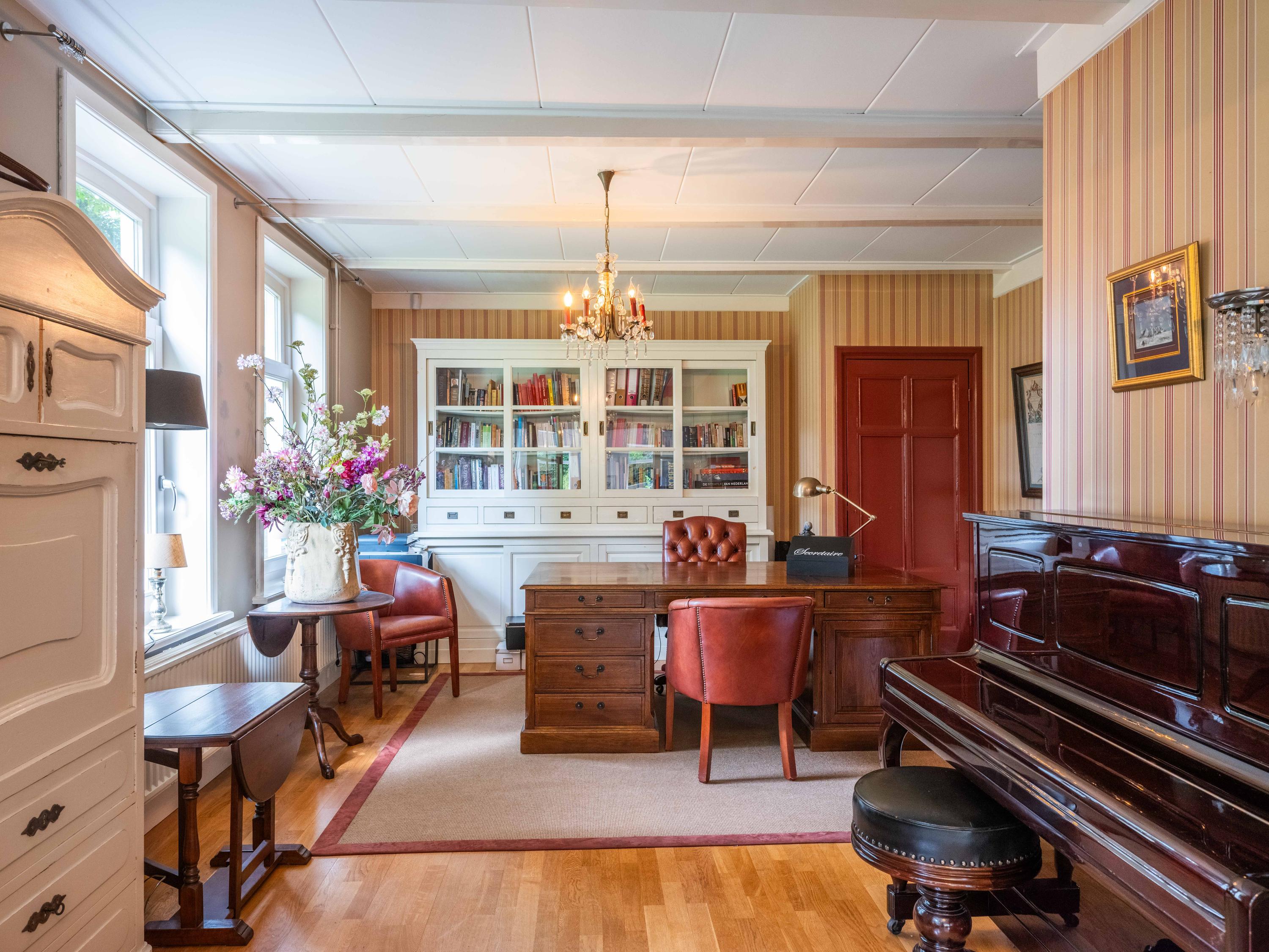 Beyond the main house, a holiday cottage stands behind the farmhouse, with a heated veranda, living area, open kitchen, three bedrooms and a private garden, creating opportunity for refined guest stays or rental income. Throughout, insulation, partial underfloor heating, natural ventilation and security reinforce daily comfort. A substantial wooden garage accommodates multiple cars, and sweeping lawns, terraces, and a greenhouse evoke a careful balance of form and rural tradition. This farmhouse Bergen Centre offers a rare equilibrium of history and present, privacy and village immediacy.