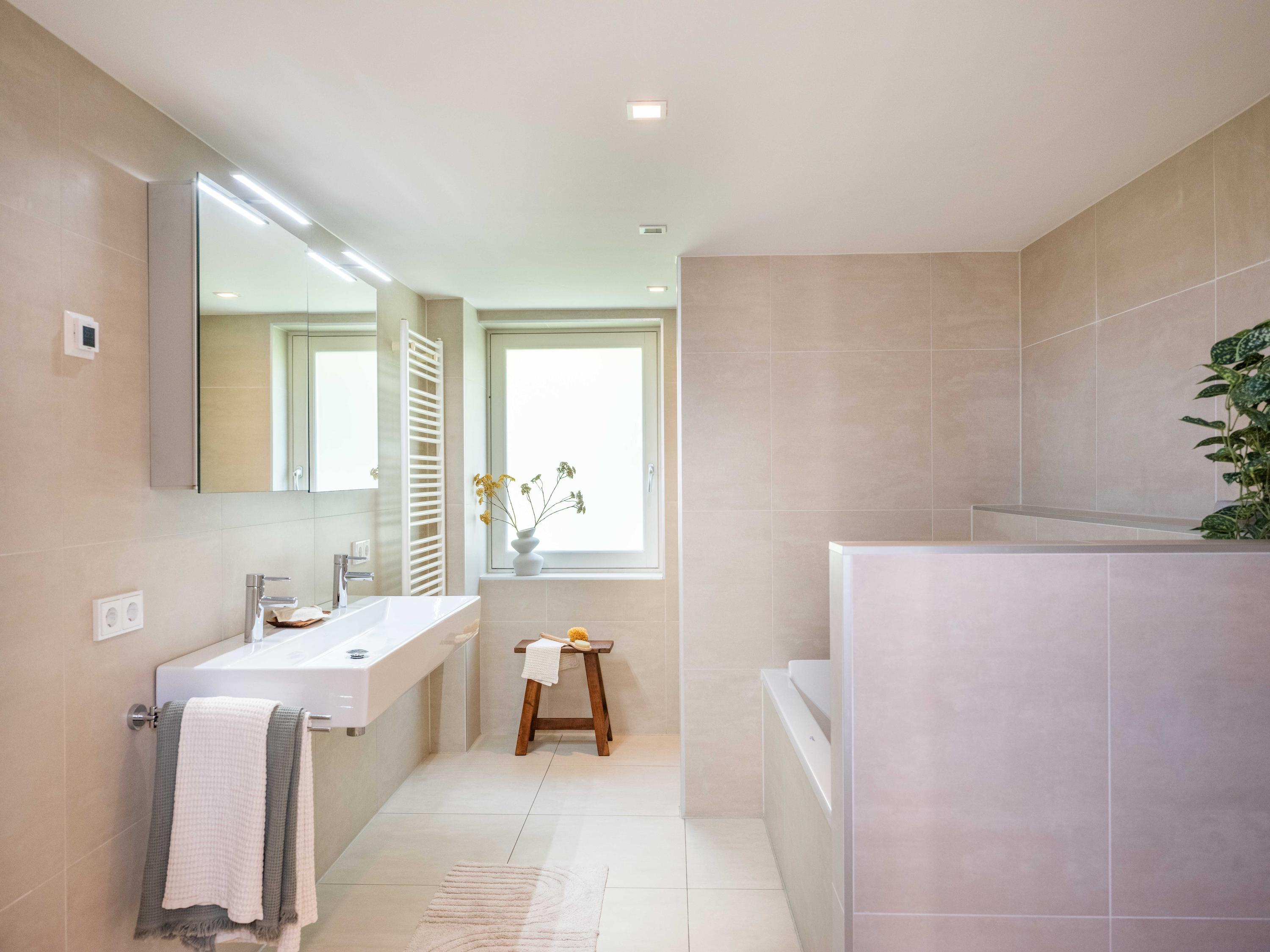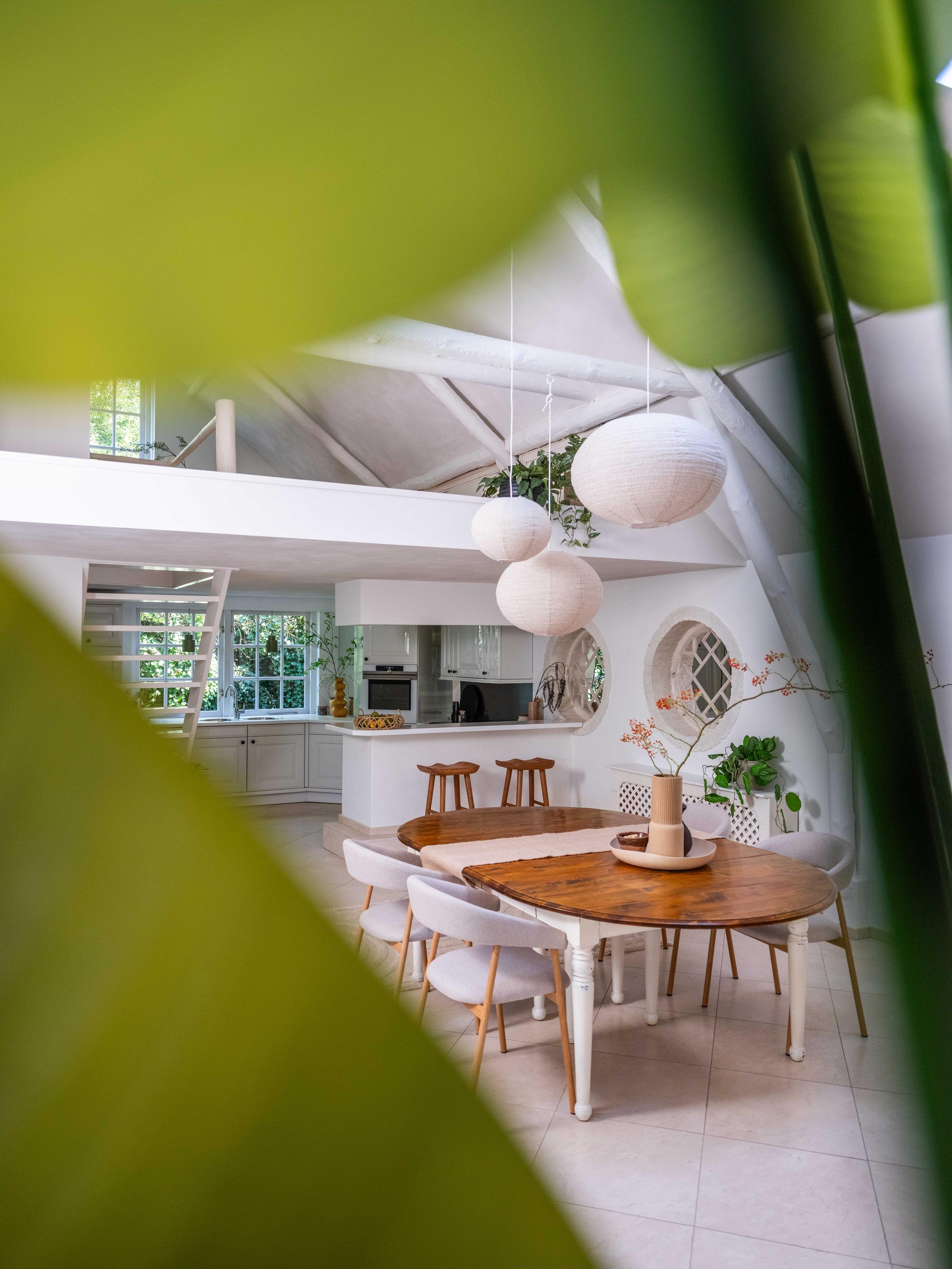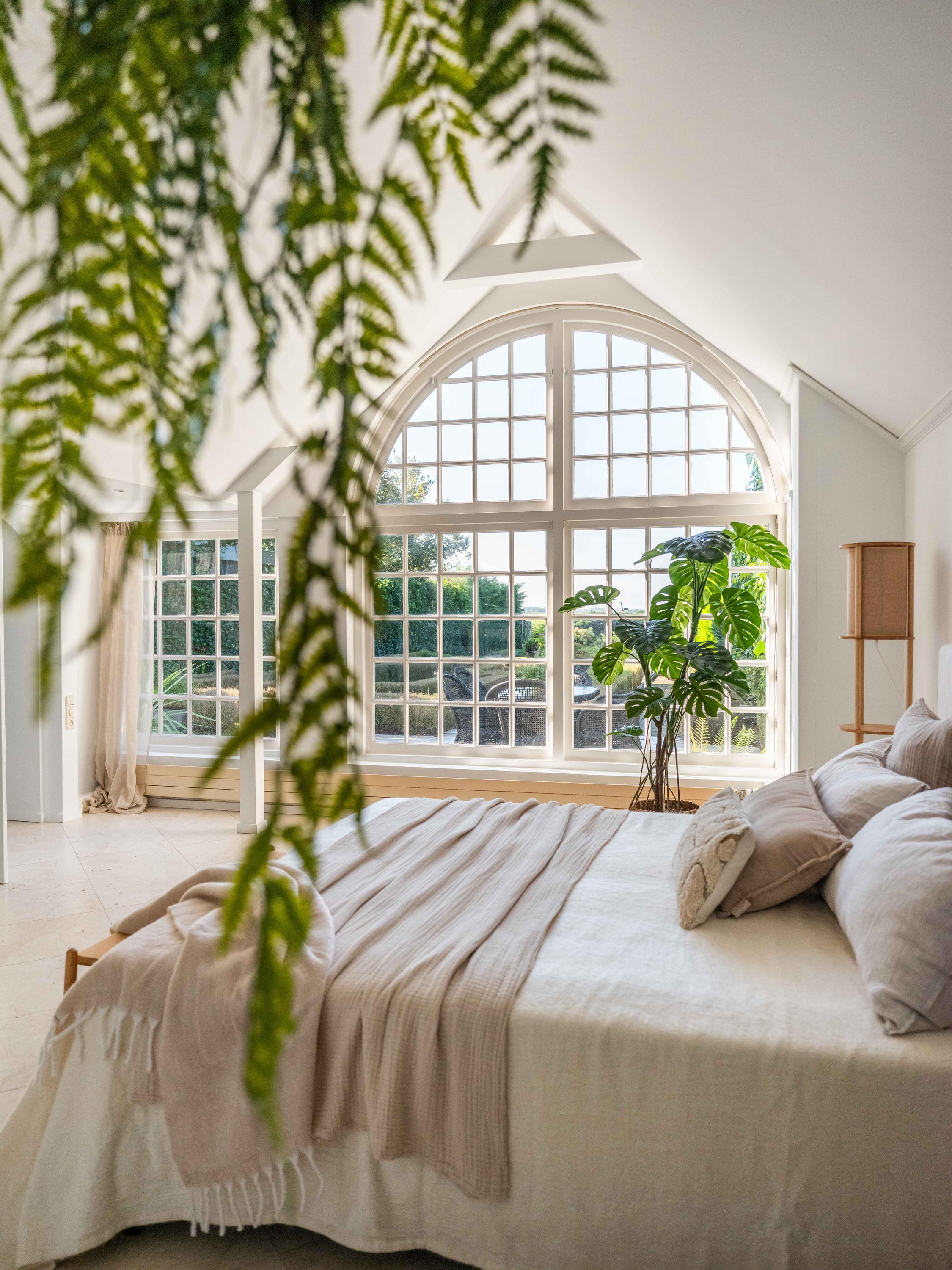 The 194 m² home unfolds from a deep front garden, where privacy is preserved by mature plantings and a gated entrance. The ground floor is designed for flexible living, with a bedroom and en suite bathroom conveniently positioned for single-level living. Additional spaces include a dedicated office or guest room and an extra shower, supporting both professional needs and visiting guests.
