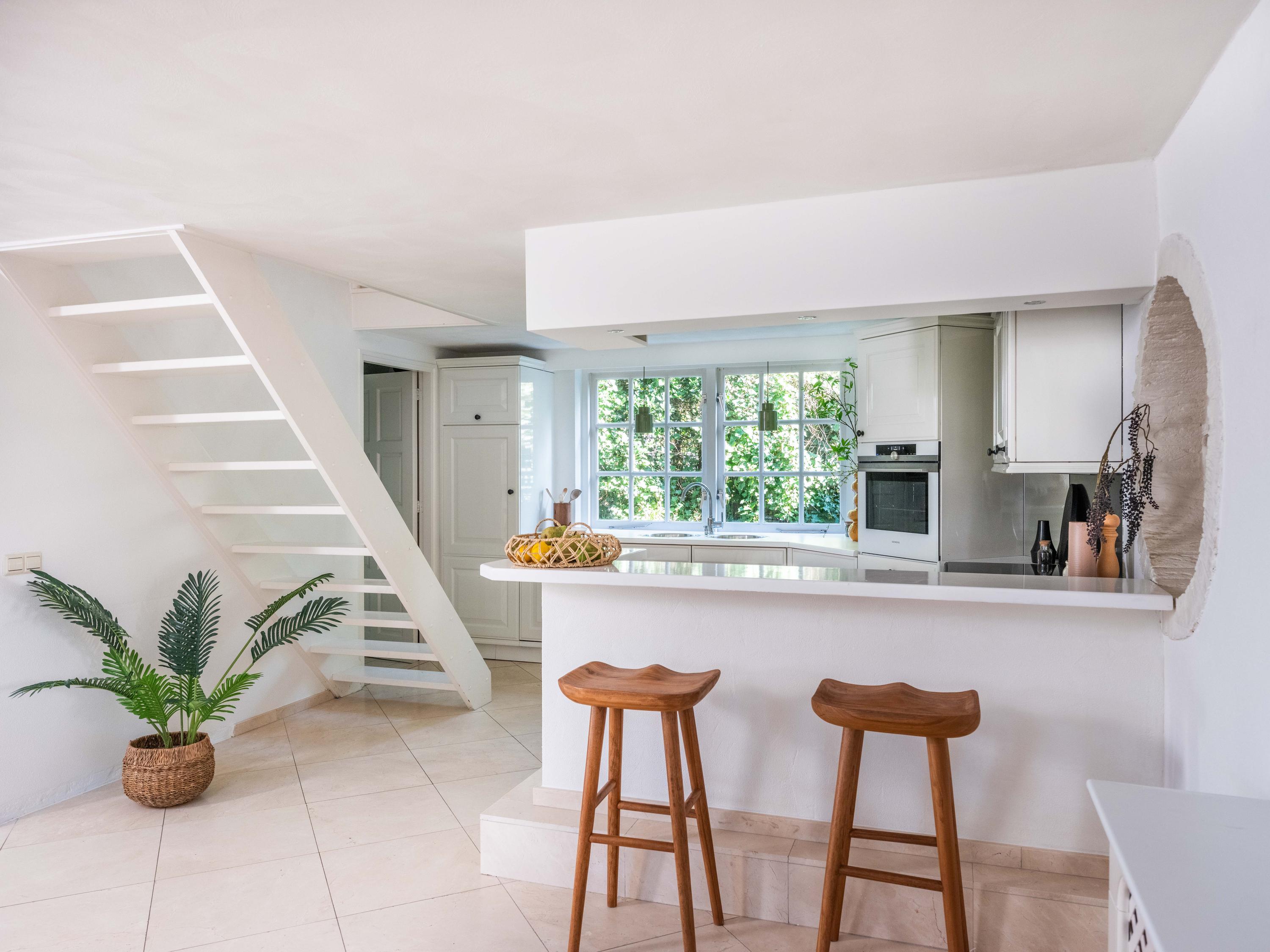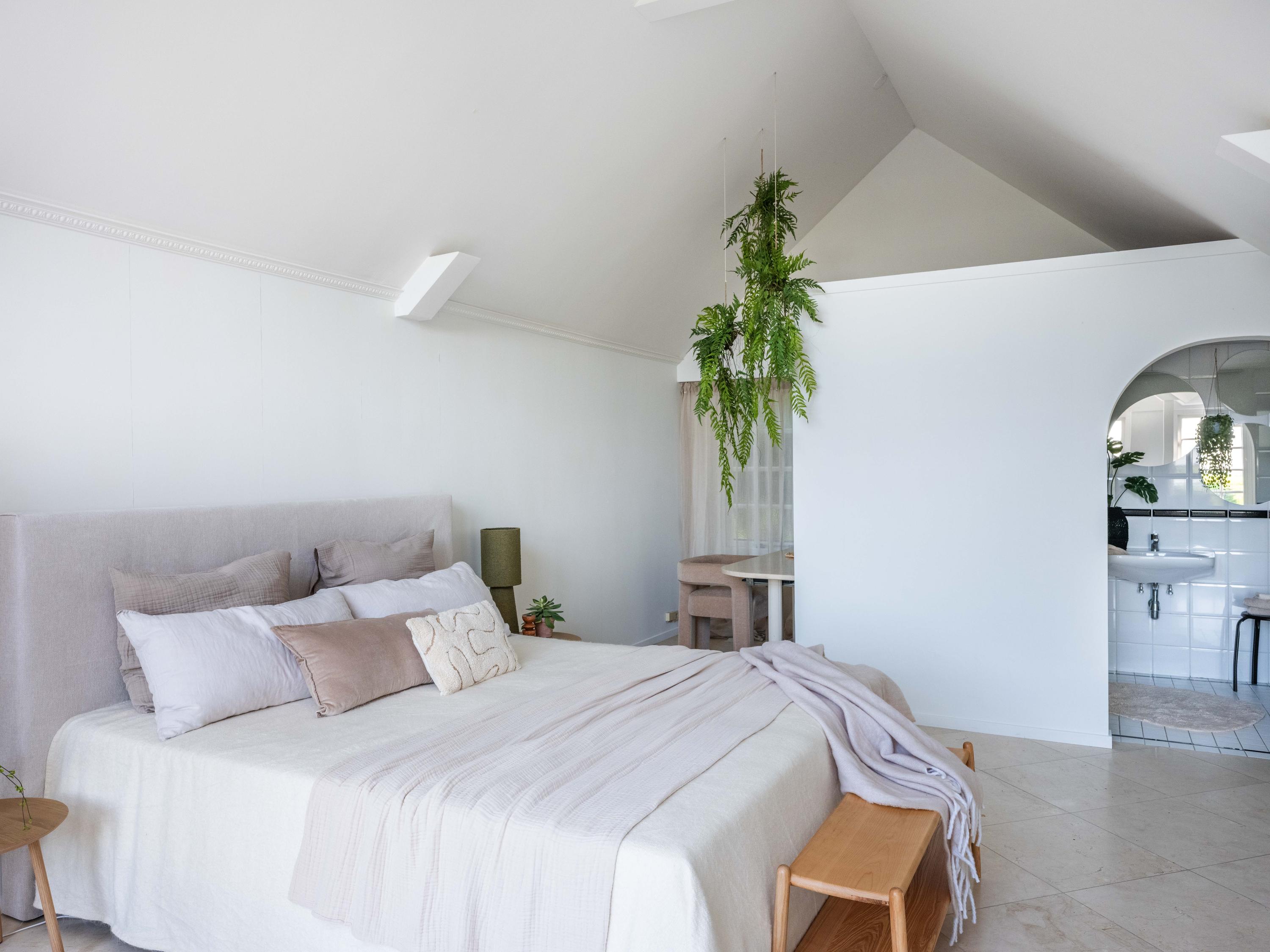 A south-west facing terrace extends the living space outdoors, ideal for summer evenings. Parking for several cars lies within the secure boundary. With direct access to the woods and proximity to Bergen’s village life and the beach, this villa offers a harmonious balance of privacy, landscape, and access to local amenities. The property with 635 m² of grounds, two bedrooms, and two bathrooms, invites you to shape its future with understated elegance.