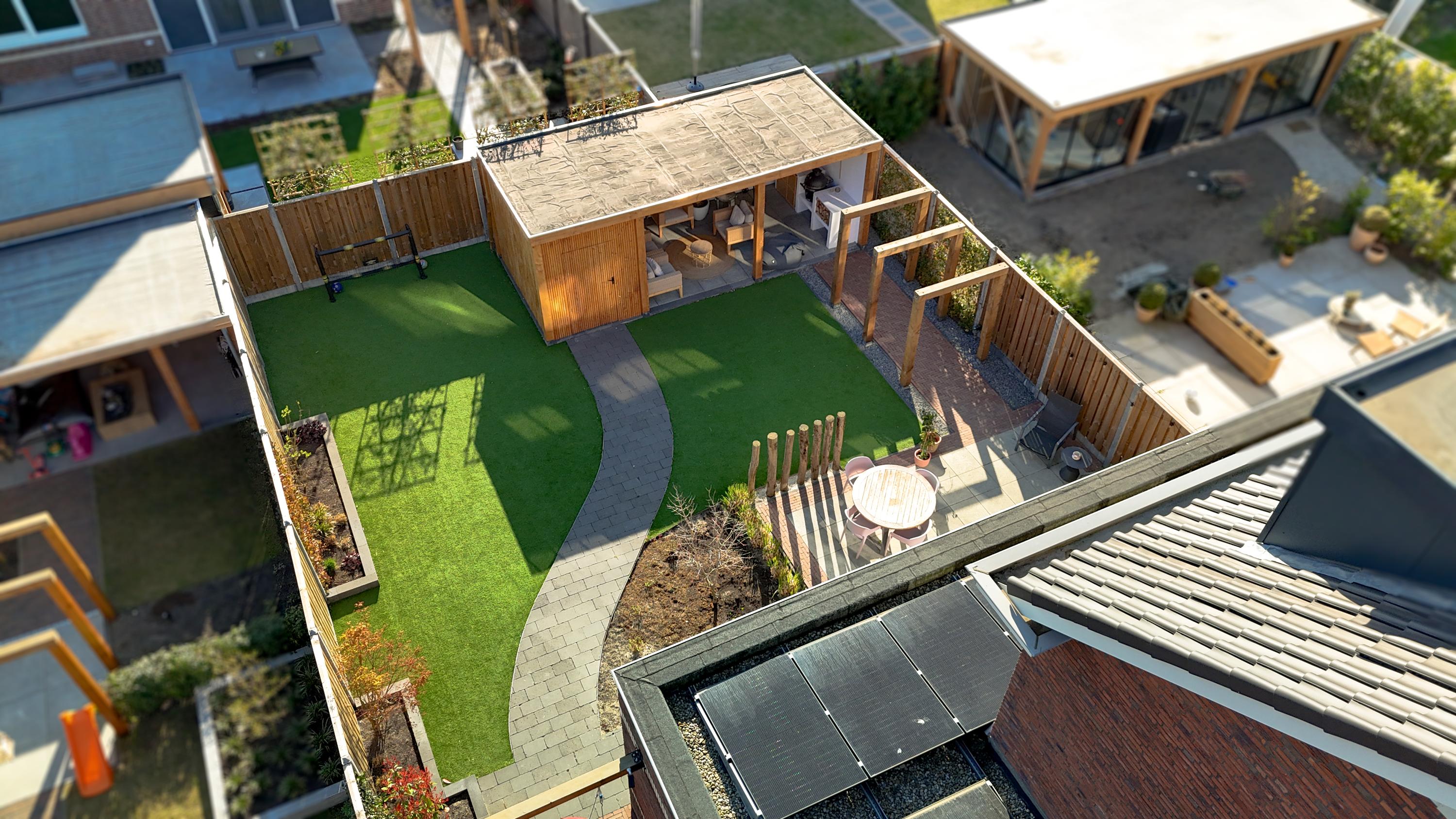 Through the French doors, you step into the beautifully landscaped garden—a private oasis of peace and relaxation. Thanks to its favorable orientation, you can enjoy sun and shade at any time of day. The garden is equipped with a professional drainage system, keeping everything neat and dry even after rain.