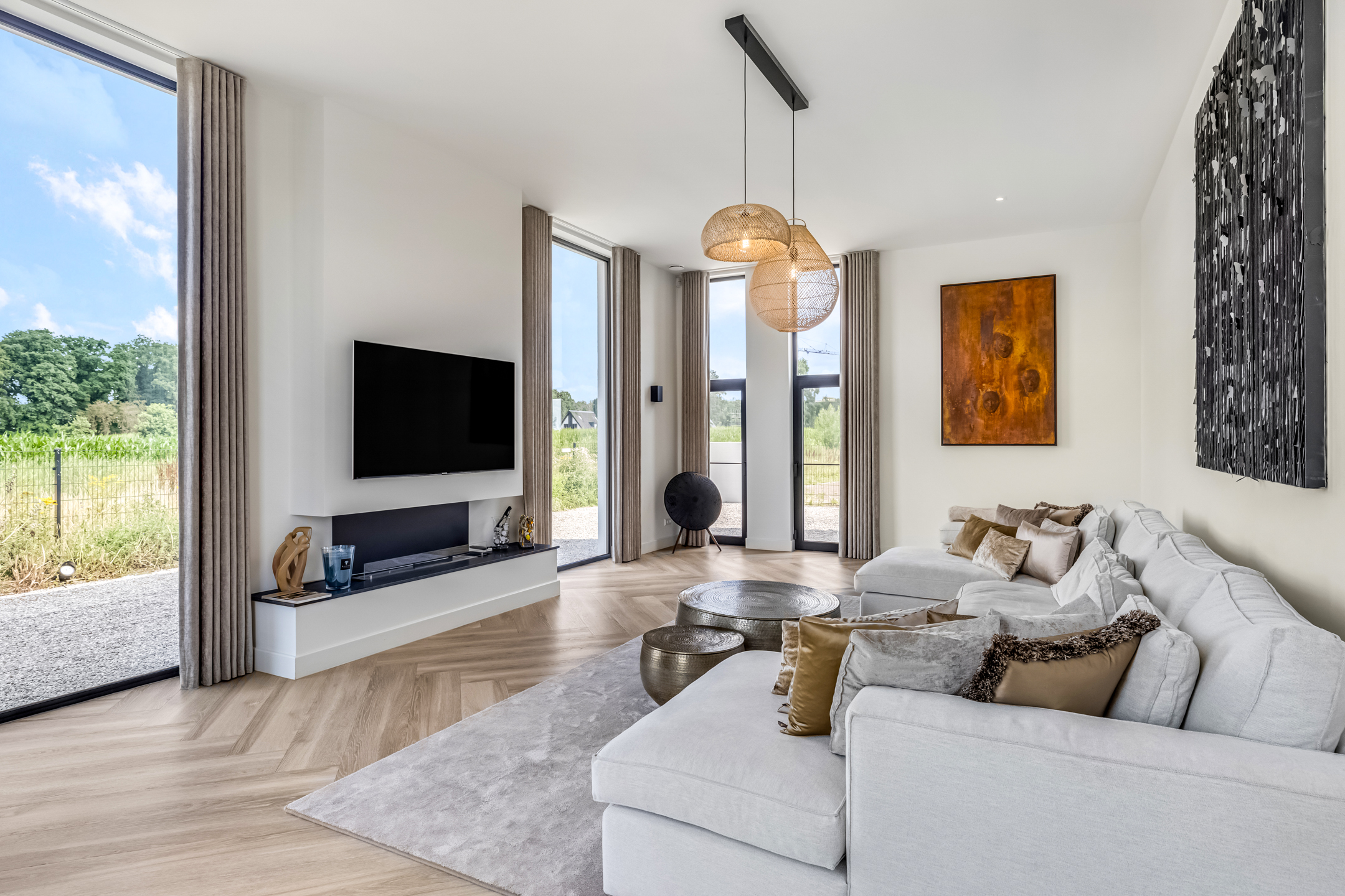 Built entirely new in 2022, this villa boasts a living area of 305 m² and exudes quality, luxury, and future readiness. With an energy label of A++++, a full Philips Hue lighting plan, security system with cameras, and 72 solar panels, this house is fully equipped for the future. Extra-high ceilings, floor-to-ceiling steel doors, and underfloor heating and cooling throughout ensure a modern and comfortable living environment.