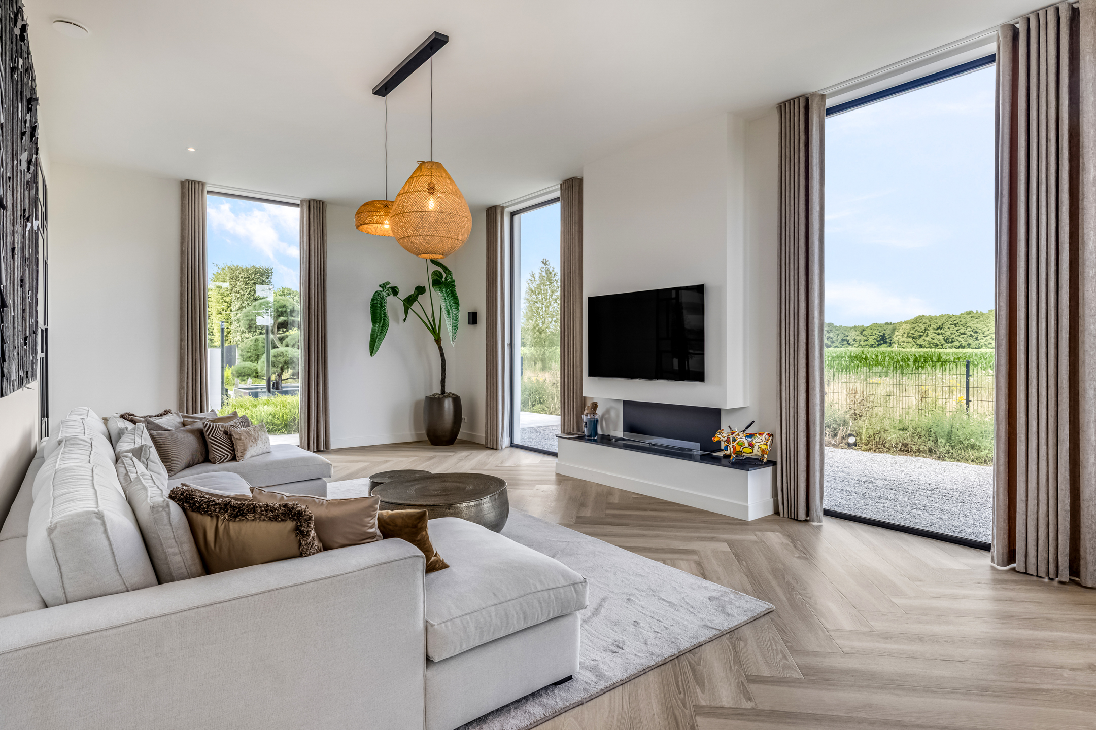 Outside, enjoyment reaches its peak: a heated swimming pool, multiple covered terraces, and a luxury veranda turn outdoor living into a true experience. Everything breathes peace, comfort, and exclusivity. You’ll enjoy maximum privacy, with open views over expansive agricultural fields to the side and the green paddocks behind. This unique combination of space and nature enhances the feeling of freedom.